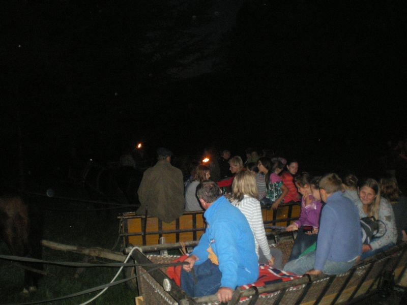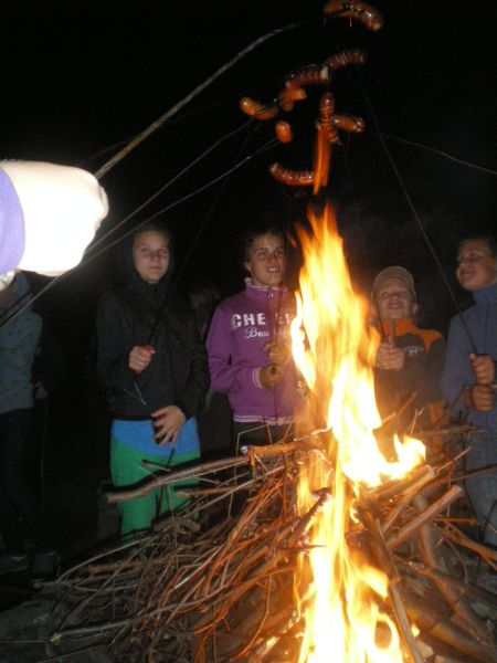 Na zakończenie dnia pierwszego odbyła się bardzo emocjonuj±ca nocna wycieczka do lasu, zakończona opowiadaniem gawęd i legend przy ognisku w szałasie.