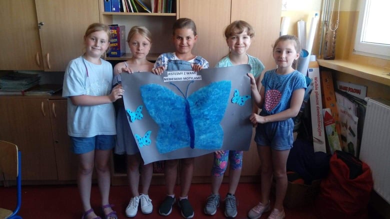 Ważne, aby na zdjęciu lub filmie ujęte były pozdrowienia: JESTEŚMY Z WAMI NIEBIESKIMI MOTYLAMI! (nagrane lub napisane).