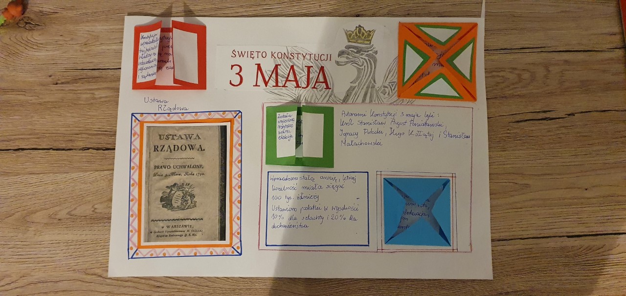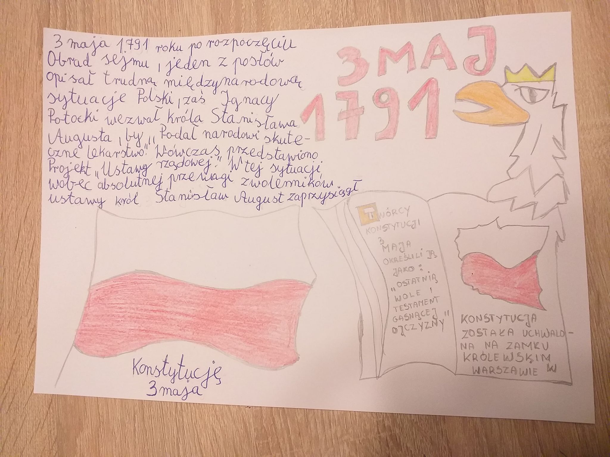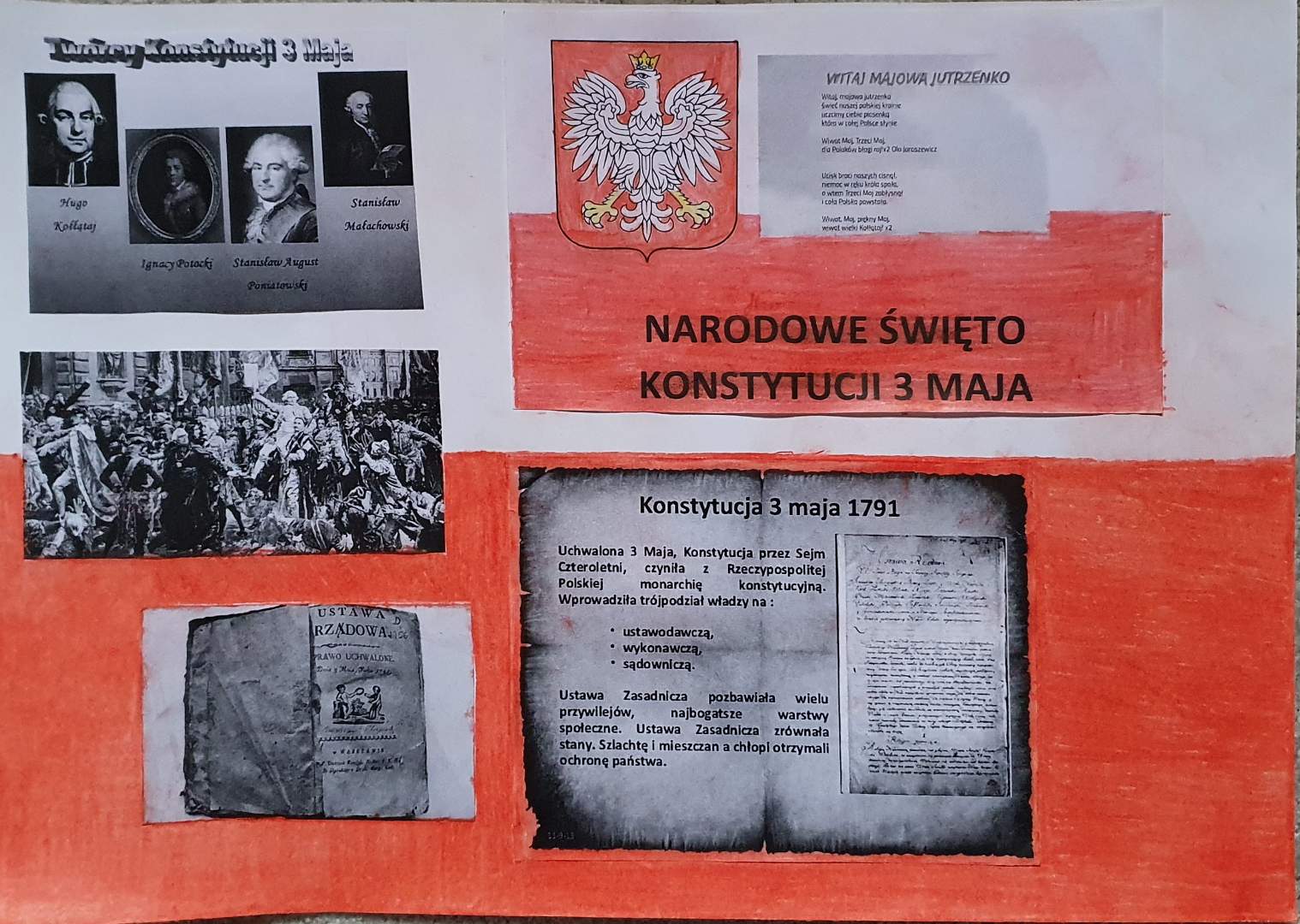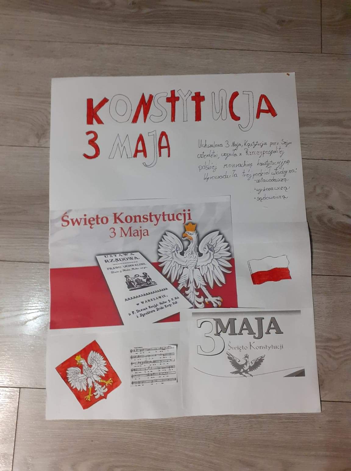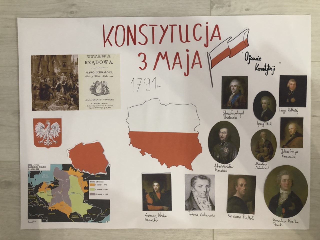 230 rocznica uchwalenia Konstytucji 3 Maja, Święto Flagi Rzeczypospolitej Polskiej oraz 100 rocznica wybuchu III powstania śląskiego to wydarzenia, które świętujemy w bieżącym roku. W naszej szkole stały się one okazją do przeprowadzenia cyklu lekcji historii w klasach 4-7, przypominających i utrwalających wiedzę o tamtych wydarzeniach. W ramach zajęć uczniowie oglądali filmy dydaktyczne, rozwiązywali testy i quizy interaktywne, przygotowywali techniką cyfrową okolicznościowe plakaty oraz prezentacje multimedialne.
