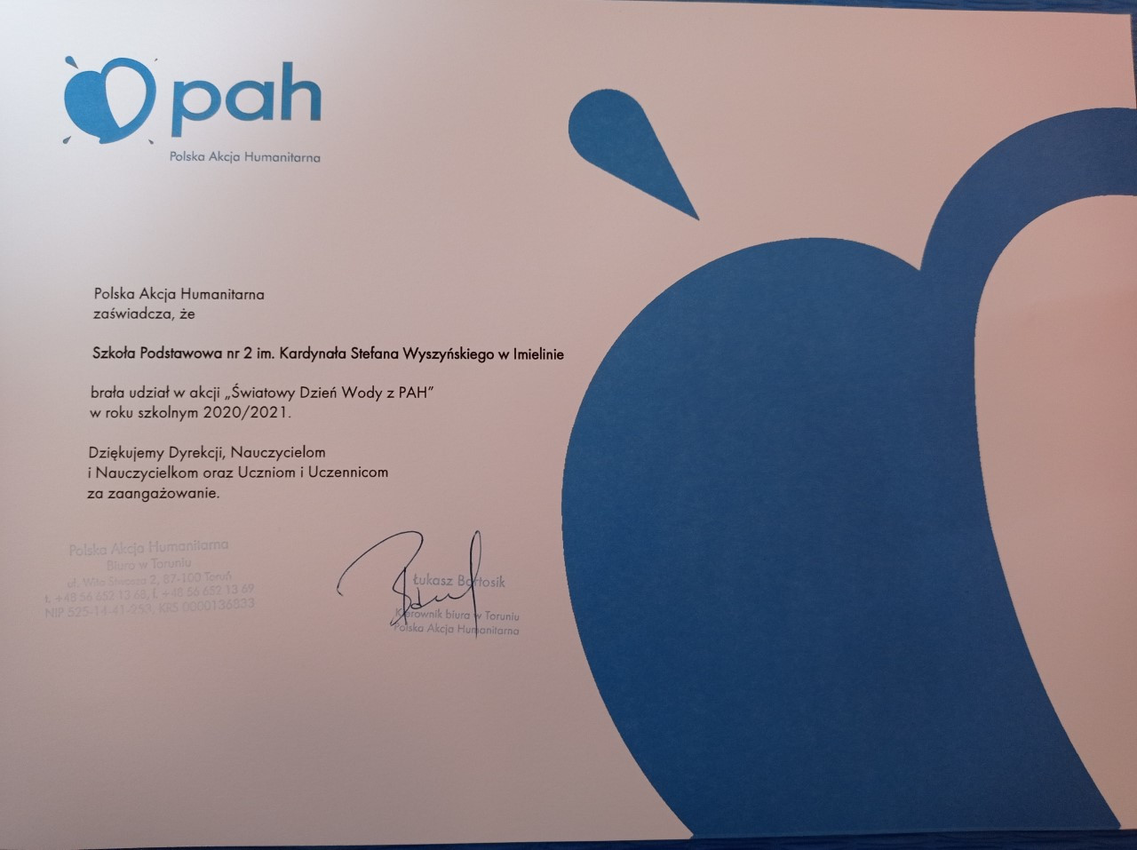 Nasza szkoła wzięła udział w Światowym Dniu Wody z Polską Akcją Humanitarną. Realizowali ją poszczególni nauczyciele w wybranych klasach na każdym poziomie edukacji.