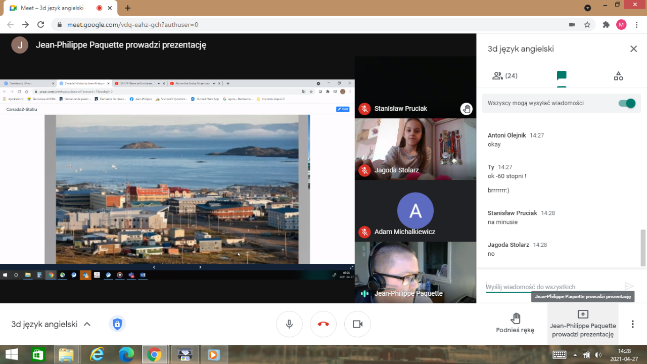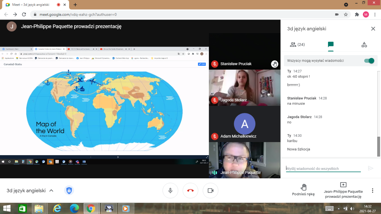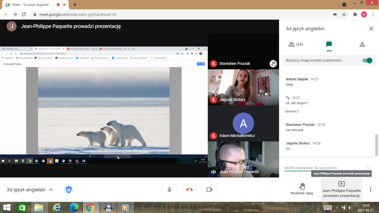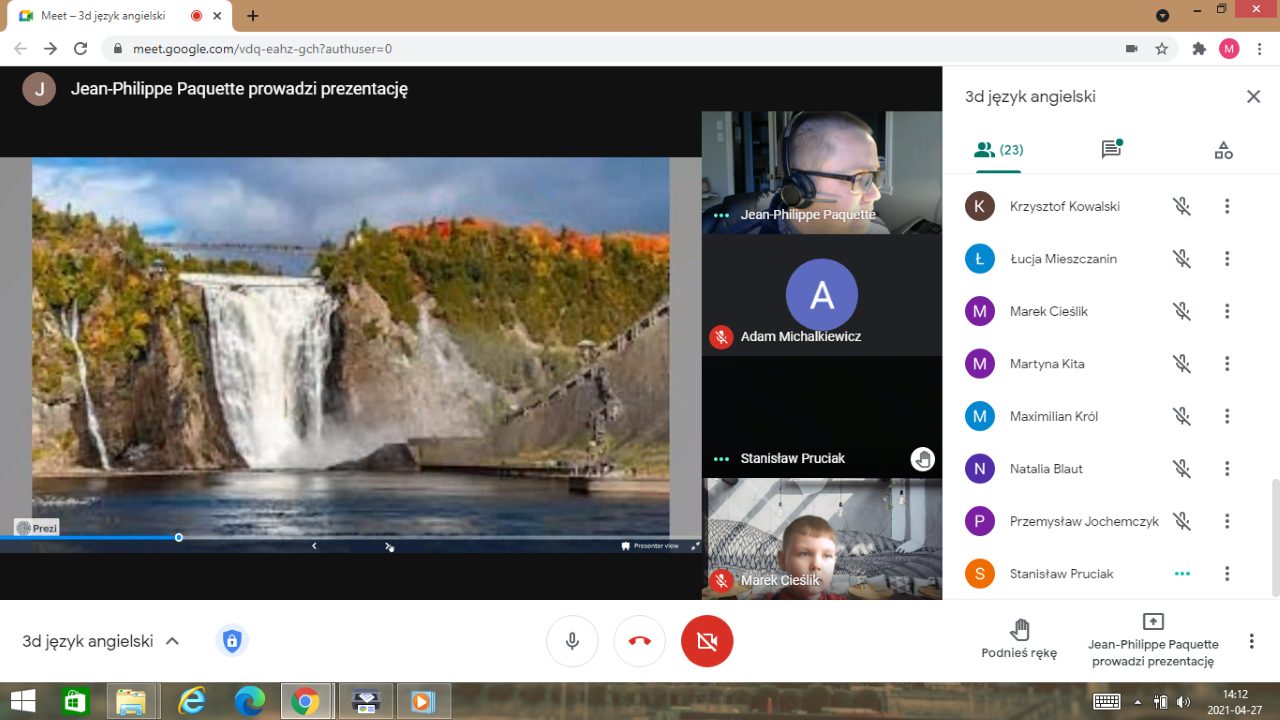 W klasie 3 d kulturowe zajęcia z języka angielskiego poprowadził wyjątkowy gość - Jean Philippe Paquette - rodowity Kanadyjczyk. Wirtualnie zwiedziliśmy najciekawsze miejsca tego pięknego kraju.