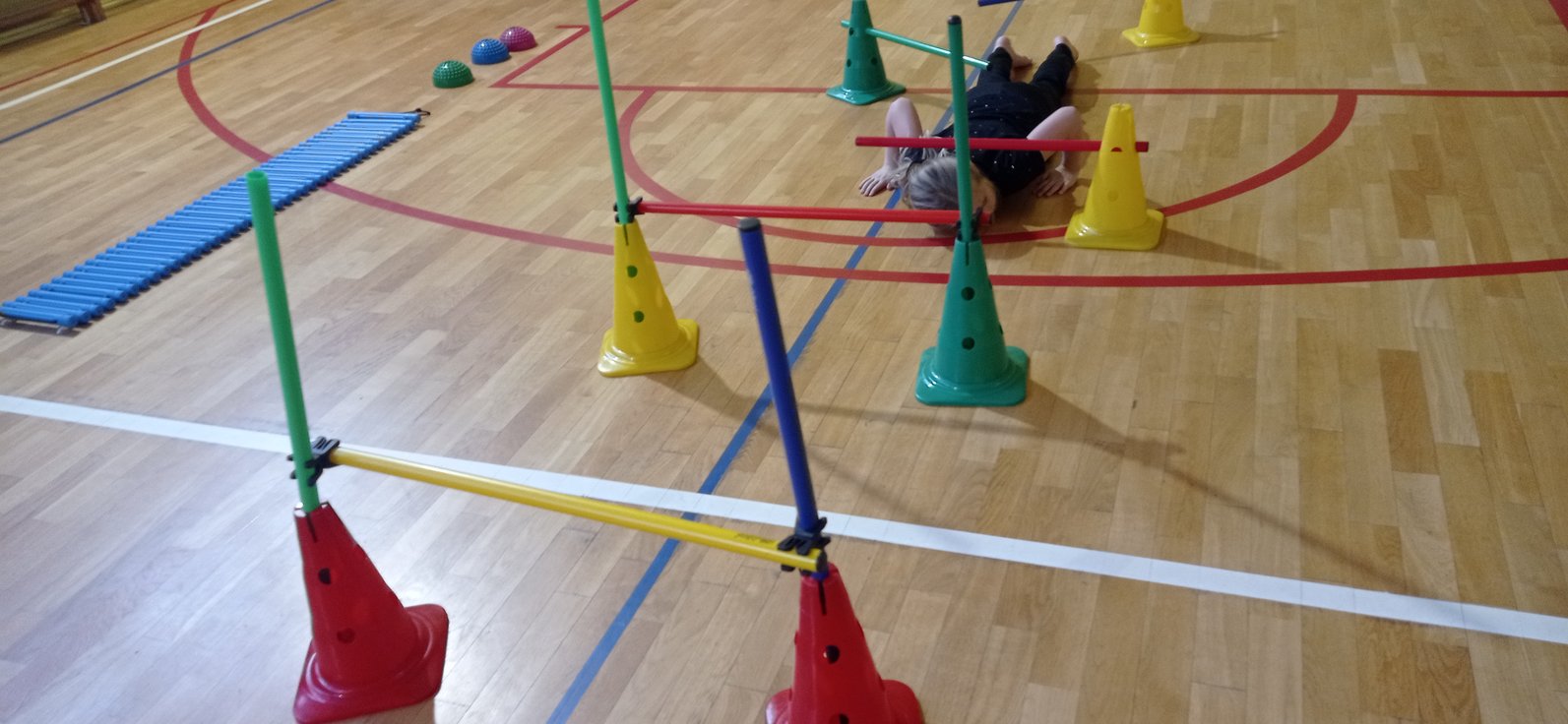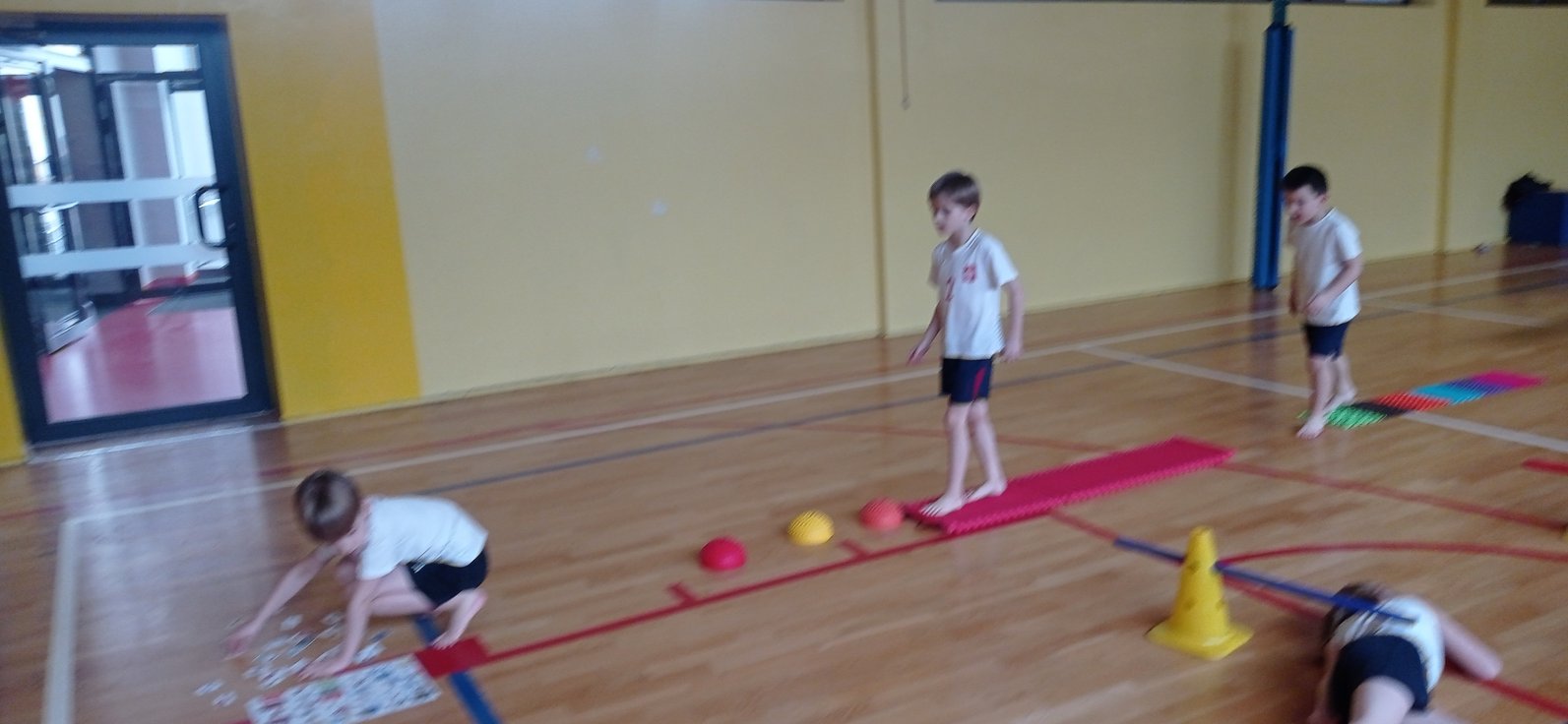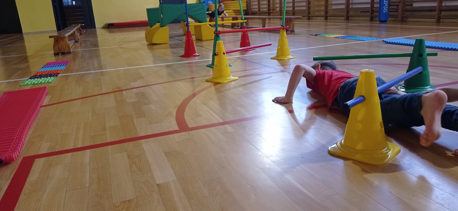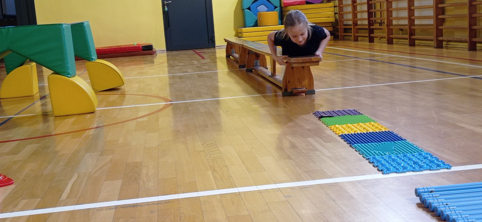 i propriocepcję. Popracowaliśmy nad pamięcią i zapamiętywaniem. Ponadto wzmacnialiśmy mięśnie grzbietu i obręczy barkowej. Wszystkie wykorzystane ćwiczenia pracowały nad motoryką dużą.