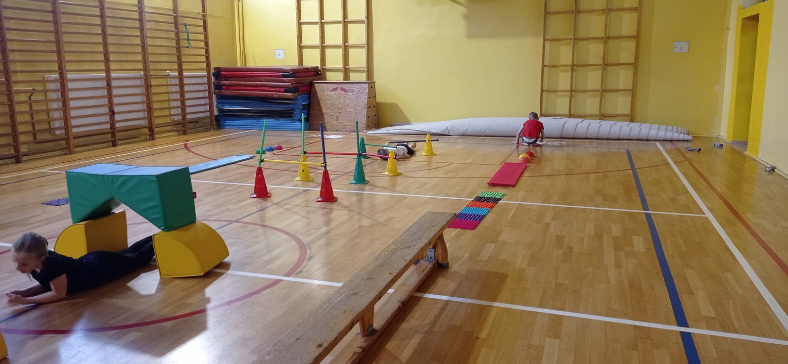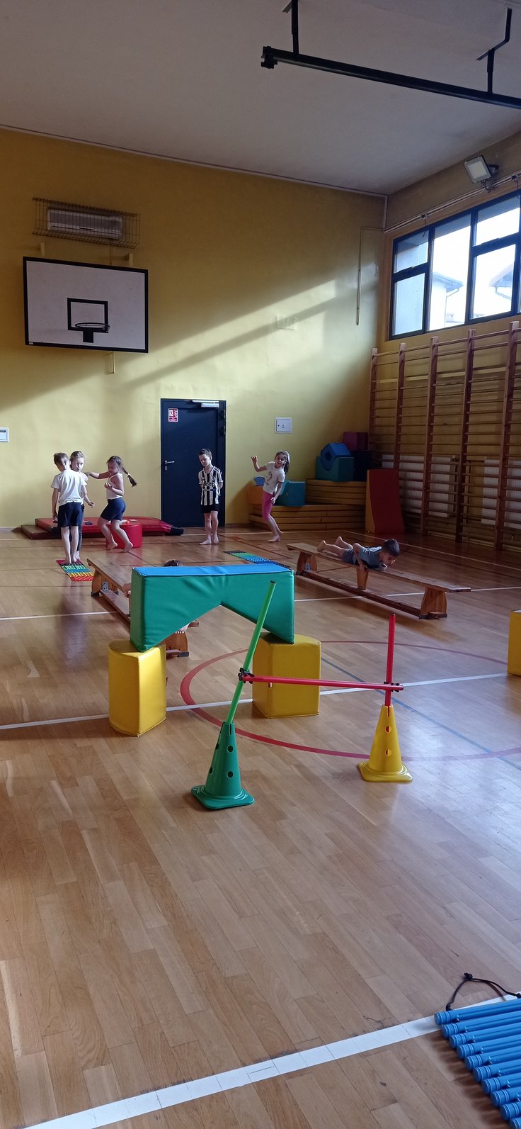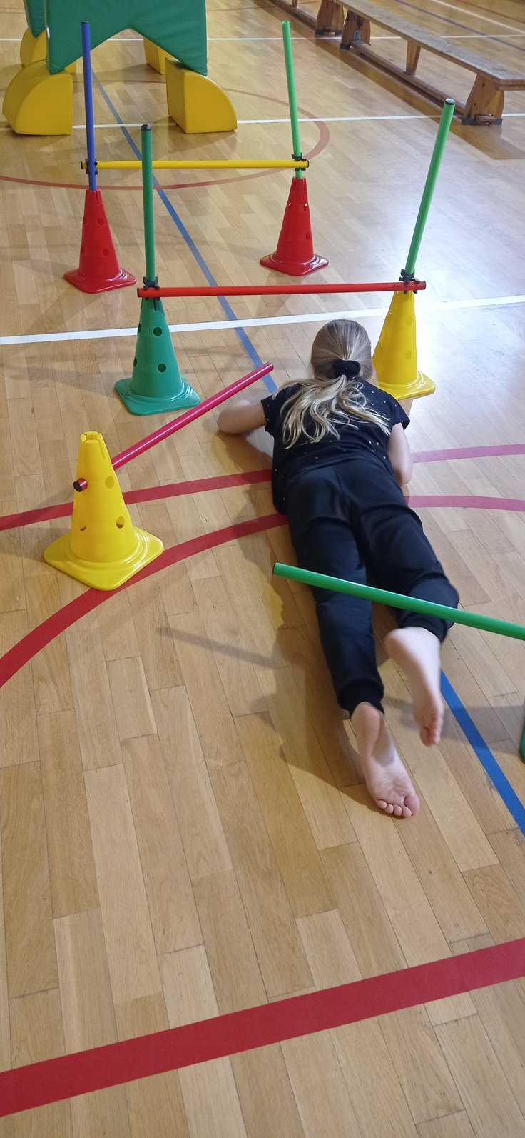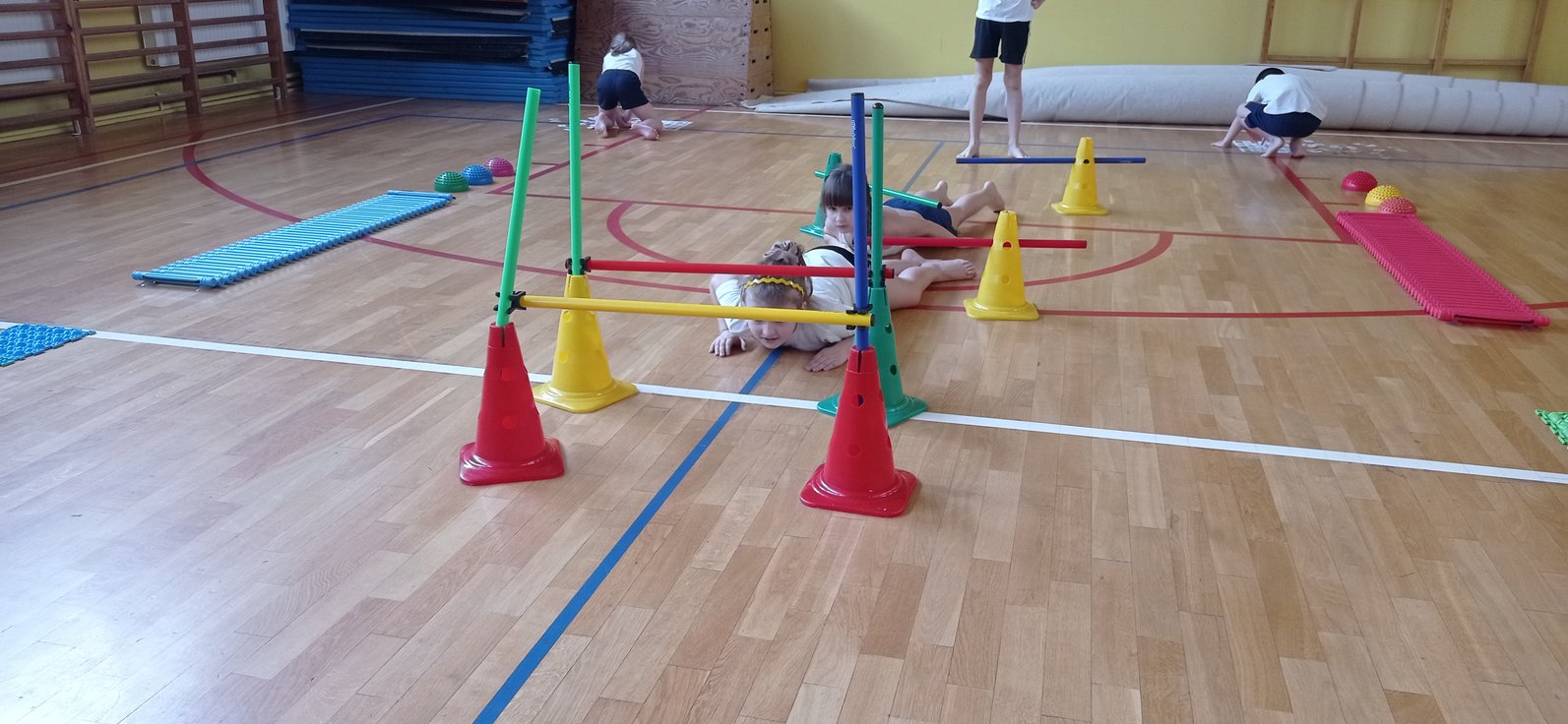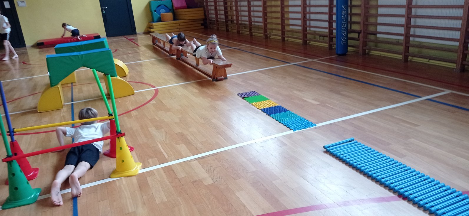 i propriocepcję. Popracowaliśmy nad pamięcią i zapamiętywaniem. Ponadto wzmacnialiśmy mięśnie grzbietu i obręczy barkowej. Wszystkie wykorzystane ćwiczenia pracowały nad motoryką dużą.