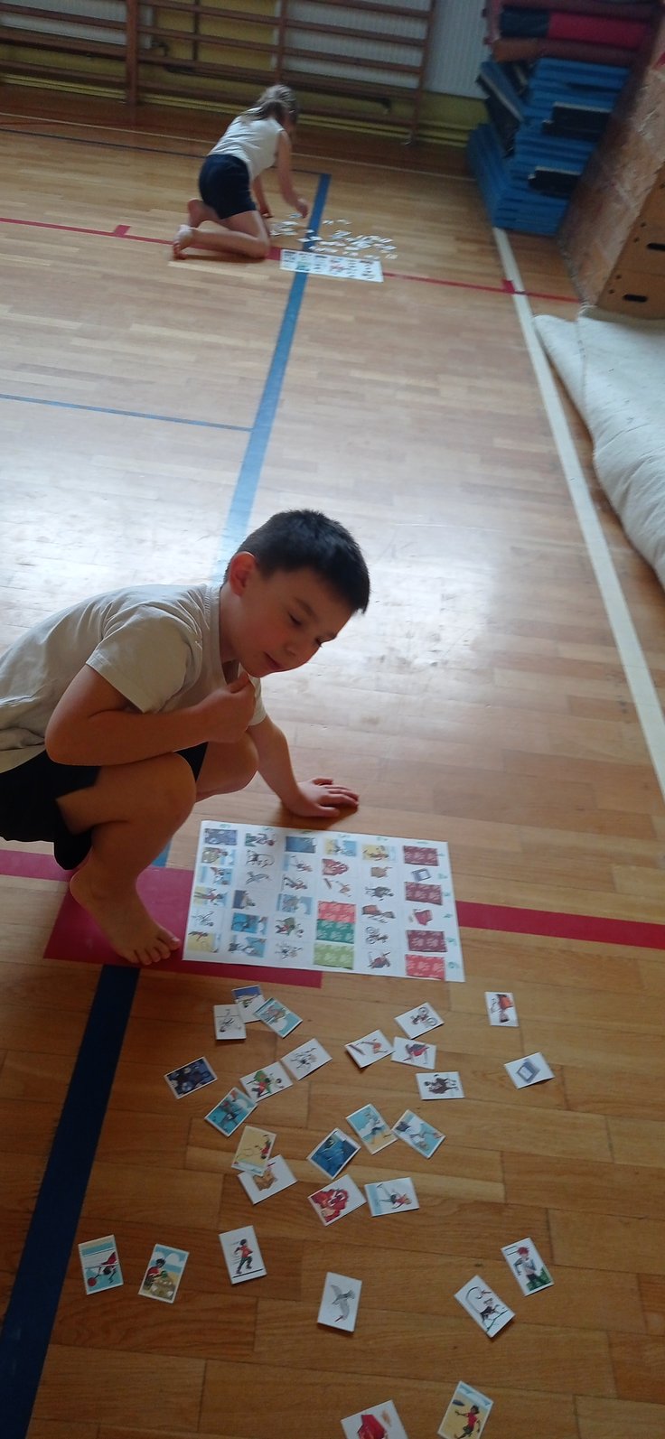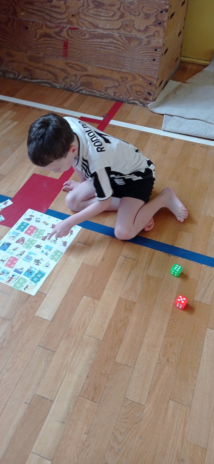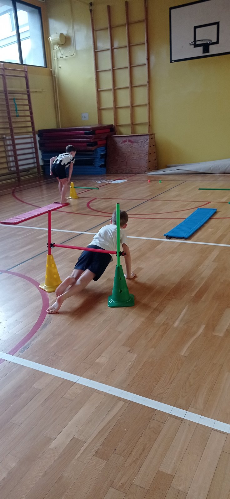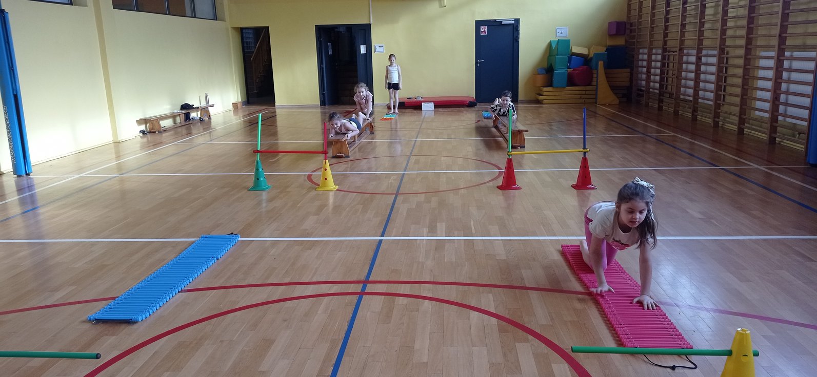 i propriocepcję. Popracowaliśmy nad pamięcią i zapamiętywaniem. Ponadto wzmacnialiśmy mięśnie grzbietu i obręczy barkowej. Wszystkie wykorzystane ćwiczenia pracowały nad motoryką dużą.