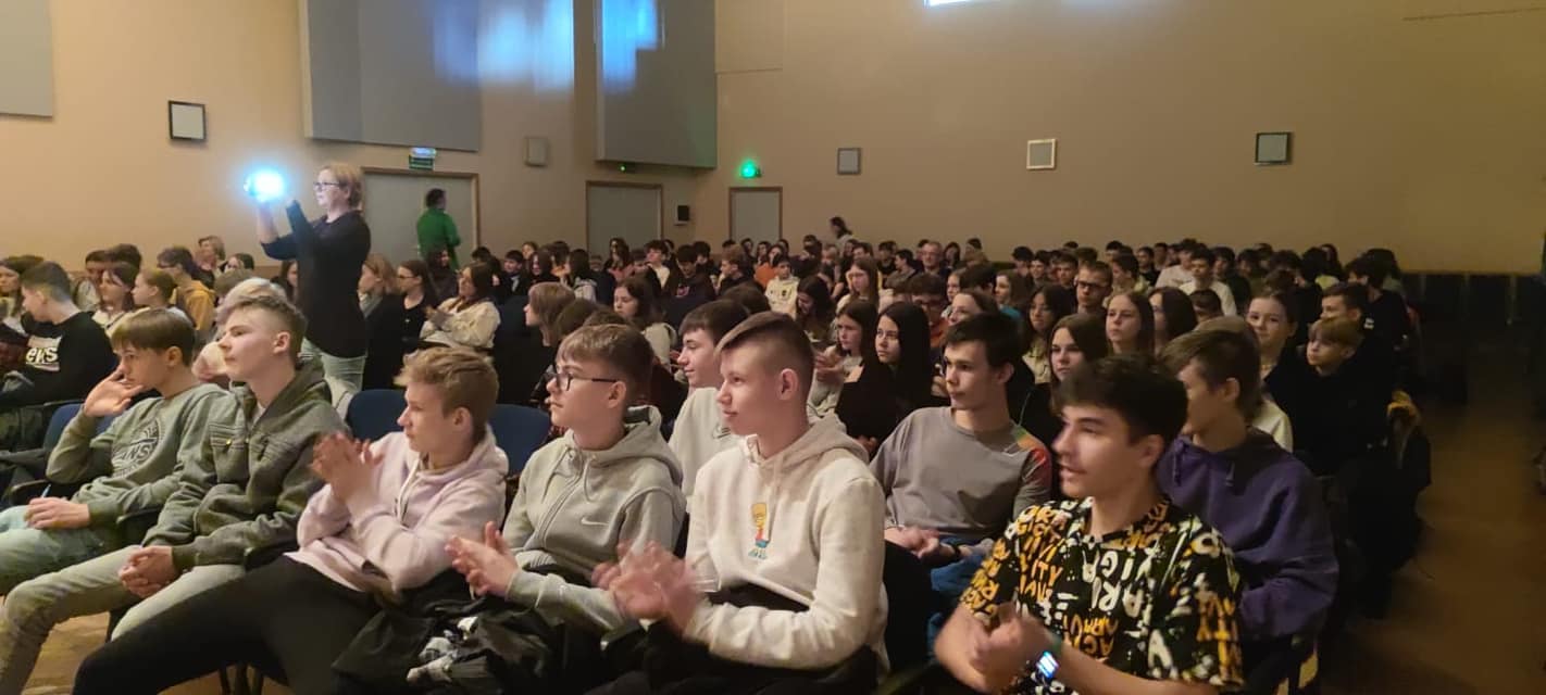W kwietniu ósmoklasiści mieli okazję zobaczyć przedstawienie przygotowane przez naszą absolwentkę, Zofię Pielorz i grupę jej kolegów, licealistów.