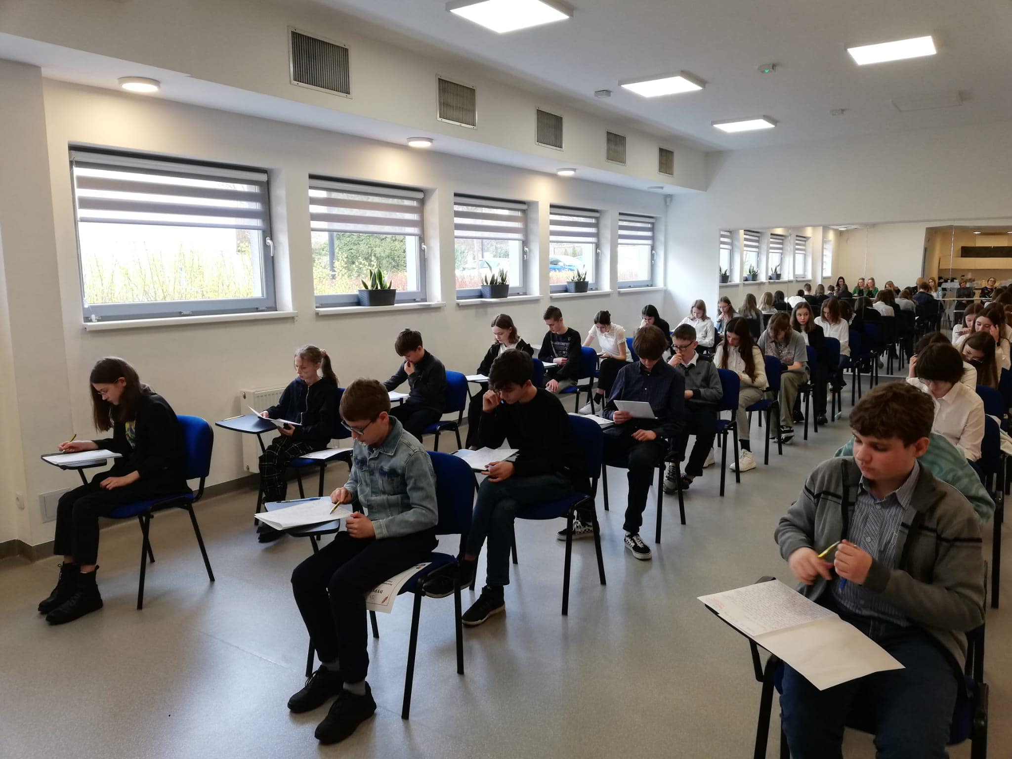 Uczennice i uczniowie klas: VI, VII i VIII szkół podstawowych naszego powiatu zmierzyli się z najeżonym trudnościami i długim jak szyja żyrafy dyktandem.