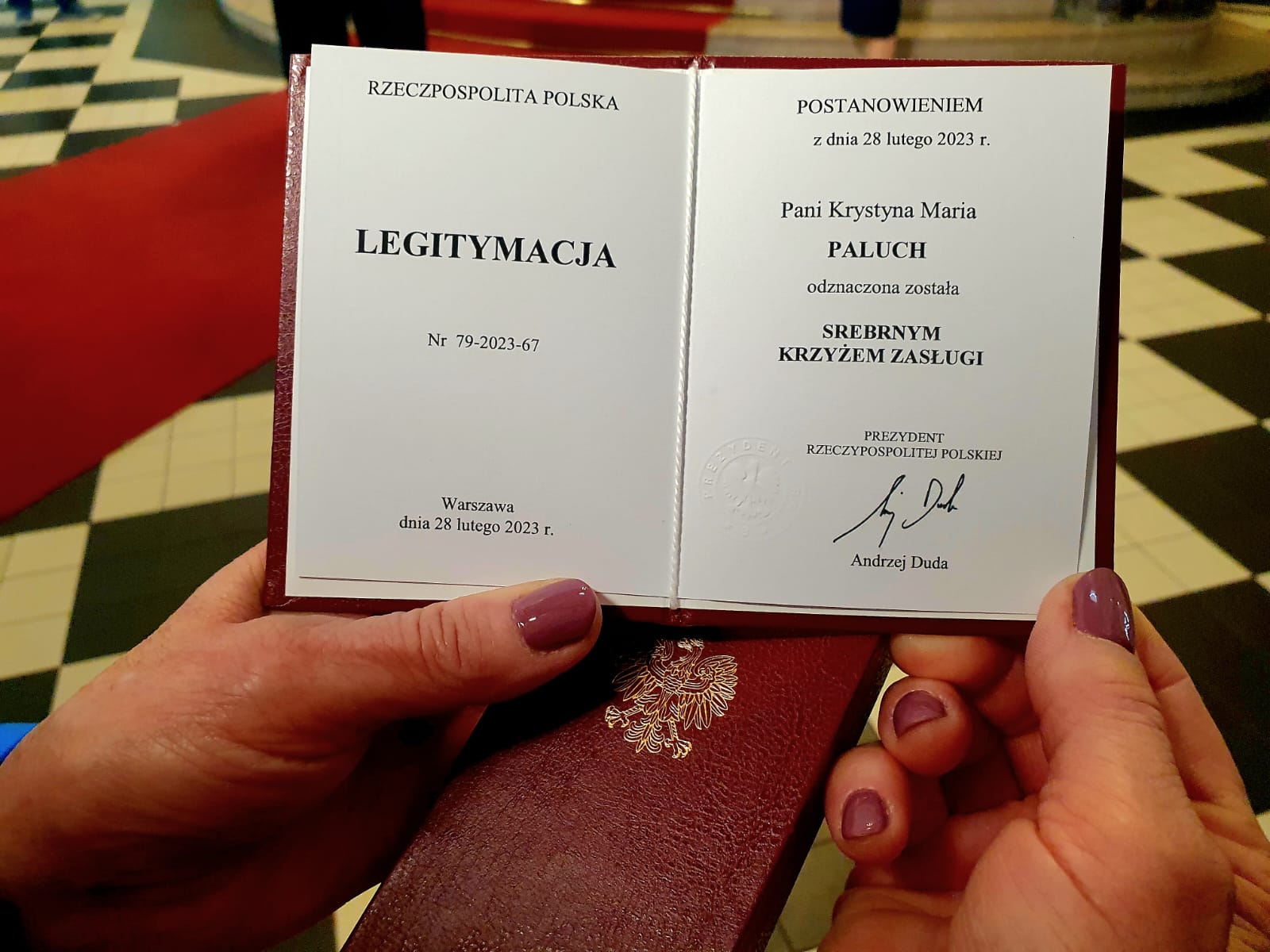 Dziś, 26 kwietnia 2023r., w sali westybulowej Urzędu Wojewódzkiego w Katowicach odbyła się uroczystość wręczenia Srebrnego Krzyża Zasługi za działania w dziedzinie społeczno-edukacyjnej naszej nauczycielce muzyki pani Krystynie Paluch.