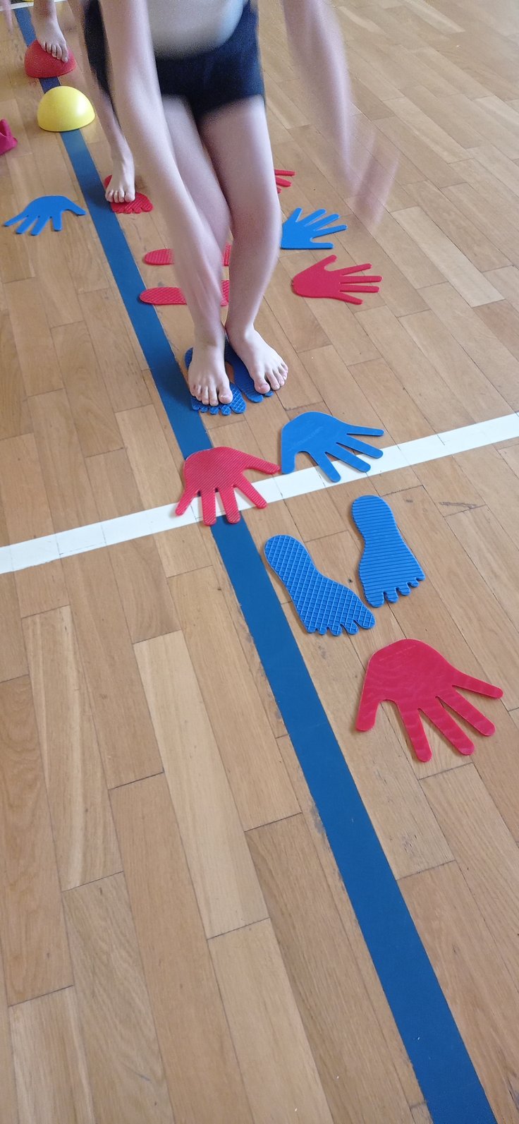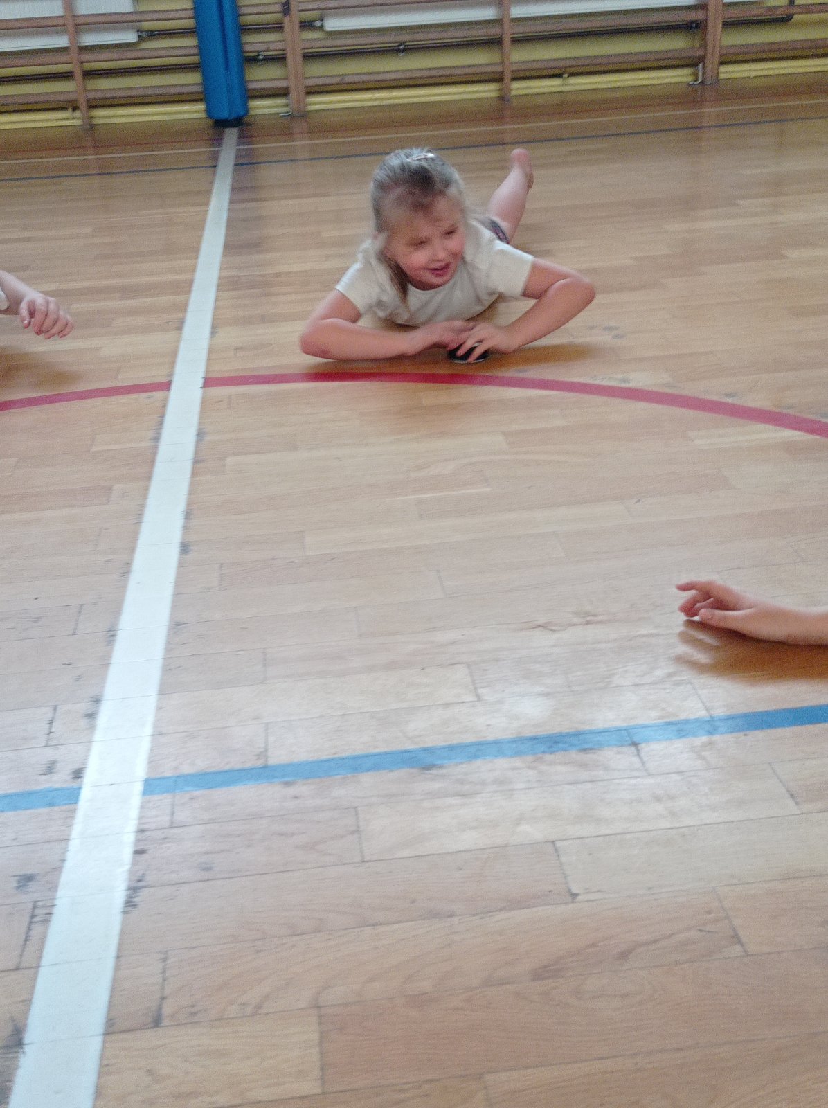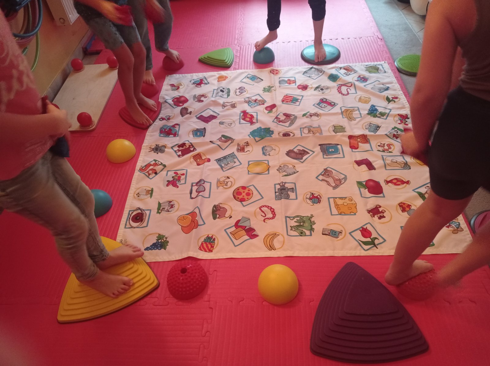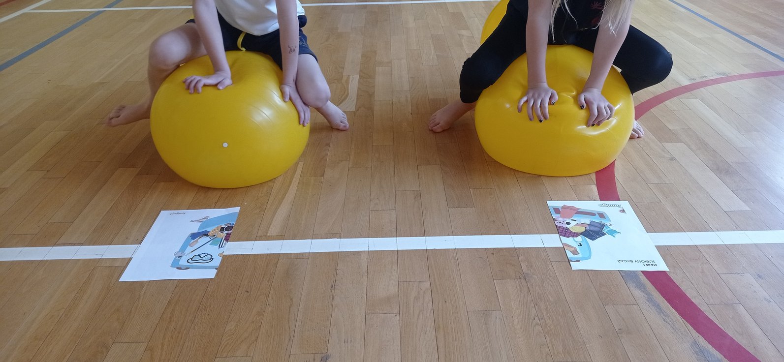 Na gimnastyce korekcyjnej, połączyliśmy wszystkie składowe, ćwicząc koordynację wzrokowo-ruchową, utrzymanie fiksacji na przedmiocie i podążanie za nim wzrokiem (co pełni niezwykle istotną rolę w procesie uczenia się - czytania i pisania).
