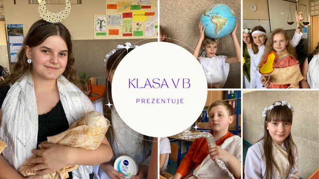 W te role wcielili się uczniowie i uczennice klasy V„b”, którzy wzięli udział w niecodziennym pokazie mody greckiej, będącym wstępem do wielkiego turnieju mitologicznego.