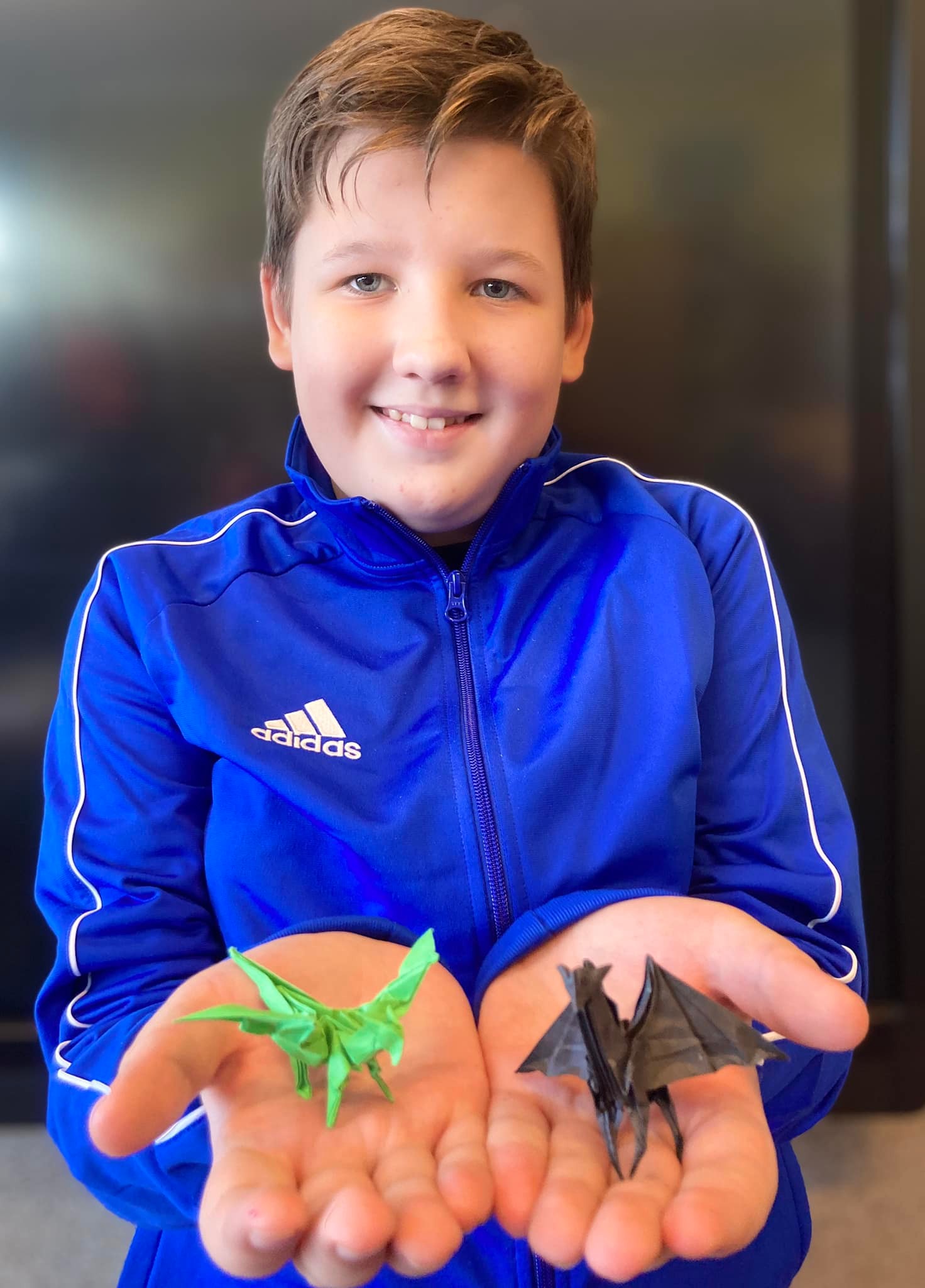Wojtek Sałagan, obecnie uczeń klasy 8b, od lat zachwyca nas swoimi pracami 3D wykonanymi z papieru. Sztukę origami Wojtek opanował na poziomie mistrzowskim. Jego cierpliwość i precyzja nie ma sobie równych - na wykonanie misternych elementów swoich modeli poświęca sporo wolnego czasu. Co roku podziwiamy niewielkie, papierowe postacie zwierząt, ze starannie wykończonymi detalami, maleńkie, papierowe cuda! Wojtek jest samoukiem, sam dociekliwie szuka nowych wzorów, zaskakuje nowymi umiejętnościami. Ósmoklasista jest nie tylko naszym guru sztuki origami, ale również człowiekiem bardzo serdecznym i życzliwym, dobrym kolegą i uczniem.