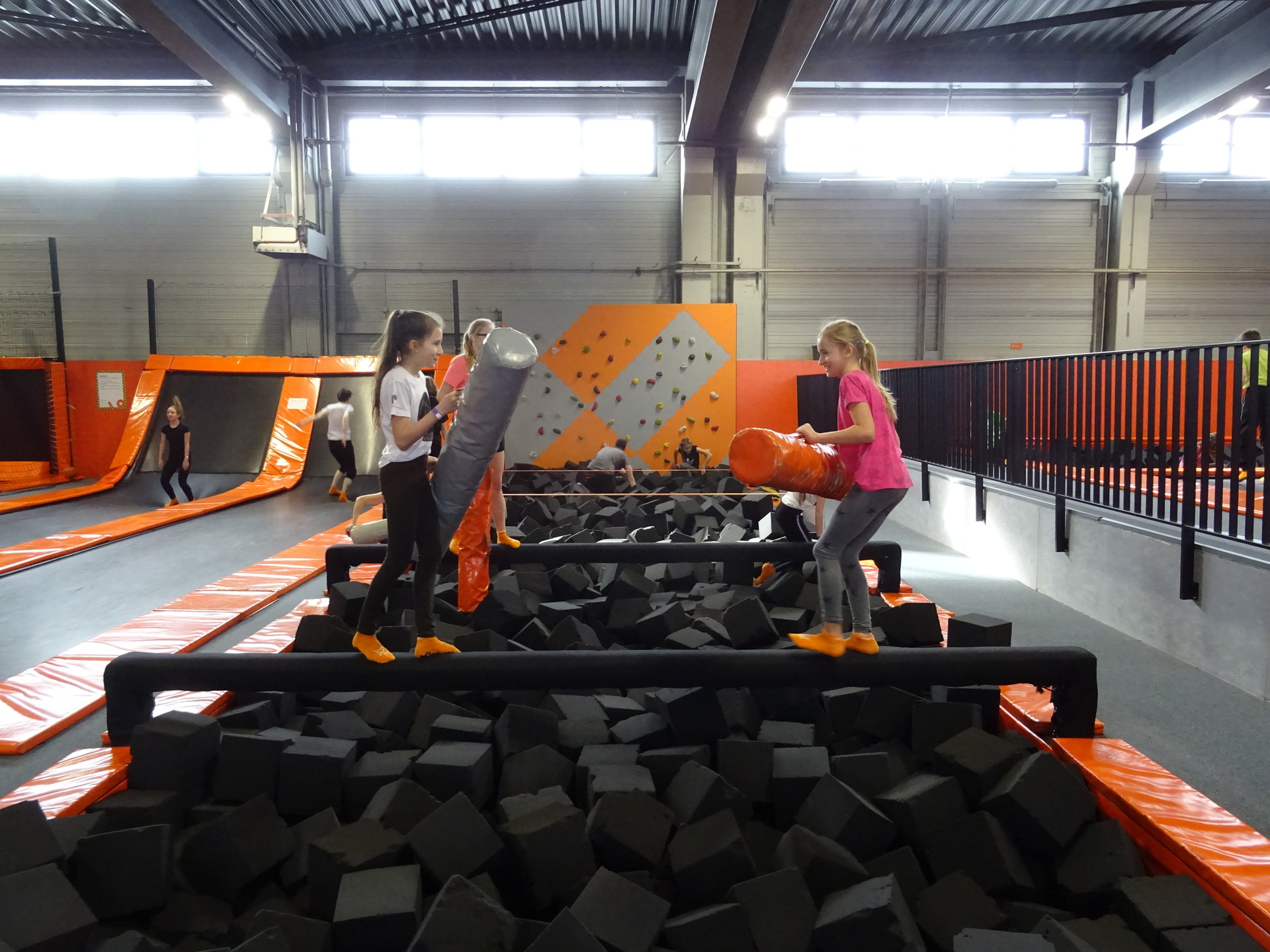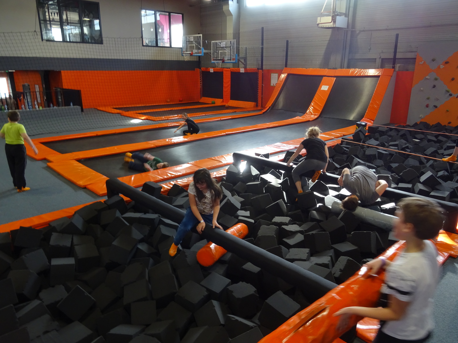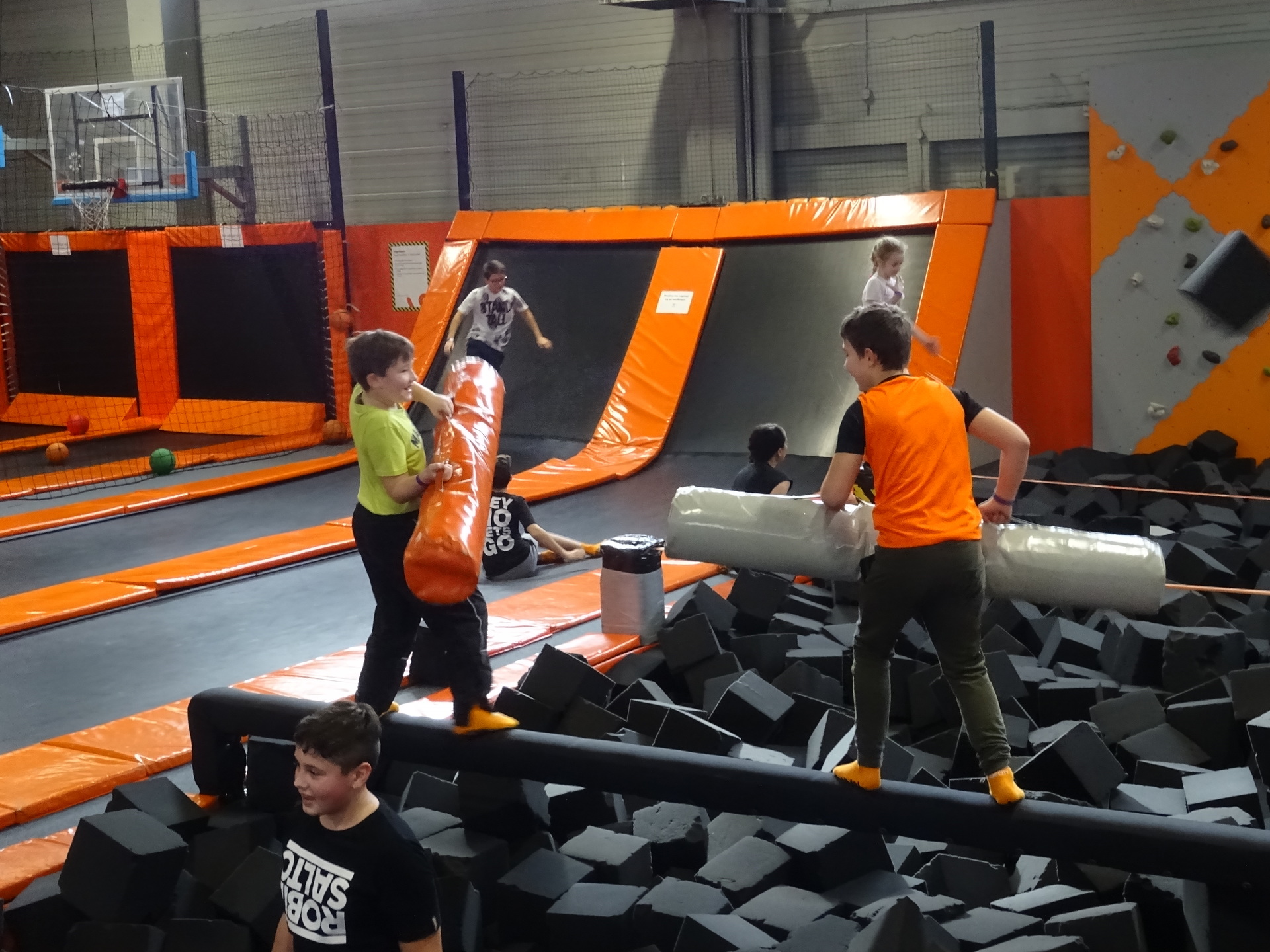 W parku trampolin po zapoznaniu się z zasadami bezpieczeństwa i kultury odbyła się wspólna rozgrzewka na trampolinach prowadzona przez trenera. Po niej każdy próbował swych sił na różnego rodzaju ścieżkach m.in. strefa gladiatorów, basen z gąbkami, trampolina sportowa, ścieżki akrobatyczne. Chętni próbowali swych sił na arenie do zbijaka.