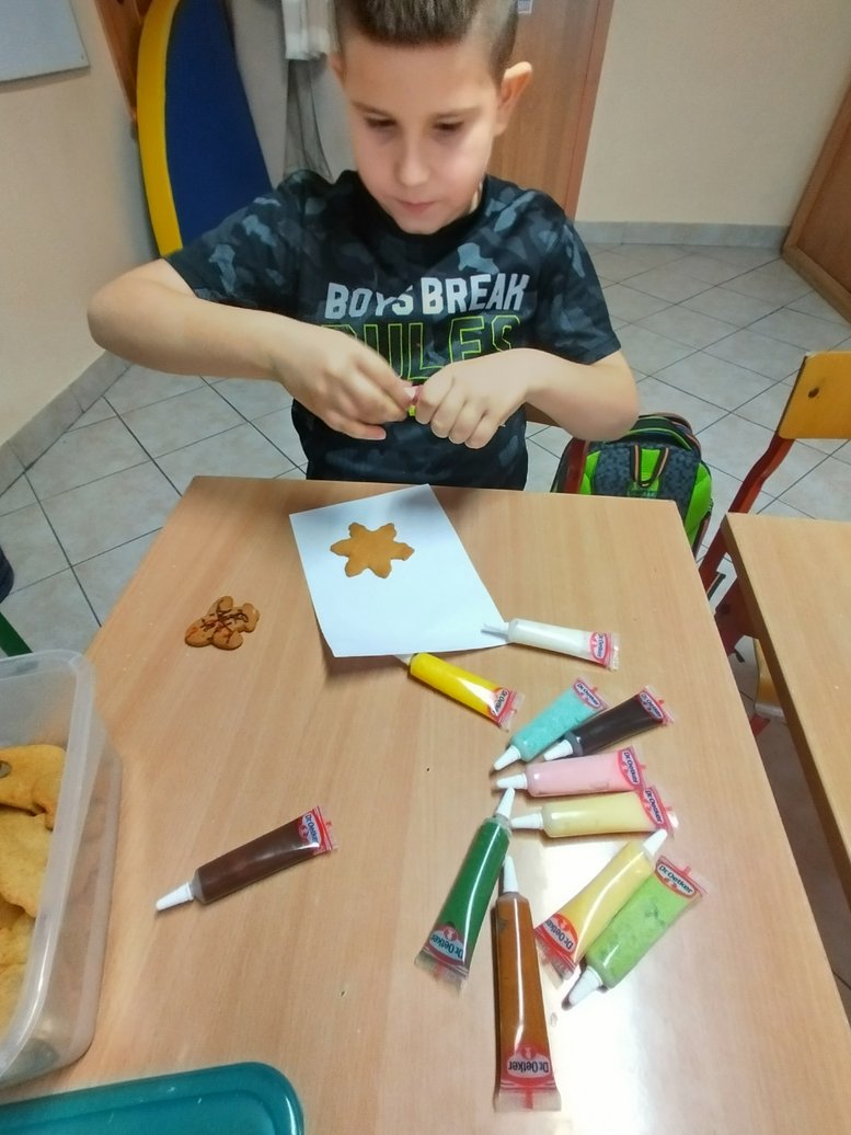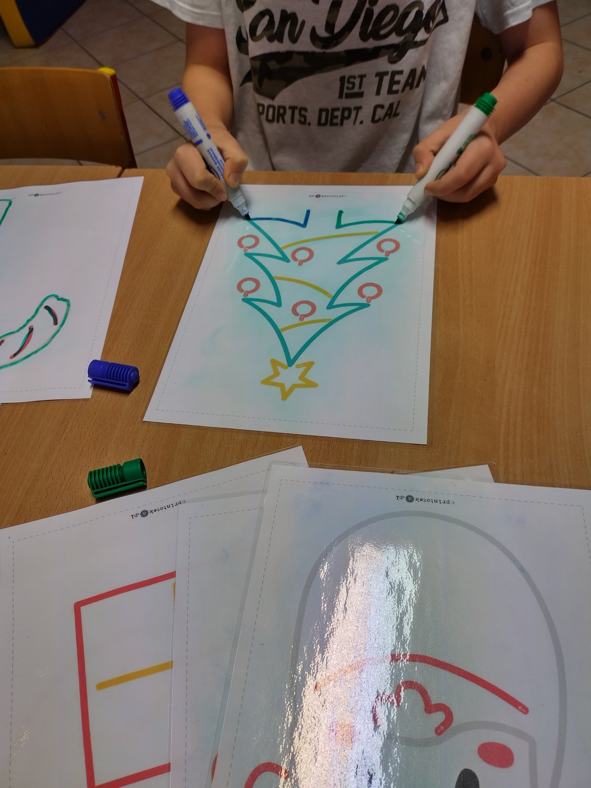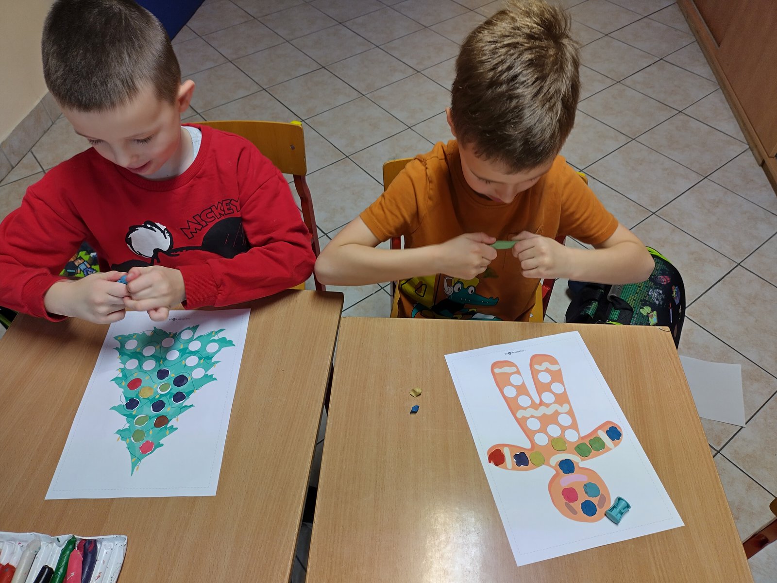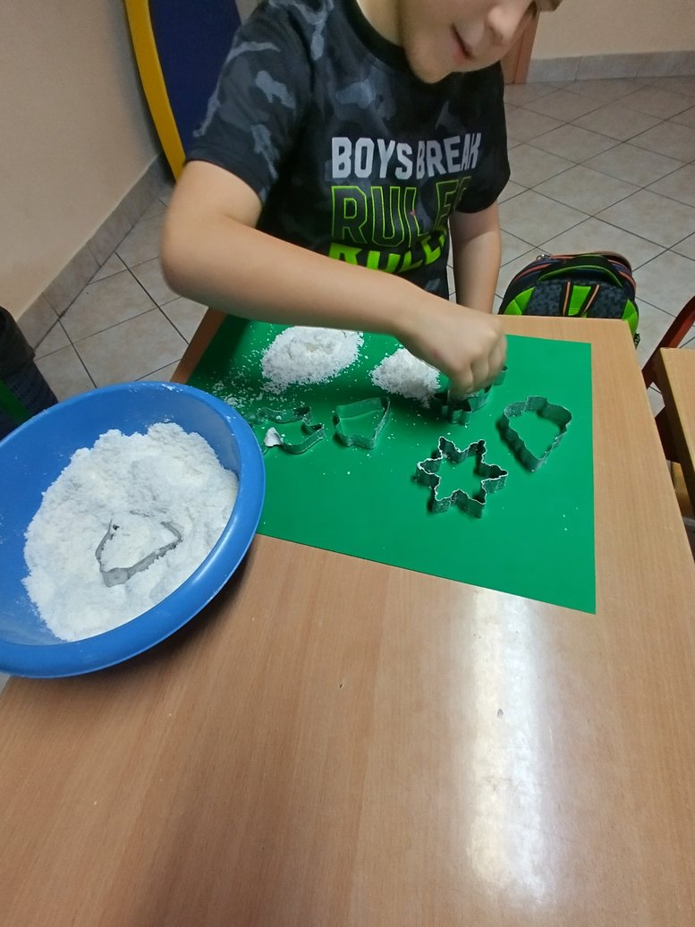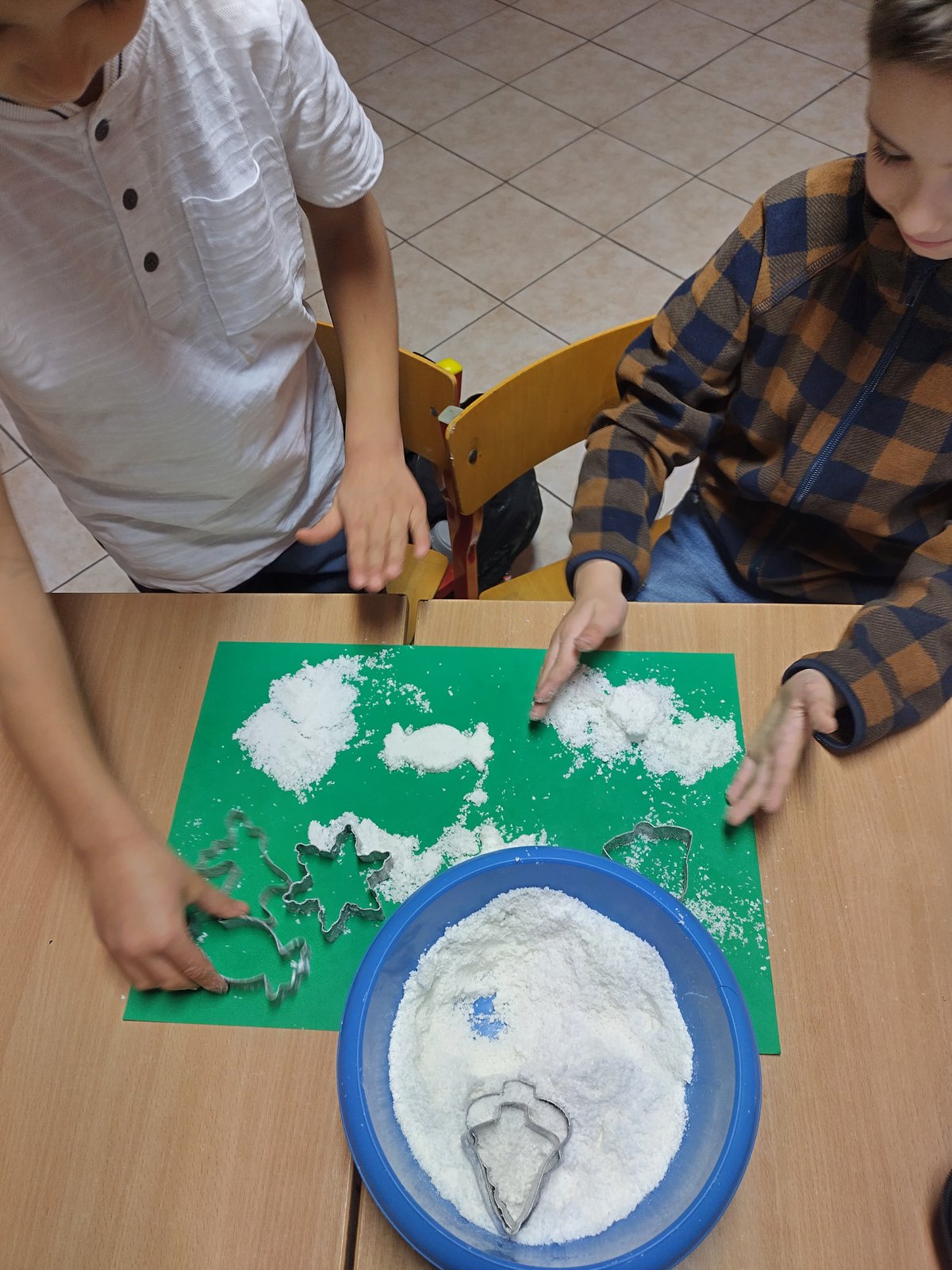 Grudniowe zadanie z projektu Gramy Zmysłami to Sensoryczna Ozdoba Świąteczna, realizowane na wybranych zajęciach logopedycznych, rewalidacyjnych i gimnastyki korekcyjnej. Grudniowy, przedświąteczny czas przesycony jest doznaniami sensorycznymi: świąteczne smaki, zapachy, różnorodne faktury … Wykorzystywaliśmy wszystkie zmysły do różnych świątecznych aktywności. Robiliśmy świąteczne ćwiczenia oddechowe, ćwiczenia artykulacyjne z Mikołajem, ćwiczyliśmy małą motorykę podczas ozdabiania pierniczków i obrazków świątecznych, a także wykorzystywaliśmy masę sensoryczną w postaci sztucznego śniegu. Doświadczaliśmy świątecznego smaku i zapachu podczas wąchania i jedzenia pierniczków. Kokosowy śnieg również pobudzał nasz zmysł węchu . Ach, co to był za smak …. i zapach …. Rozwijaliśmy słownictwo związane ze świętami, a także stymulowaliśmy rozwój słuchu poprzez słuchanie świątecznych melodii. Zajęcia te rozwijały nas sensorycznie, ponieważ pobudzały wszystkie zmysły. Dostarczyły bodźców sensorycznych. Stanowiły doskonały stymulator dotyku, smaku, a także wzroku i słuchu. Na gimnastyce korekcyjnej pracowaliśmy sensorycznie, strojąc choinkę – naszymi stopami… Pobudzaliśmy w ten sposób zmysł dotyku, czucia głębokiego i równowagi. Stymulowaliśmy także receptory nerwowe umiejscowione na stopach. Jednocześnie (poprzez dotykanie różnych faktur) pozytywnie wpływaliśmy na rozwój stóp, gdyż wzmacniając mięśnie, pracują nasze więzadła dzięki czemu zapobiegamy płaskostopiu. Zapraszamy do obejrzenia zdjęć