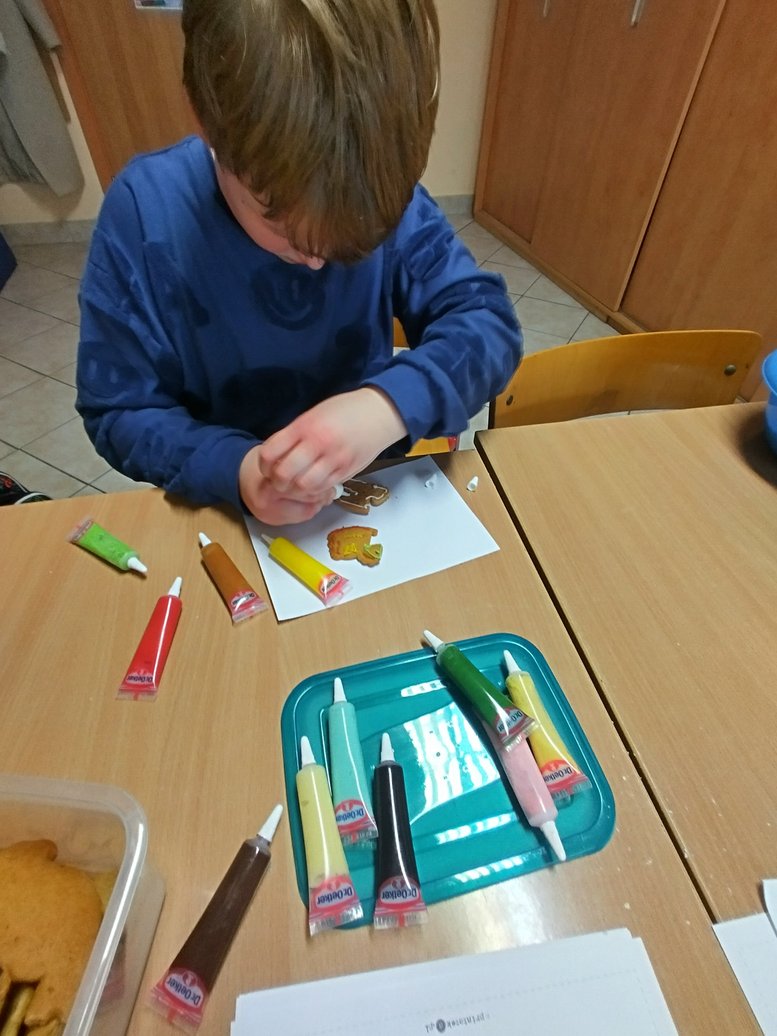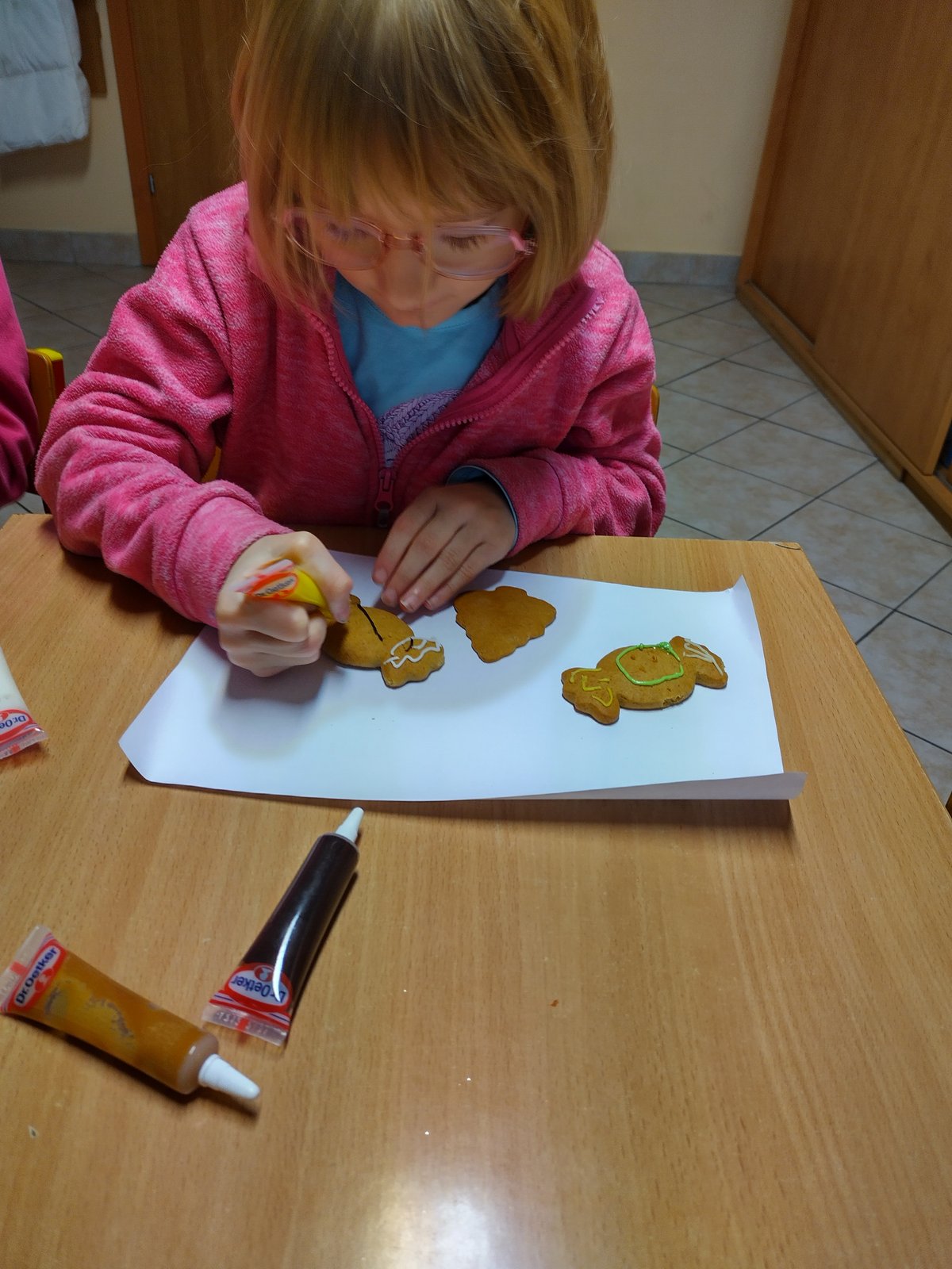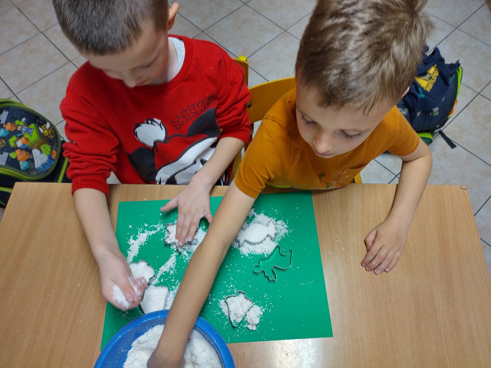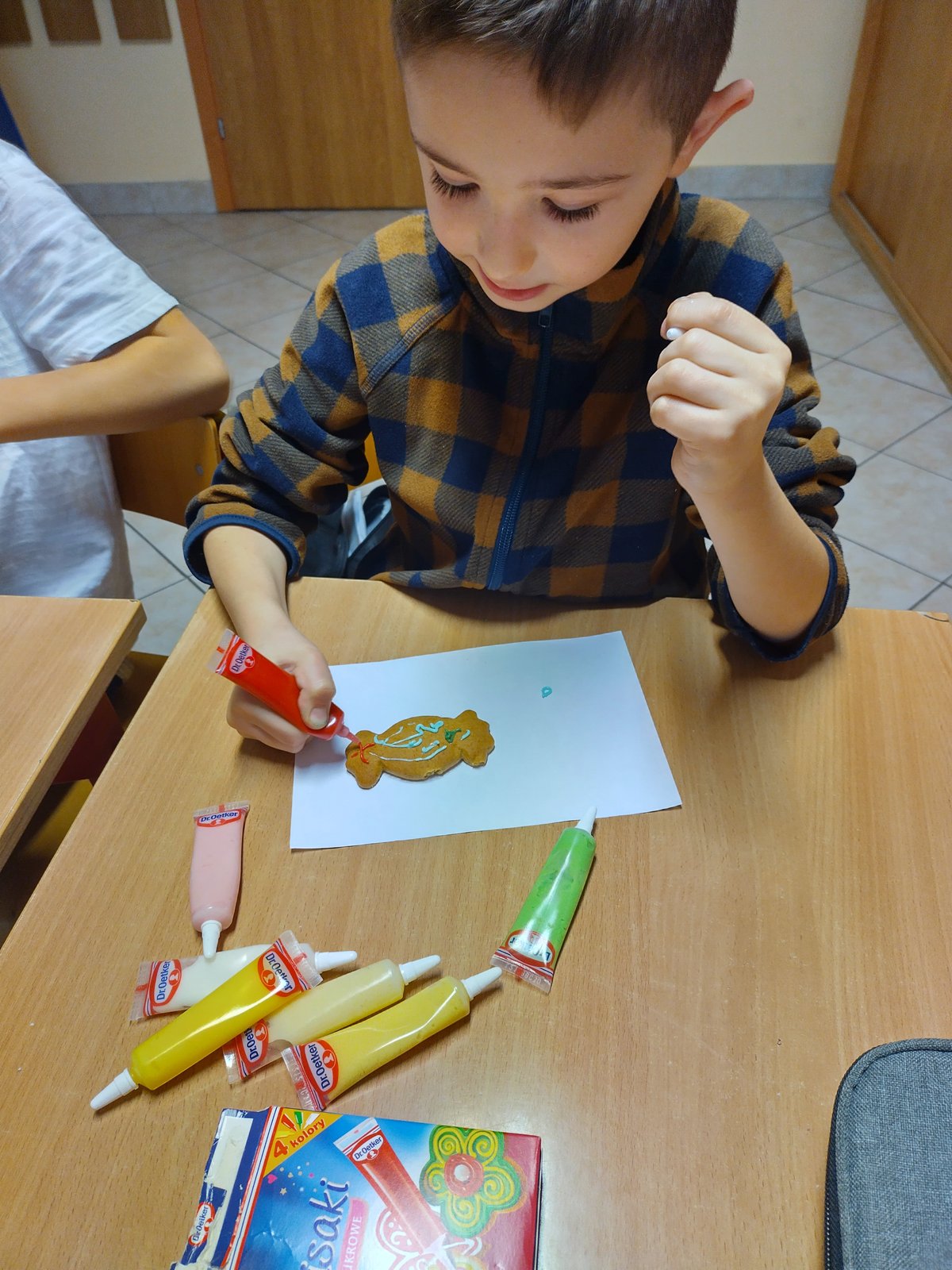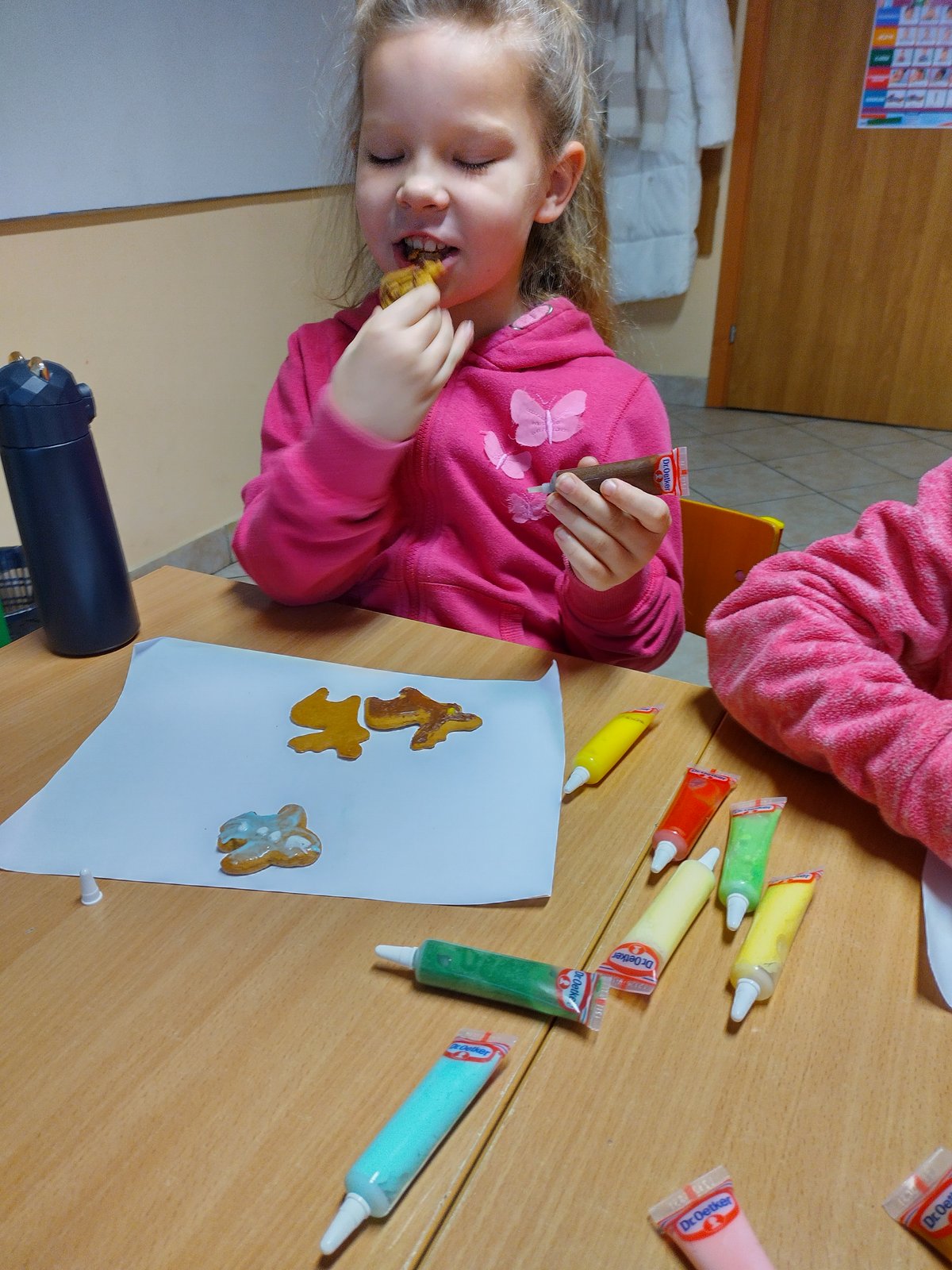 Grudniowe zadanie z projektu Gramy Zmysłami to Sensoryczna Ozdoba Świąteczna, realizowane na wybranych zajęciach logopedycznych, rewalidacyjnych i gimnastyki korekcyjnej. Grudniowy, przedświąteczny czas przesycony jest doznaniami sensorycznymi: świąteczne smaki, zapachy, różnorodne faktury … Wykorzystywaliśmy wszystkie zmysły do różnych świątecznych aktywności. Robiliśmy świąteczne ćwiczenia oddechowe, ćwiczenia artykulacyjne z Mikołajem, ćwiczyliśmy małą motorykę podczas ozdabiania pierniczków i obrazków świątecznych, a także wykorzystywaliśmy masę sensoryczną w postaci sztucznego śniegu. Doświadczaliśmy świątecznego smaku i zapachu podczas wąchania i jedzenia pierniczków. Kokosowy śnieg również pobudzał nasz zmysł węchu . Ach, co to był za smak …. i zapach …. Rozwijaliśmy słownictwo związane ze świętami, a także stymulowaliśmy rozwój słuchu poprzez słuchanie świątecznych melodii. Zajęcia te rozwijały nas sensorycznie, ponieważ pobudzały wszystkie zmysły. Dostarczyły bodźców sensorycznych. Stanowiły doskonały stymulator dotyku, smaku, a także wzroku i słuchu. Na gimnastyce korekcyjnej pracowaliśmy sensorycznie, strojąc choinkę – naszymi stopami… Pobudzaliśmy w ten sposób zmysł dotyku, czucia głębokiego i równowagi. Stymulowaliśmy także receptory nerwowe umiejscowione na stopach. Jednocześnie (poprzez dotykanie różnych faktur) pozytywnie wpływaliśmy na rozwój stóp, gdyż wzmacniając mięśnie, pracują nasze więzadła dzięki czemu zapobiegamy płaskostopiu. Zapraszamy do obejrzenia zdjęć