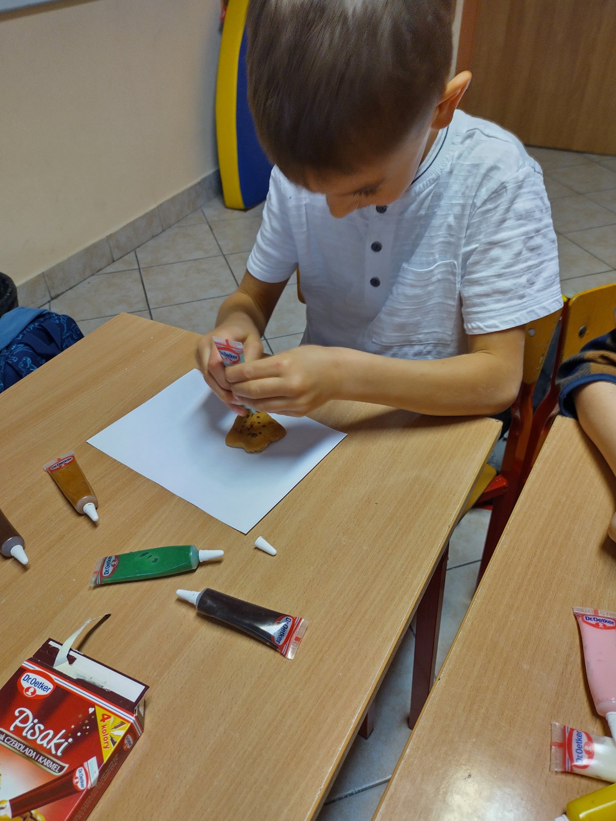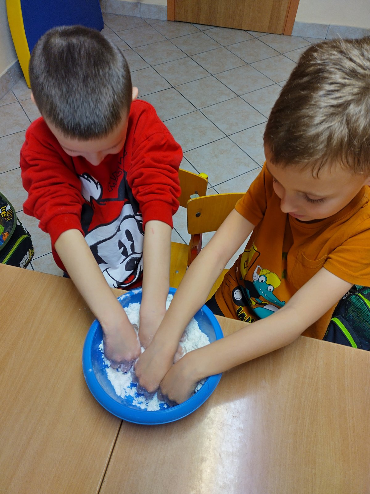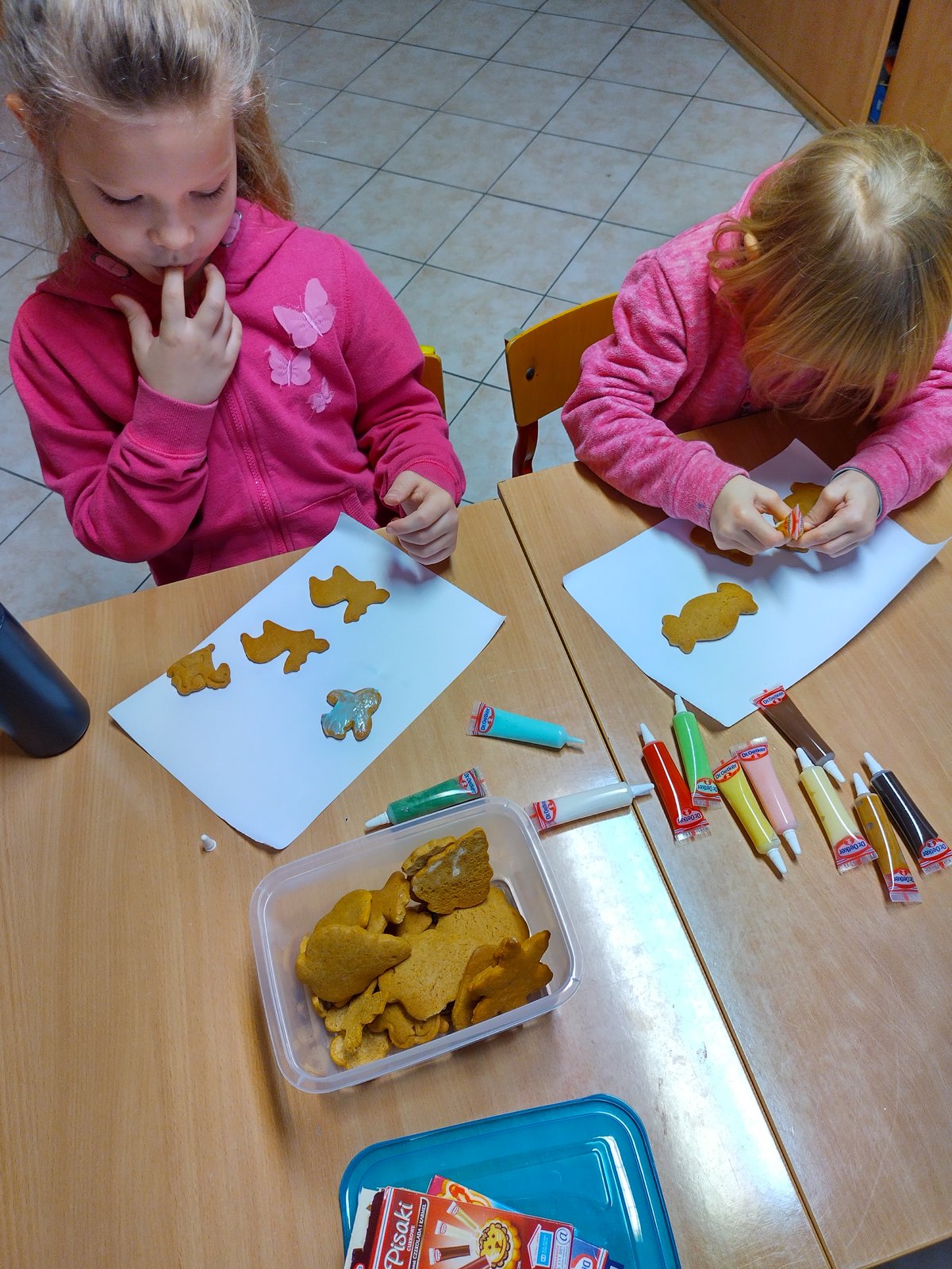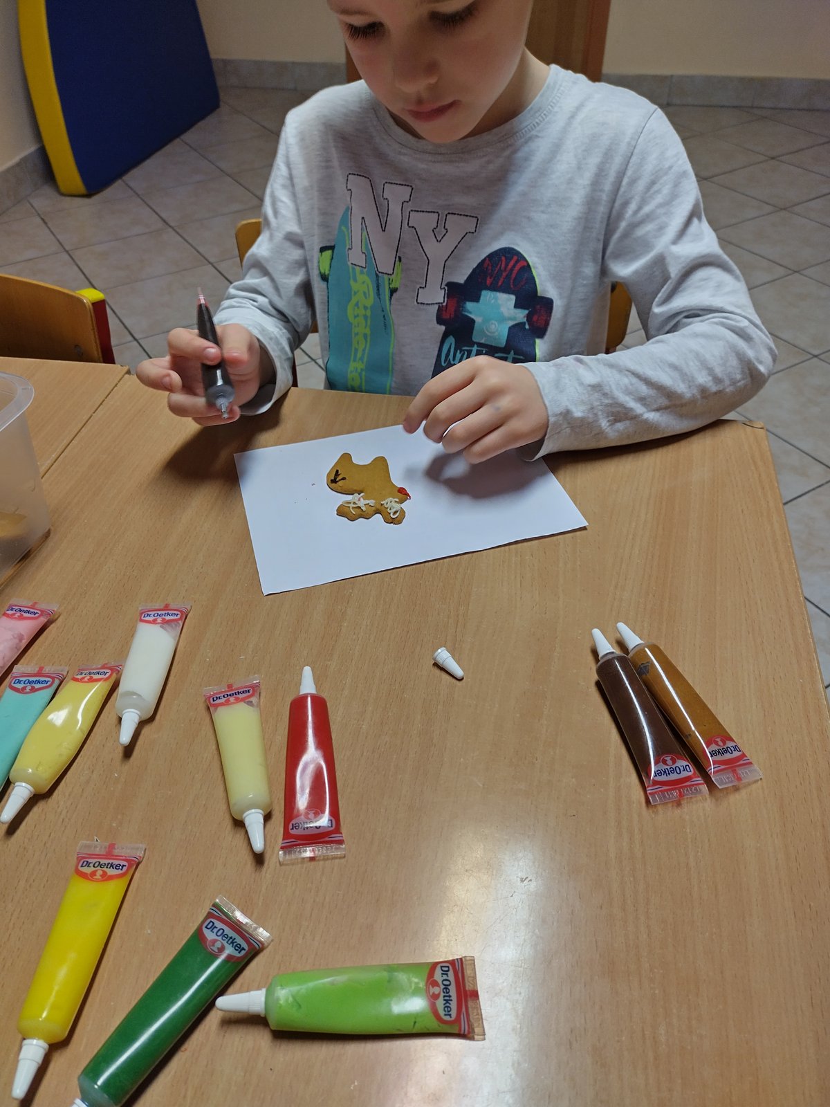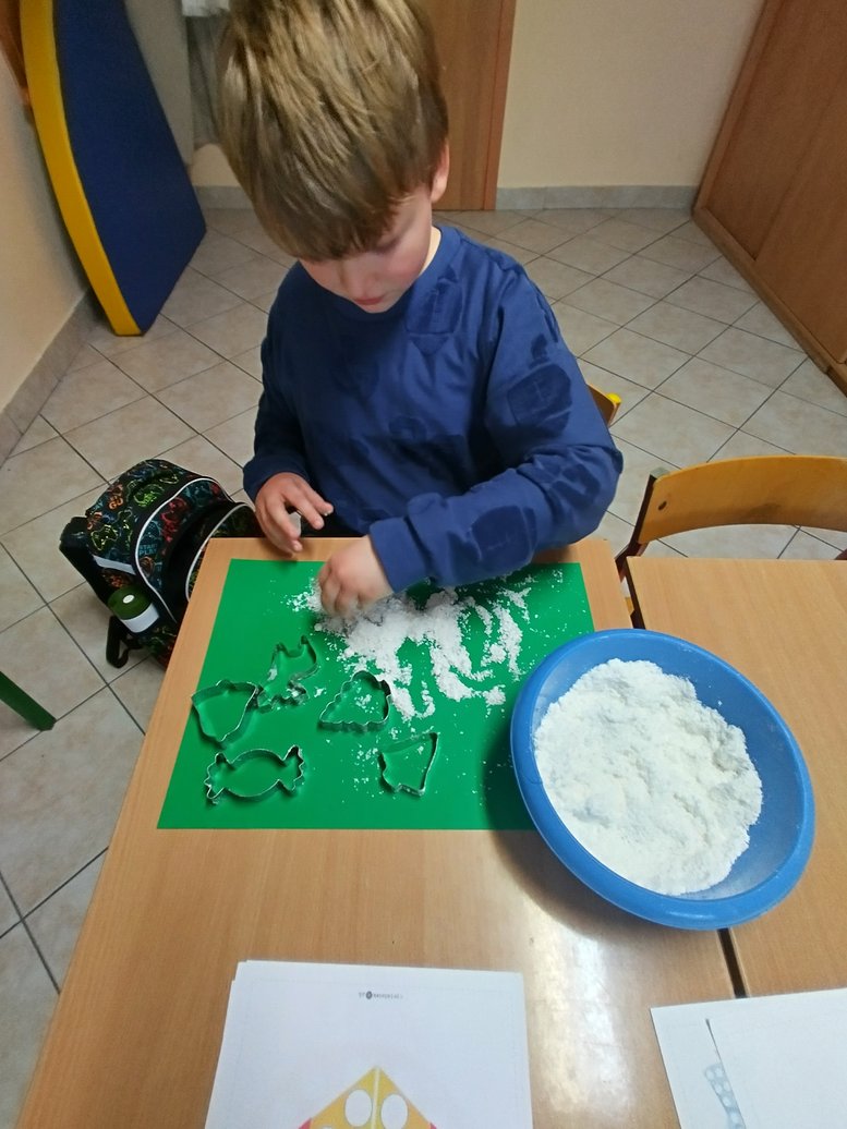Grudniowe zadanie z projektu Gramy Zmysłami to Sensoryczna Ozdoba Świąteczna, realizowane na wybranych zajęciach logopedycznych, rewalidacyjnych i gimnastyki korekcyjnej. Grudniowy, przedświąteczny czas przesycony jest doznaniami sensorycznymi: świąteczne smaki, zapachy, różnorodne faktury … Wykorzystywaliśmy wszystkie zmysły do różnych świątecznych aktywności. Robiliśmy świąteczne ćwiczenia oddechowe, ćwiczenia artykulacyjne z Mikołajem, ćwiczyliśmy małą motorykę podczas ozdabiania pierniczków i obrazków świątecznych, a także wykorzystywaliśmy masę sensoryczną w postaci sztucznego śniegu. Doświadczaliśmy świątecznego smaku i zapachu podczas wąchania i jedzenia pierniczków. Kokosowy śnieg również pobudzał nasz zmysł węchu . Ach, co to był za smak …. i zapach …. Rozwijaliśmy słownictwo związane ze świętami, a także stymulowaliśmy rozwój słuchu poprzez słuchanie świątecznych melodii. Zajęcia te rozwijały nas sensorycznie, ponieważ pobudzały wszystkie zmysły. Dostarczyły bodźców sensorycznych. Stanowiły doskonały stymulator dotyku, smaku, a także wzroku i słuchu. Na gimnastyce korekcyjnej pracowaliśmy sensorycznie, strojąc choinkę – naszymi stopami… Pobudzaliśmy w ten sposób zmysł dotyku, czucia głębokiego i równowagi. Stymulowaliśmy także receptory nerwowe umiejscowione na stopach. Jednocześnie (poprzez dotykanie różnych faktur) pozytywnie wpływaliśmy na rozwój stóp, gdyż wzmacniając mięśnie, pracują nasze więzadła dzięki czemu zapobiegamy płaskostopiu. Zapraszamy do obejrzenia zdjęć