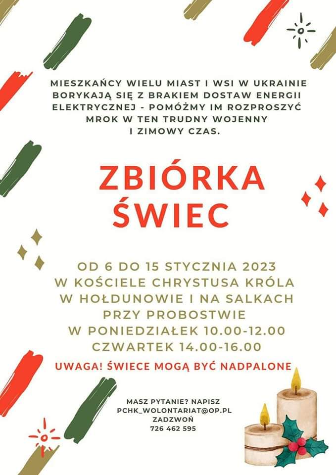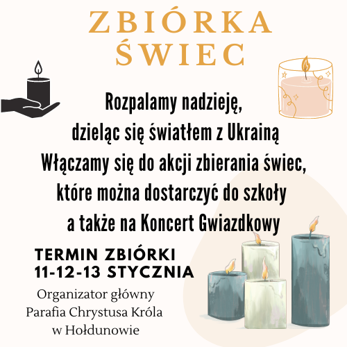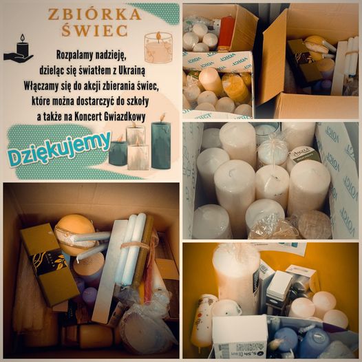 Podczas tegorocznego koncertu odbyła się zbiórka świec dla Ukrainy. Za każde ofiarowane „światełko" składamy Państwu serdeczne podziękowania. Dary zostały przekazane do organizatora głównego - niech dają nadzieję tym, którzy przy świecach spędzą czas, jak i tym, którzy je ofiarowali.