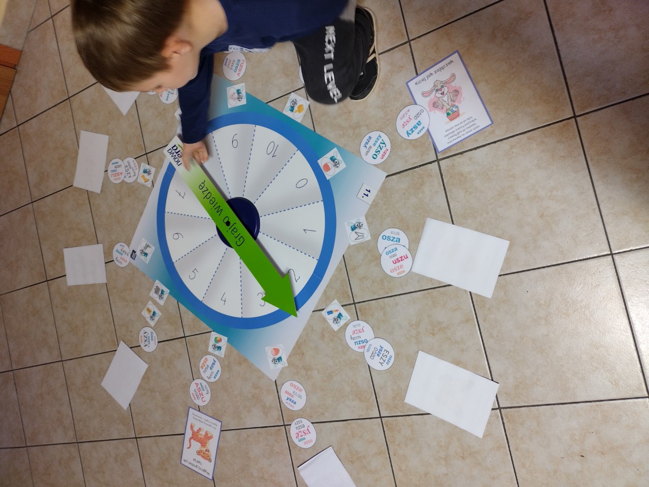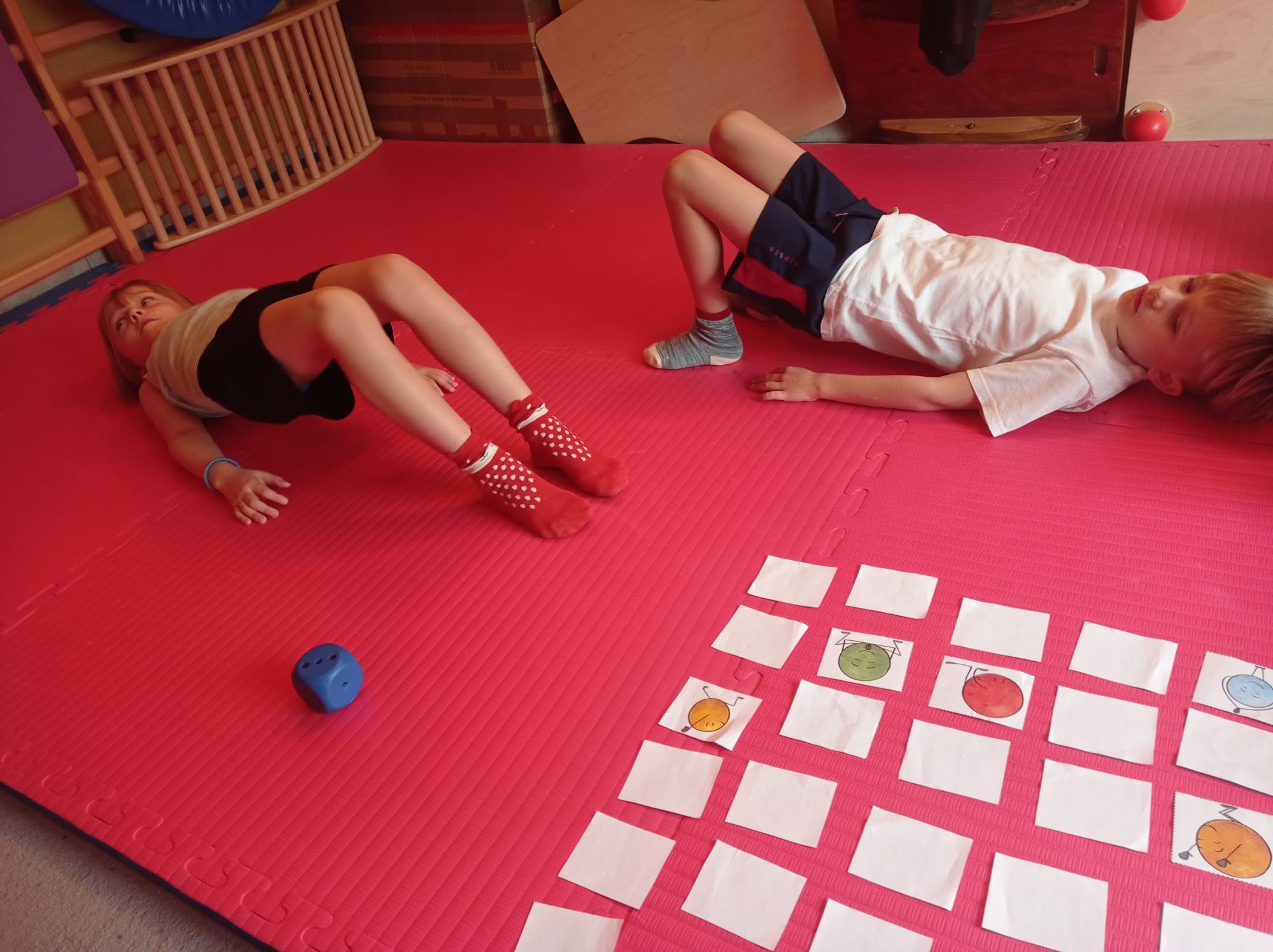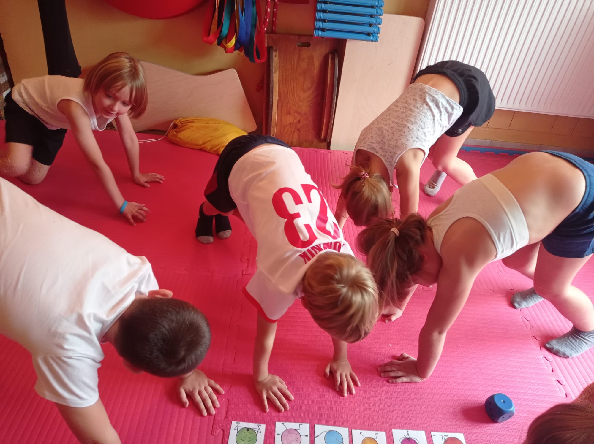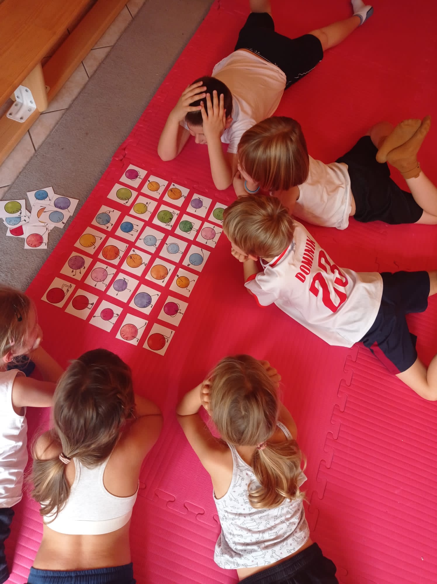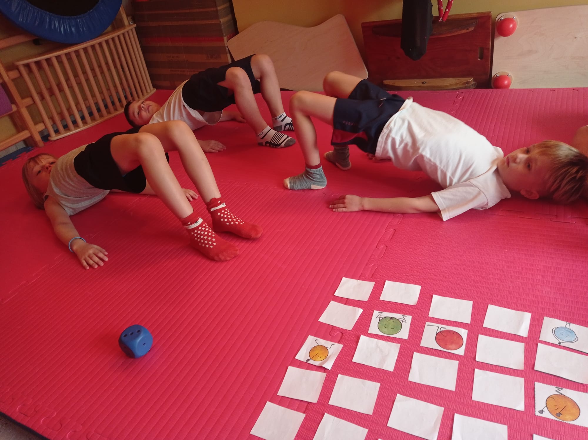 Ćwiczyliśmy koordynację wzrokowo-ruchową i motorykę dużą angażując przy tym logiczne myślenie.