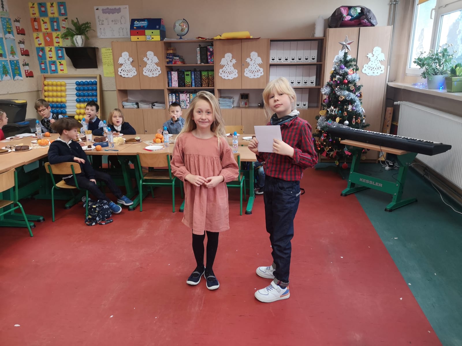 Uczniowie klas młodszych zaprezentowali się wspaniale przed zaproszonymi gośćmi - GÓRNIKAMI.