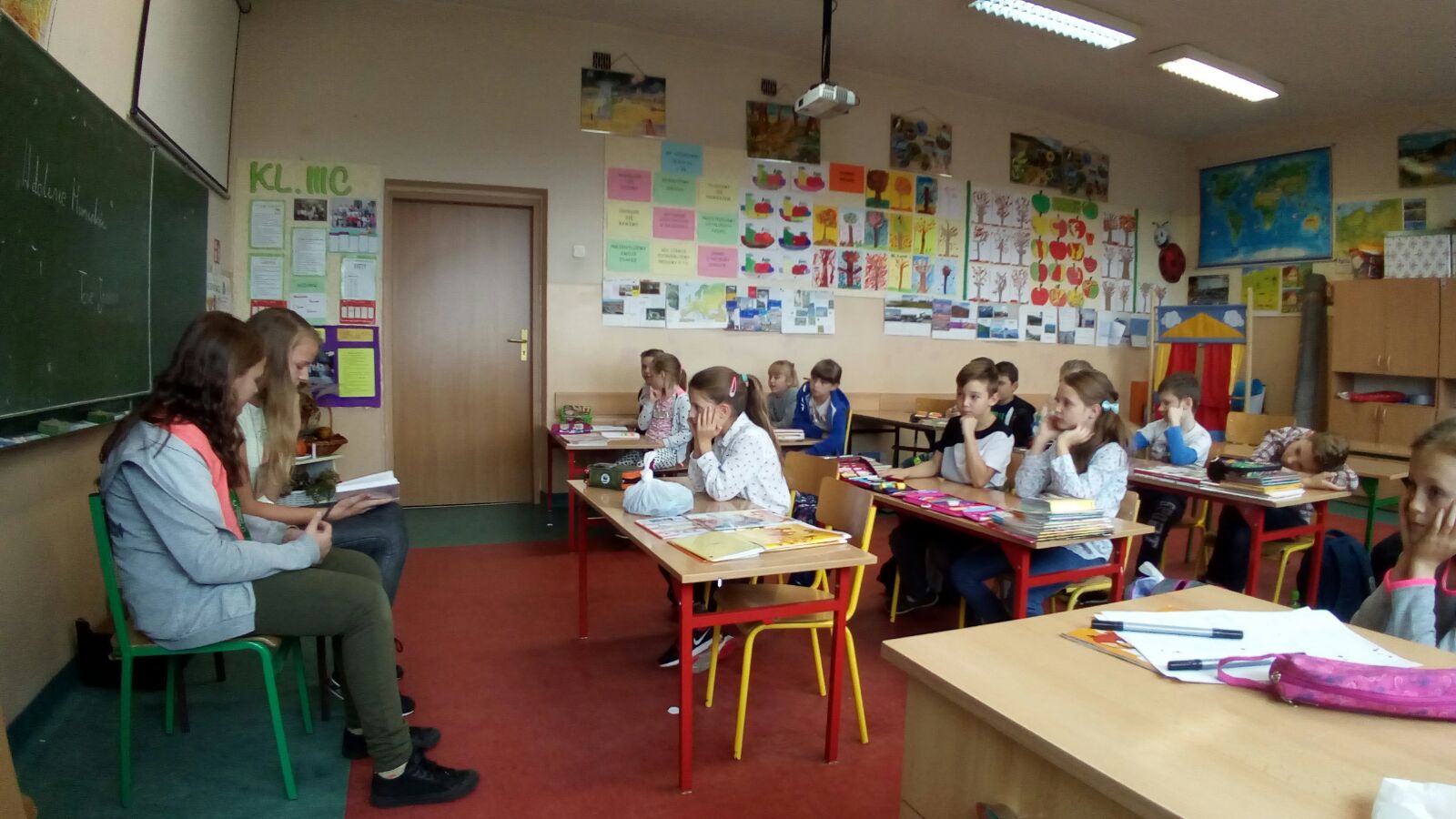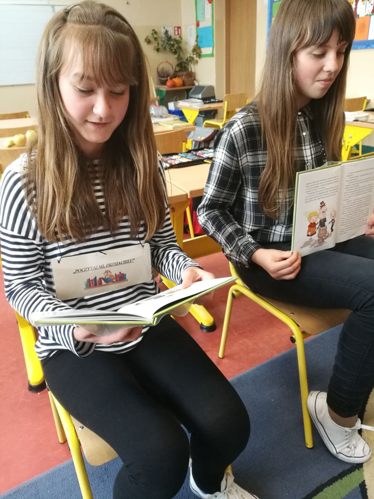 Uczniowie klas szóstych czytali w klasach młodszych I-III i na świetlicy. Dzieci z chęcią słuchały o przygodach bohaterów książkowych, rozwijając swoje zainteresowania czytelnicze, swoją wyobraźnię, bogacąc słownictwo oraz integrując się ze starszymi kolegami i koleżankami.