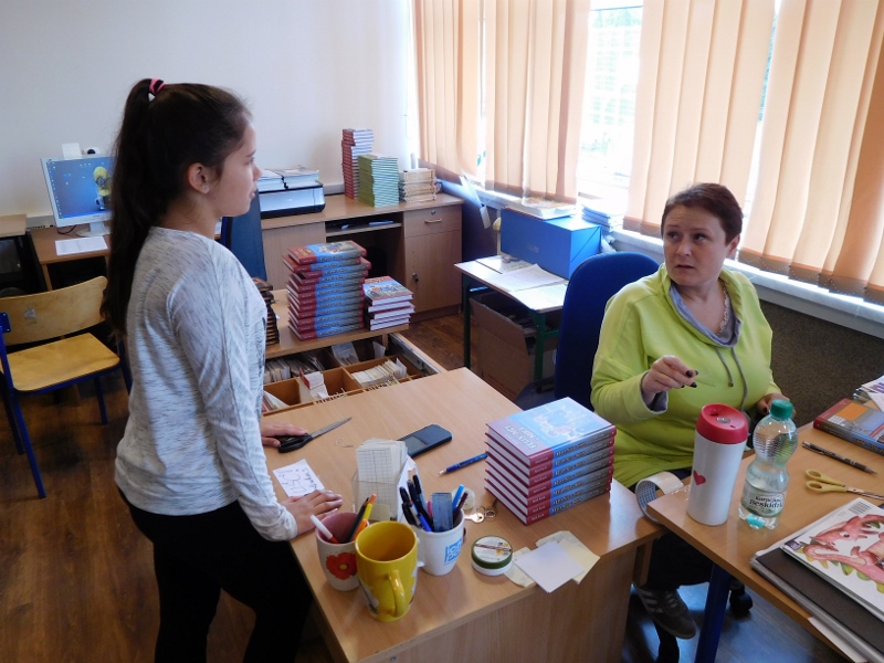Pan Kulikowski zachęcał uczniów do korzystania z zasobów bibliotecznych, ponieważ co roku wydaje się wiele ciekawych pozycji dla dzieci i młodzieży. Chociaż nauczyciele również zachęcają nas – uczniów, do czytania książek, to ciągle jednak nie wszyscy są do tego przekonani. Może muszą po prostu do tego dorosnąć? :)