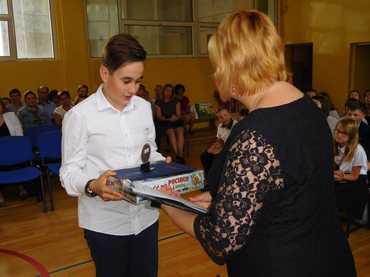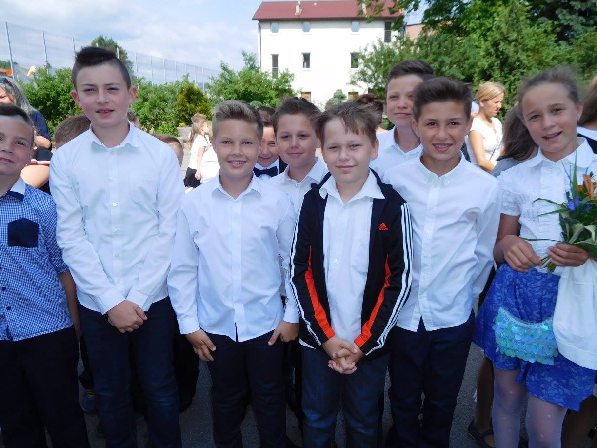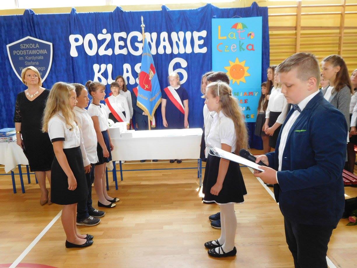 Uroczystość zakończenia roku szkolnego 2016/2017 w naszej szkole tradycyjnie rozpoczęła się o 08:00 Mszą św. w parafialnym kościele. Wręczenie świadectw odbyło się na boisku szkolnym, w dwóch turach: klasy I-III o 09:15, klasy IV-VI o 09:45.