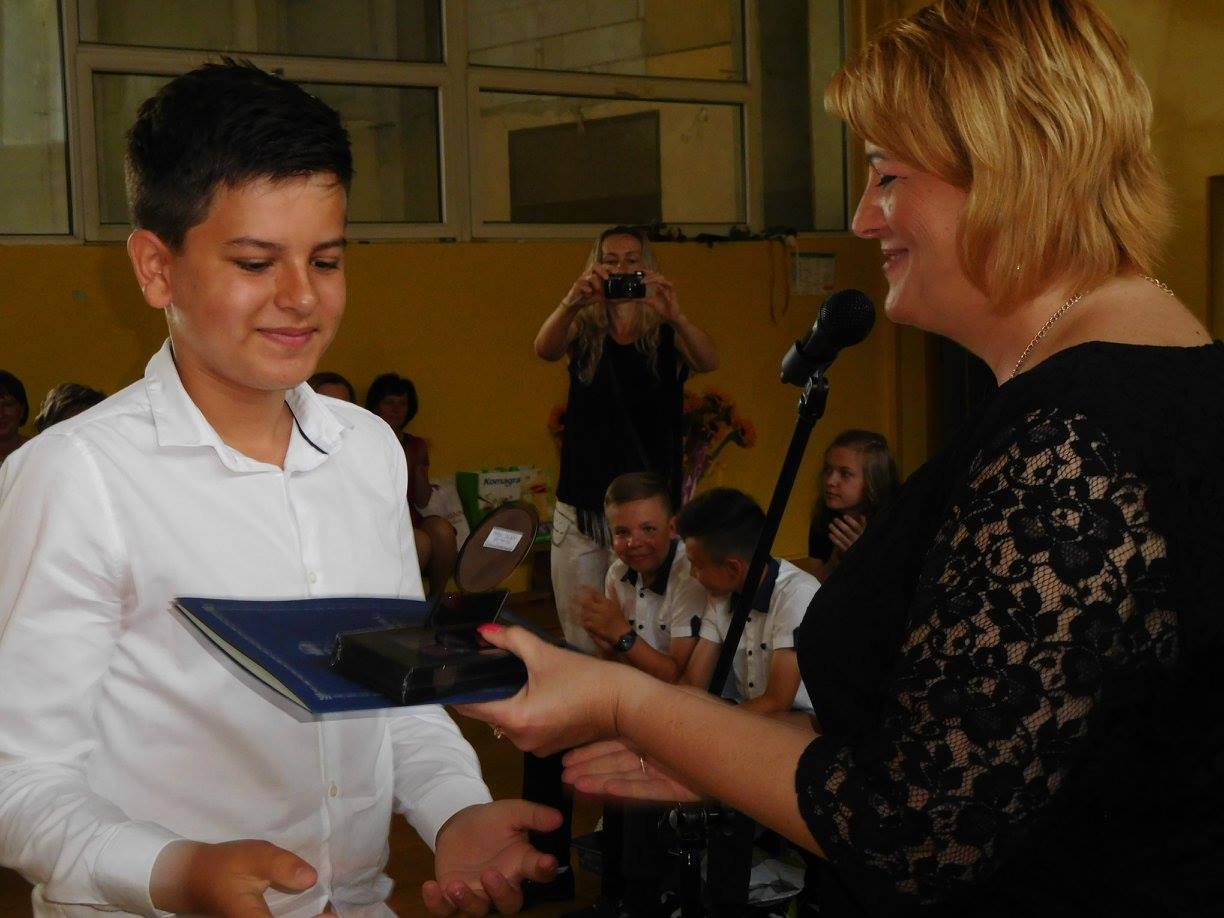 Pani Dyrektor Dagmara Kupczyk serdecznie pogratulowała swoim podopiecznym wspaniałych wyników, które potwierdzone zostały sukcesami w szkolnych i zewnętrznych konkursach, wręczyła również świadectwa z wyróżnieniem oraz nagrody książkowe. Przypomniała o zasadach bezpieczeństwa obowiązujących podczas wakacyjnego odpoczynku. Następnie uczniowie wraz z wychowawcami udali się do klas, aby po raz ostatni w tym roku szkolnym zasiąść w szkolnej ławie... na szczęście tylko po to, aby życzyć sobie udanych wakacji! Wychowawcy przeprowadzili krótkie pogadanki nt. bezpieczeństwa i życzyli swoim klasom radosnego i aktywnego wypoczynku.