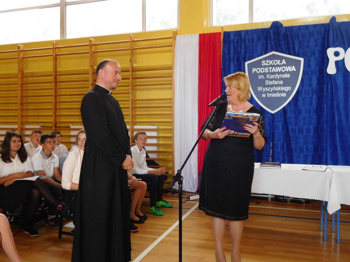 Akademia klas VI stała się okazją do pożegnania księdza Piotra Lisieckiego, który pracował w naszej szkole dwa lata. Pani Dyrektor podziękowała księdzu w imieniu całej społeczności uczniowskiej oraz grona pedagogicznego za wspólnie spędzony czas oraz życzyła Mu powodzenia w nowej parafii i szkole.