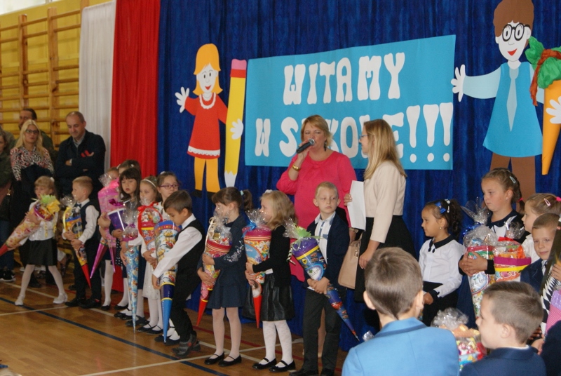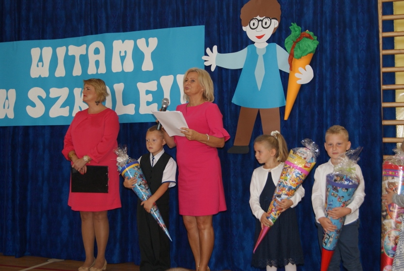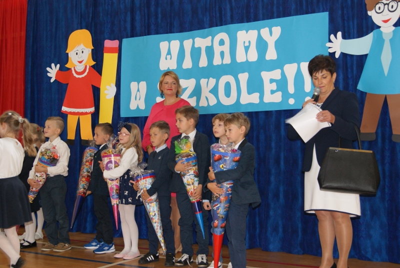 Nieco później, bo o 10:00, odbyło się rozpoczęcie roku klas I. Pierwszoklasiści i pierwszoklasiści przybyli do szkoły odświętnie ubrani z obowiązkową "tytą" w ręce. Dzieci przywitała w progach imielińskiej "dwójki" Pani Dyrektor; najmłodsi uczniowie poznali również swoje wychowawczynie, Panie: Celinę Buczek, Anetę Pudlewską, Barbarę Szopę, Ewę Gierlotkę i Jadwigę Lis. Pasowanie na ucznia odbędzie się 6 października.