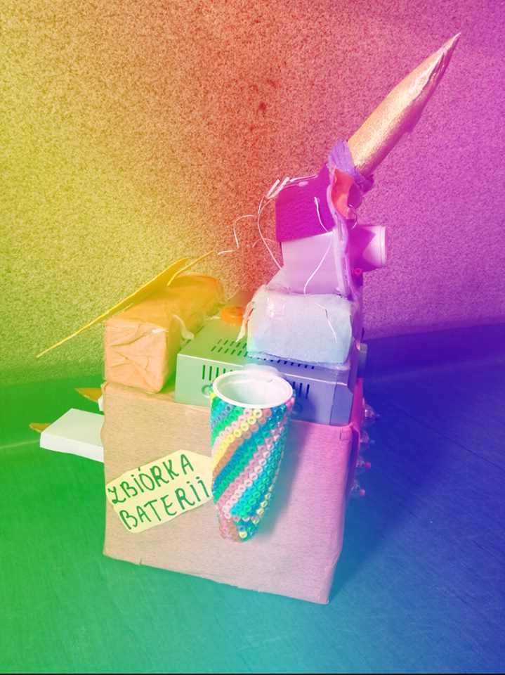 Jak czytamy w uzasadnieniu nagroda trafiła do naszych uczniów za: bardzo wszechstronne prace oparte na wyobraźni twórczej: za ekokoncepcję i wykonanie urządzenia „ekorożca wielofunkcyjnego” do przetwarzania zużytego ZSEiE z wydzieleniem baterii, za wspaniałą księgę recyklingu tłumaczącą i wyjaśniającą na czym polega recykling - z dosłownym zaglądaniem „w głąb rzeczy”, właściwym dla ludzi twórczych i kreatywnych – znaleźliśmy w niej m.in. skład materiałowy opakowań czy odpadów ZSEiE, profesjonalną ekogalerię, ale także przykłady poszukiwań dzieł wykonanych w technice recyklart w najbliższej okolicy.