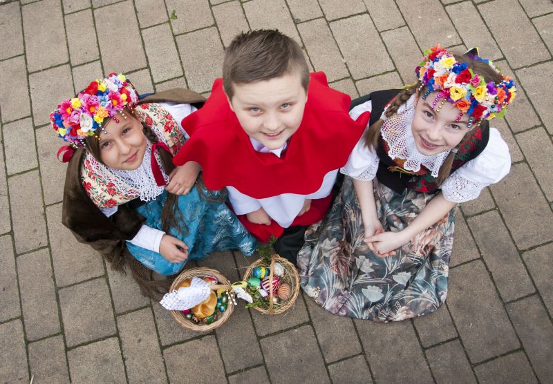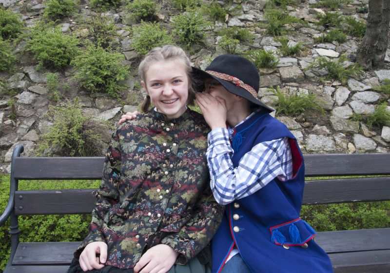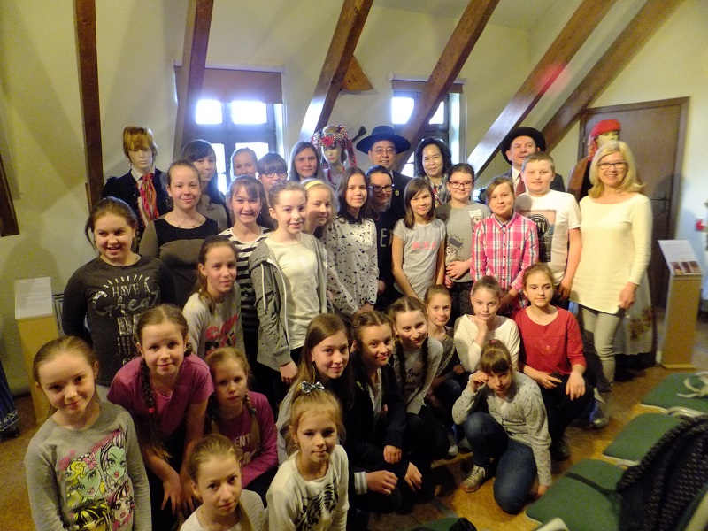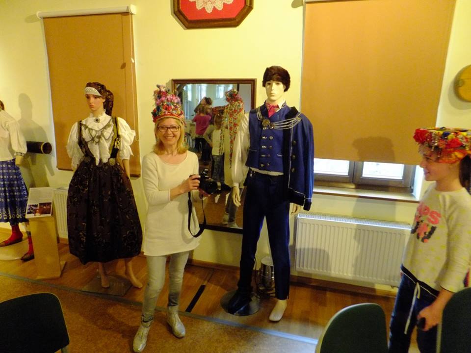 Po przerwie (na konsumpcję przywiezionych ze sobą smakołyków) uczennice i uczniowie uczestniczyli w lekcji poświęconej folklorowi Górnego Śląska. Mieli okazję zobaczyć dawne stroje z różnych regionów Śląska, mogli przymierzać wianki czy kapelusze. Dowiedzieli się, że każdy element stroju – dziewczyny, młodzieńca, mężatki czy męża – miał określone znaczenie. Na przykład kolor „szlajfek” przy wianku dziewczyny, ilość guzików przy męskim surducie, czy to, że panna młoda nie miała białej sukni tylko czarną, którą po ślubie przez lata nosiła.