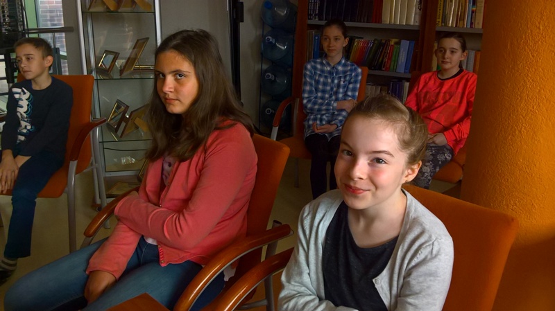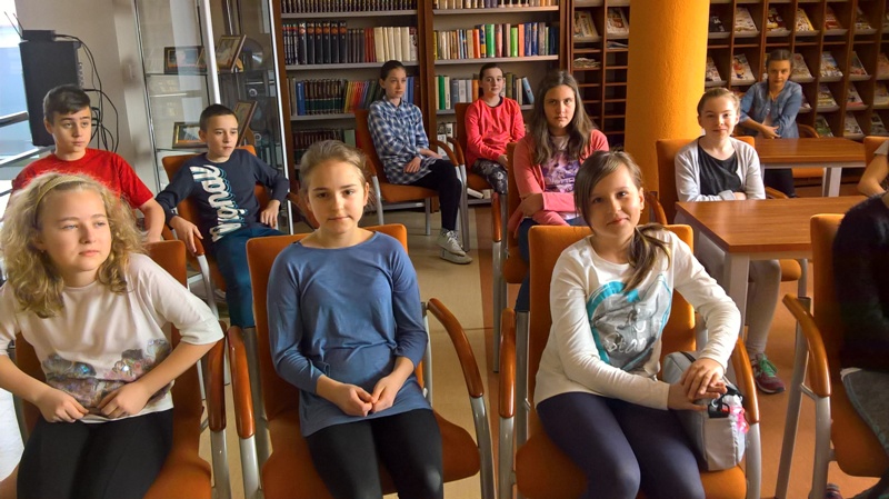 Uczennice i uczniowie klas VI "b" i VI "d" wzięli dzisiaj (12 kwietnia) udział w spotkaniu podsumowującym projekt filmowy.