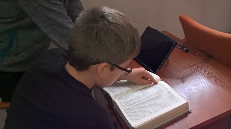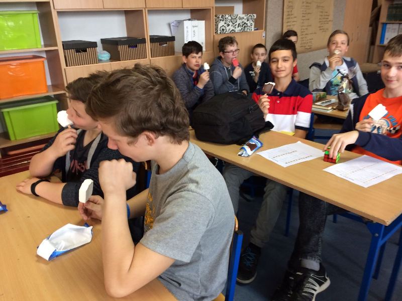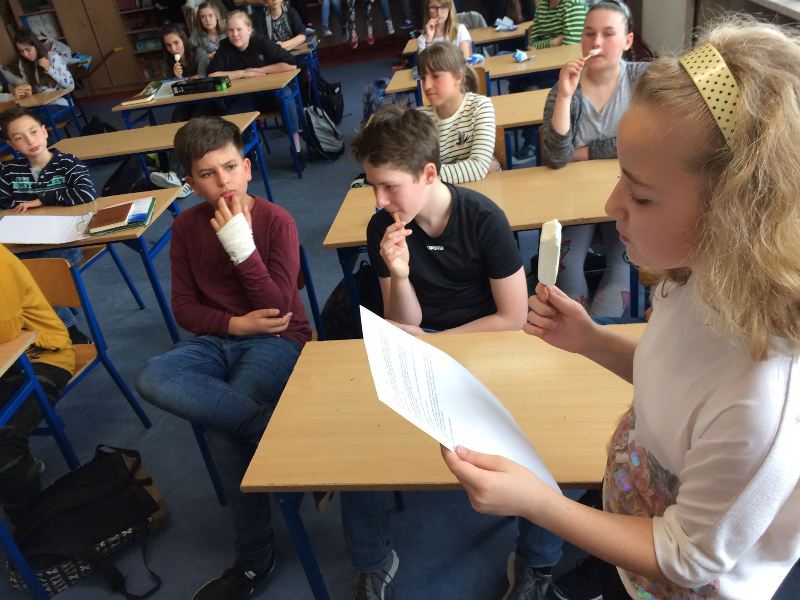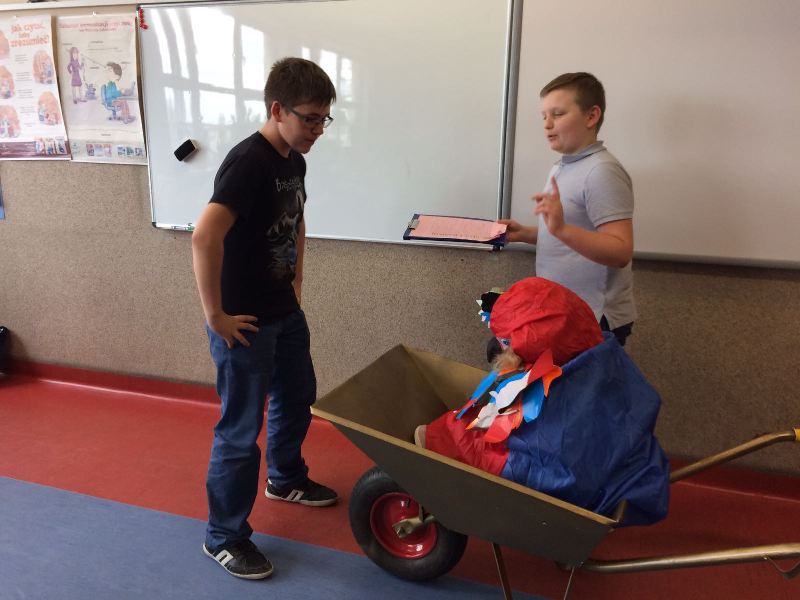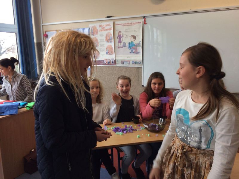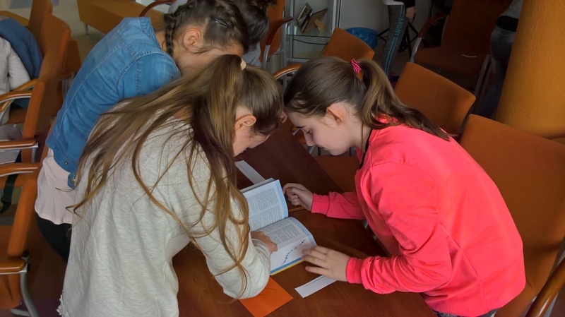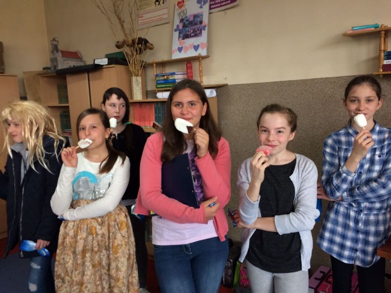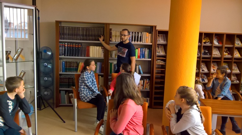Szóstoklasiści przypomnieli sobie zasady korzystania z księgozbioru podręcznego oraz rodzaje źródeł informacji. Następnie, podzielni na dwie drużyny, walczyli o puchar "Mistrza wyszukiwania informacji", szukając odpowiedzi w rozmaitych encyklopediach, leksykonach i słownikach. Obie grupy szybko uporały się z zadaniami, więc pozostały czas można było przeznaczyć na zabawę w kalambury.