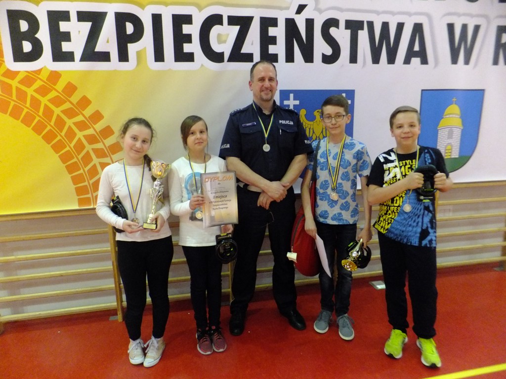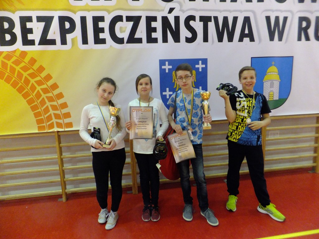Nasza drużyna w składzie: Dariusz Mazurkiewicz, Magdalena Malinowska, Kamil Miś i Amelia Kuc zajęła II miejsce. Ponadto Darek zajął II miejsce w jeździe indywidualnej. Uczniów do Turnieju przygotowały Panie: Urszula Haber - teoria, Małgorzata Tomczok - pierwsza pomoc, Katarzyna Krzyżowska - praktyka.