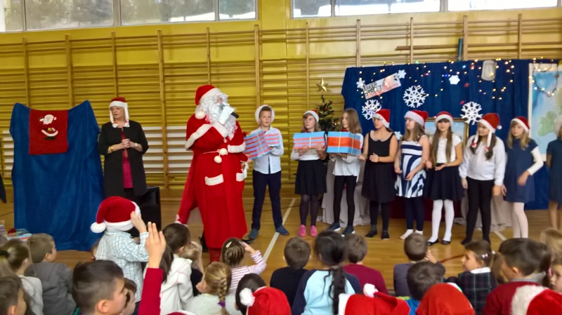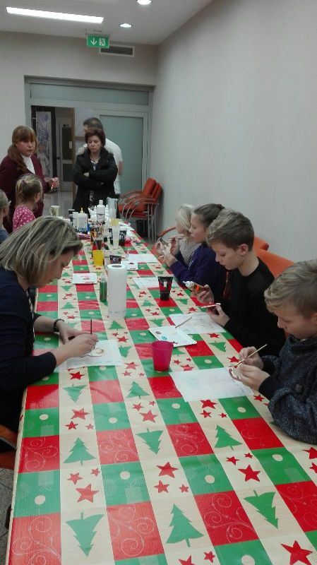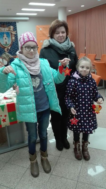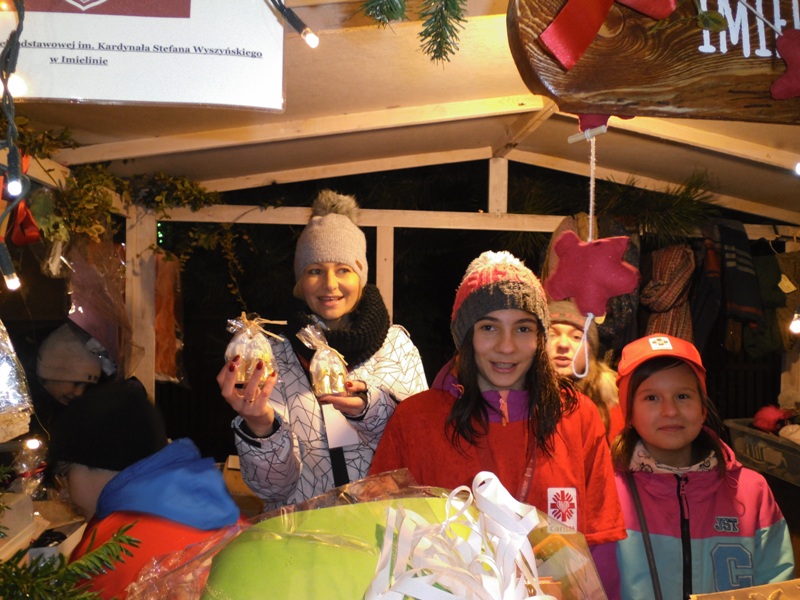 IV Imieliński Kiermasz Świąteczny to nasz debiut. Do tej pory cyklicznie, w okresie przedświątecznym, prowadzona była dystrybucja ozdób świątecznych na terenie SP. W tym roku zdecydowaliśmy się wyjść na „zewnątrz”. Choć pogoda nie sprzyjała, w sercach płonął ogień radości. Przyświecał nam szczytny cel: chęć pomocy osobom niepełnosprawnym z Ośrodka bł. Karoliny w Lędzinach. Po odwiedzeniu naszego kiermaszowego stoiska, kolejne zadowolone osoby wracały do domu zaopatrzone w imielińskie sianko, piękne kartki, misternie wykonane szopki betlejemskie, anioły i wiele innych, atrakcyjnych, ręcznie wykonanych ozdób świątecznych.