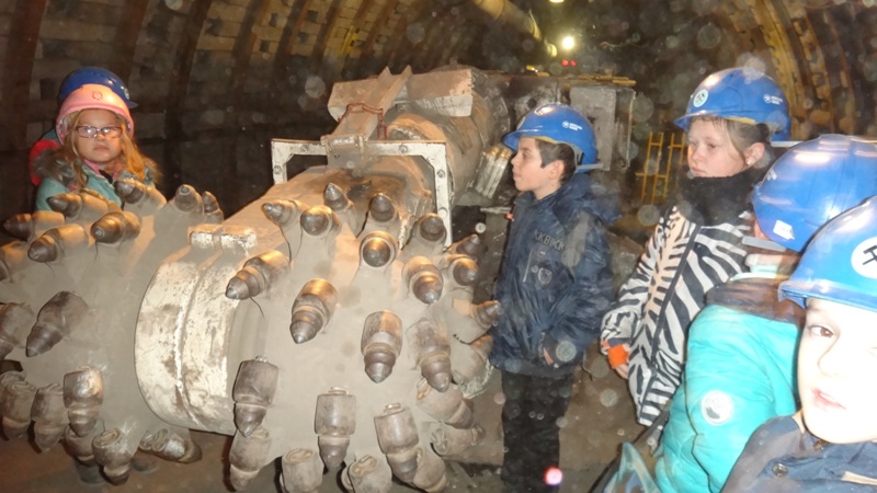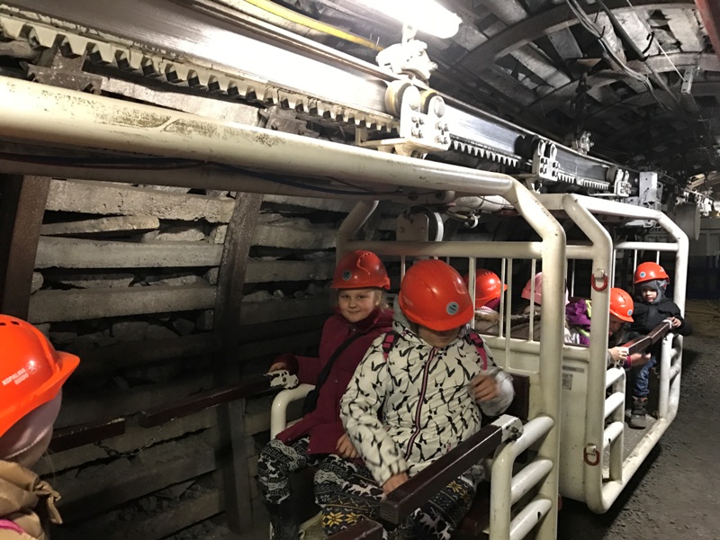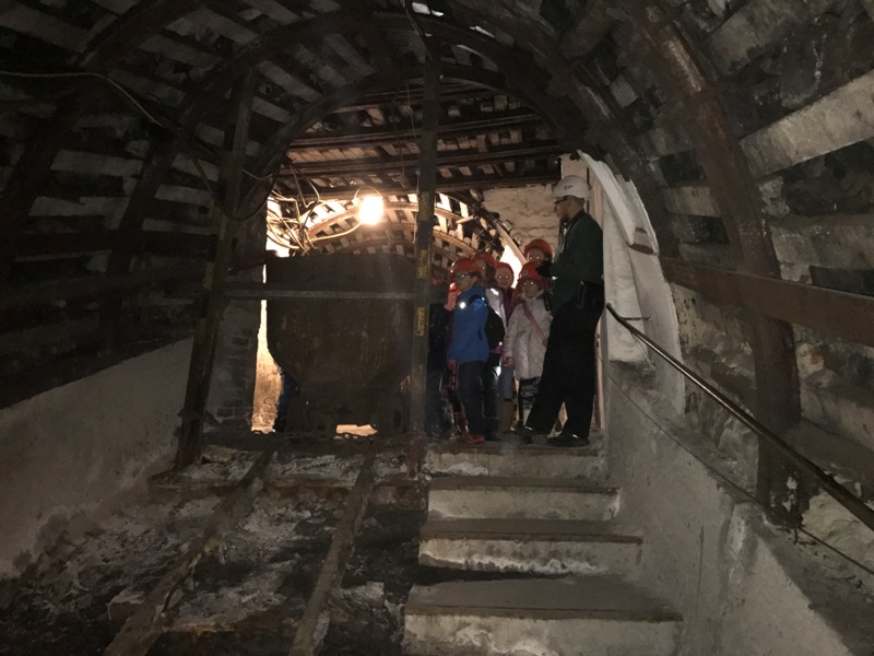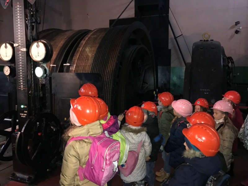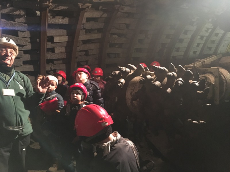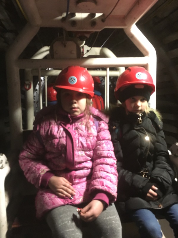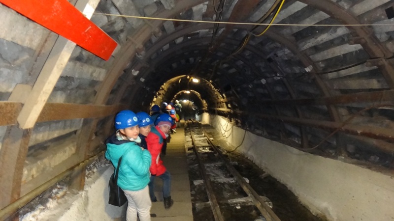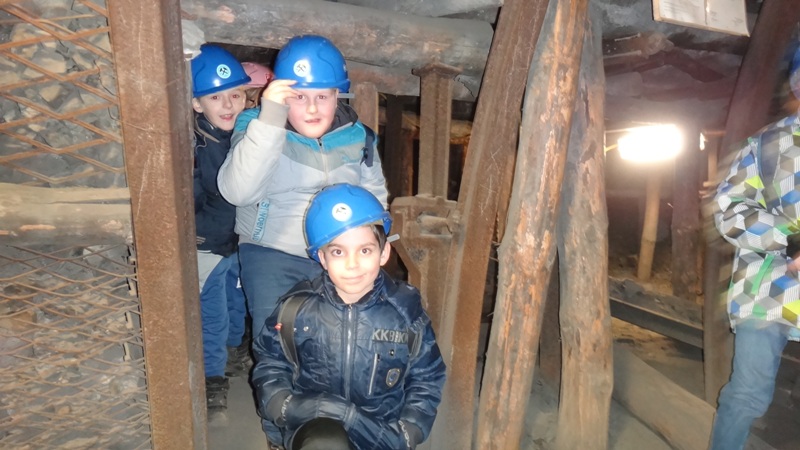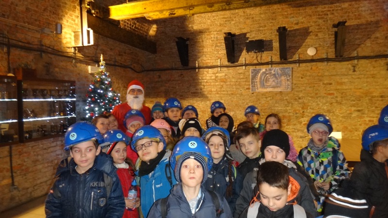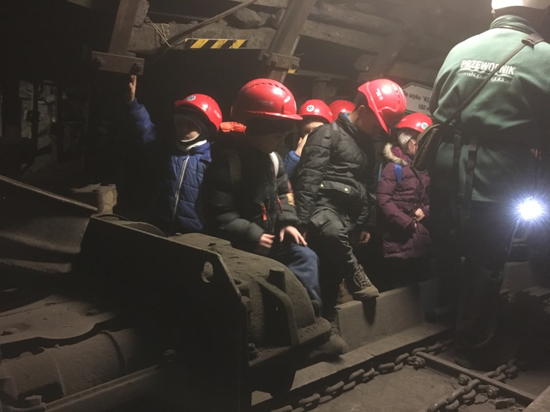 Górniczą szolą najpierw zjechaliśmy na poziom 170, gdzie obejrzeliśmy podziemne stajnie z przełomu XIX i XX wieku, multimedialne projekcje wody wdzierającej się do górniczego chodnika i huk wybuchających materiałów strzałowych. Poznaliśmy też dzieje patronki górników i piękną kaplicę z witrażem i rzeźbą św. Barbary. Potem tą samą szolą zjechaliśmy na poziom 320. Jest to najgłębiej położona w kopalni węgla kamiennego trasa turystyczna w Europie . Tam przekonaliśmy się na własne oczy jak wygląda górnicza szychta. Pokazano nam jak pracują maszyny górnicze i w jak trudnych i niebezpiecznych warunkach pracują górnicy. Tam też jechaliśmy podwieszaną kolejką elektryczną.