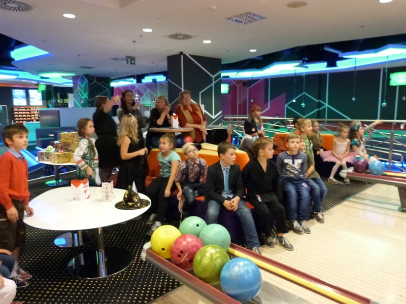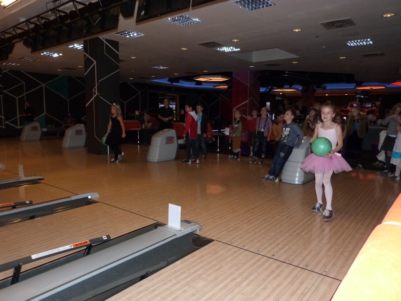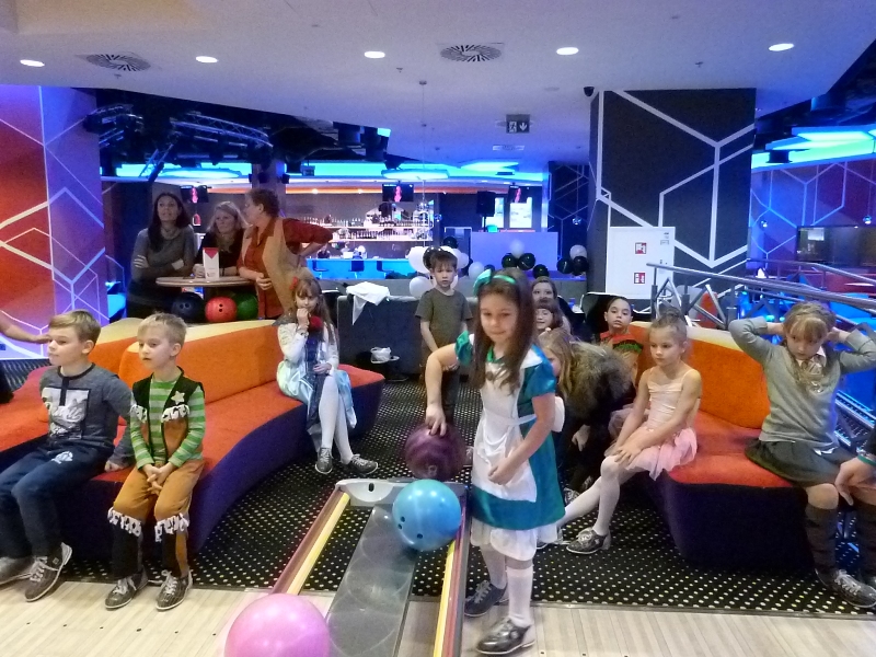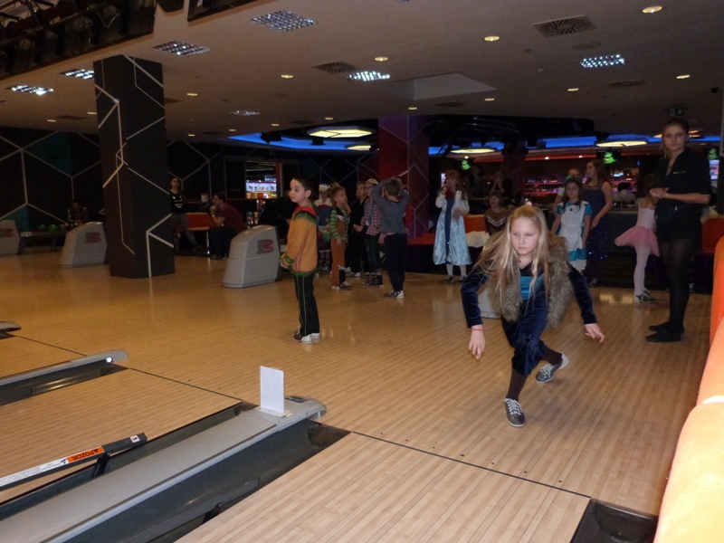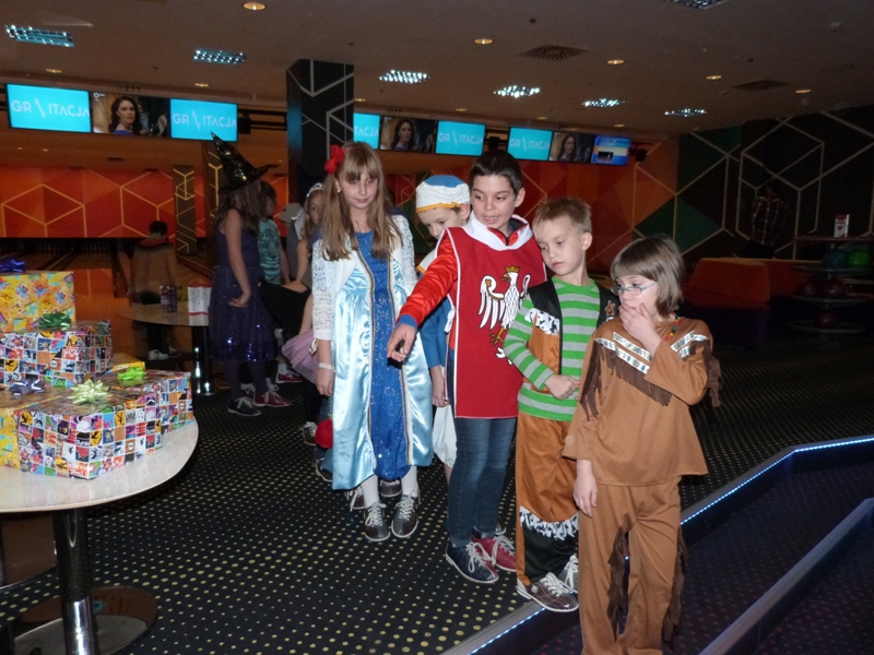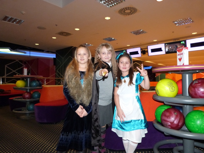 Na spotkanie w kręgielni licznie przybyli bohaterowie naszych ulubionych książek, tak więc spotkać można było Dziewczynkę z zapałkami, Alicję z Krainy Czarów, Hermionę, Calineczkę, Koszmarnego Karolka, Mikołajka i wielu, wielu innych znakomitych gości... zobaczcie sami! Zabawa była przednia - wszyscy Oni stanęli do konkurencji - "Kto więcej kręgli strąci".