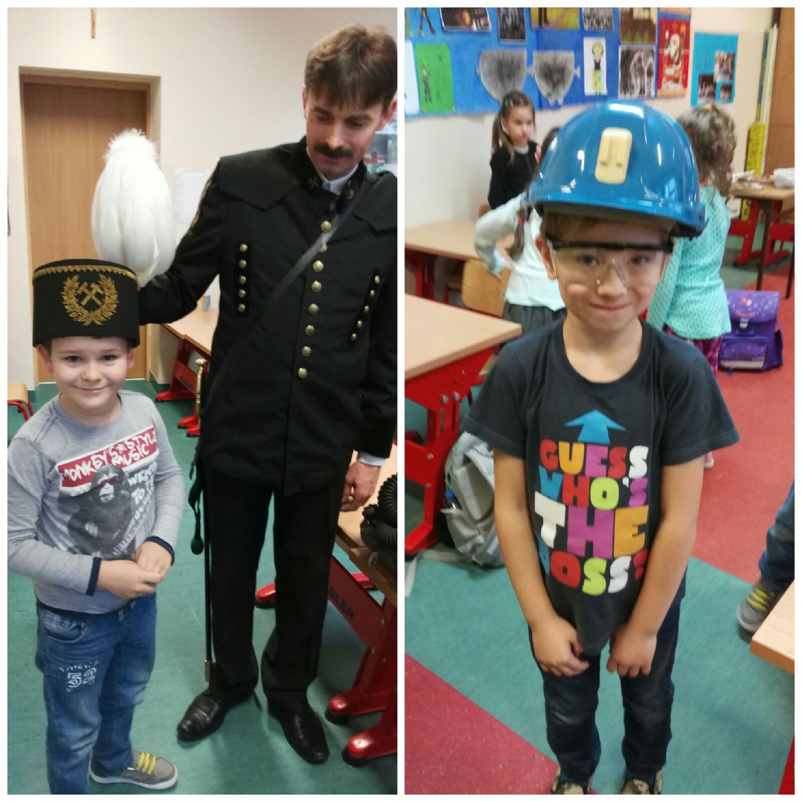 W oczekiwaniu na tradycyjną Barbórkę w klasie III "e" odbyła się konferencja prasowa z zaprzyjaźnionym górnikiem - Panem Januszem Stolarczykiem.