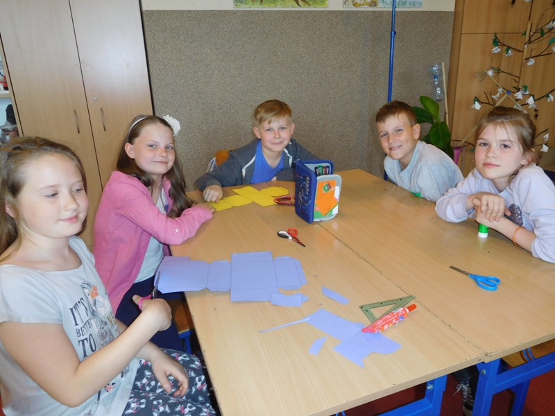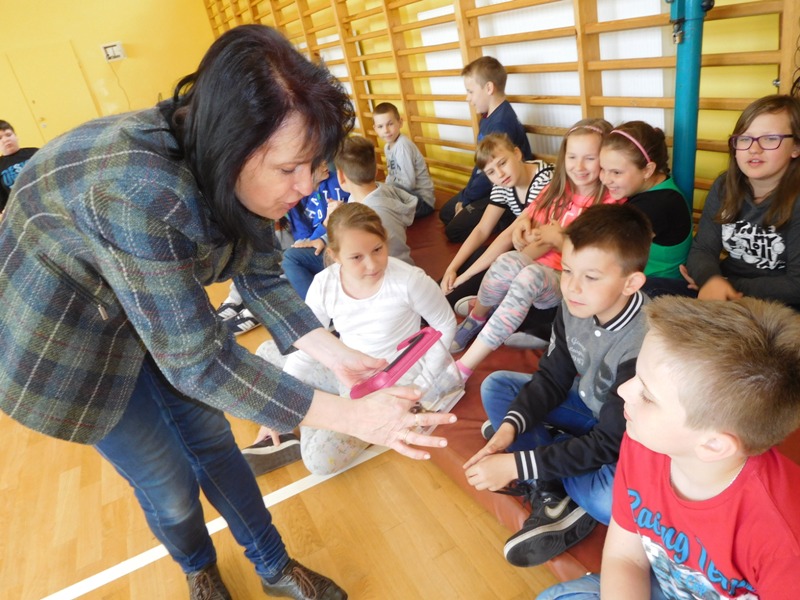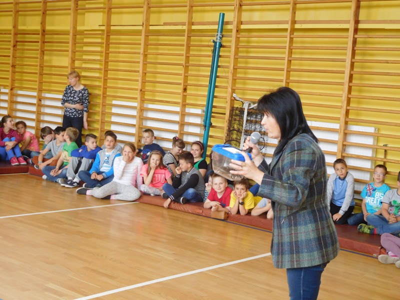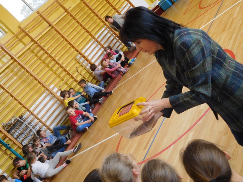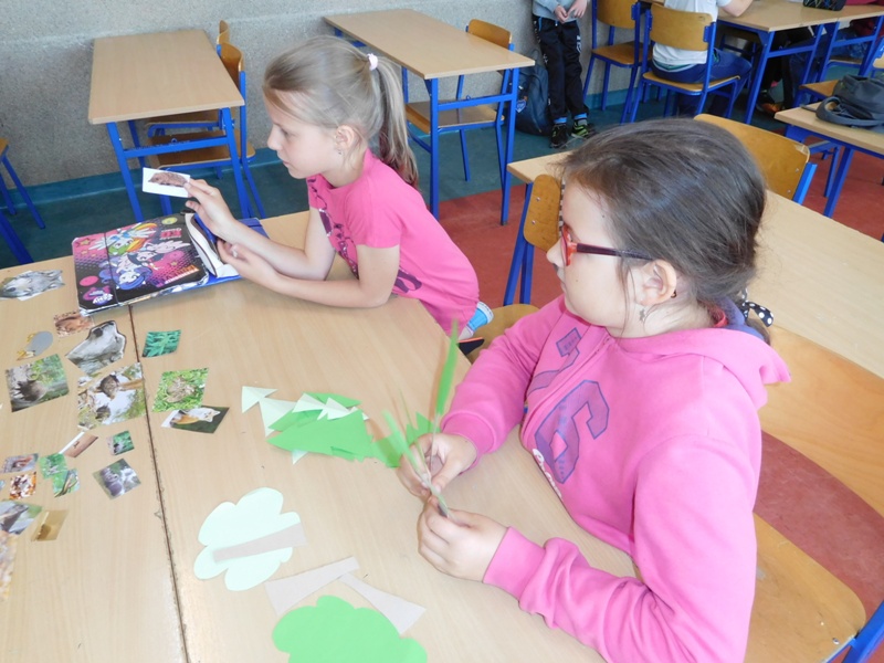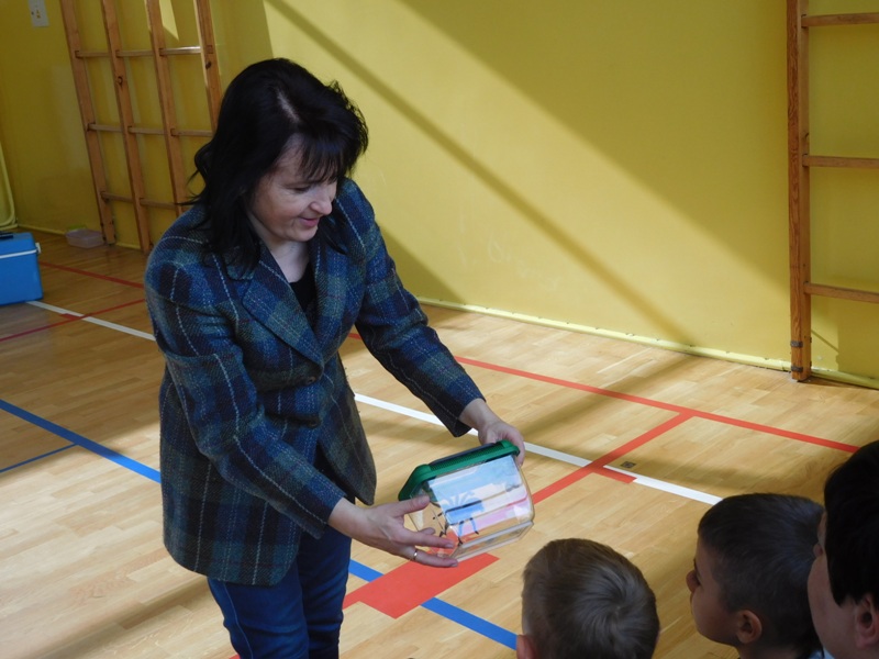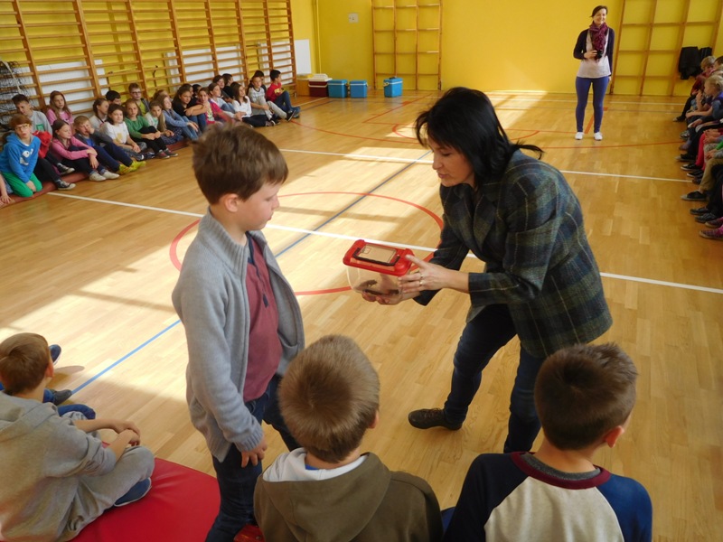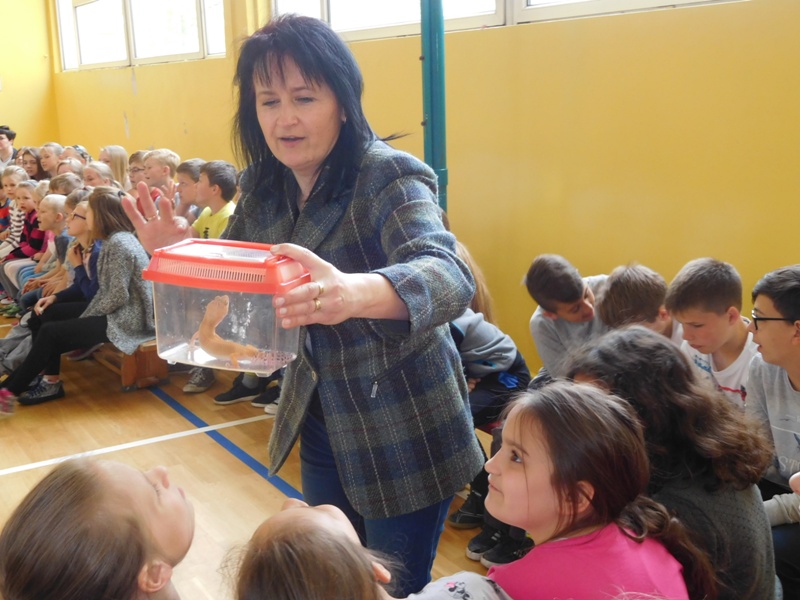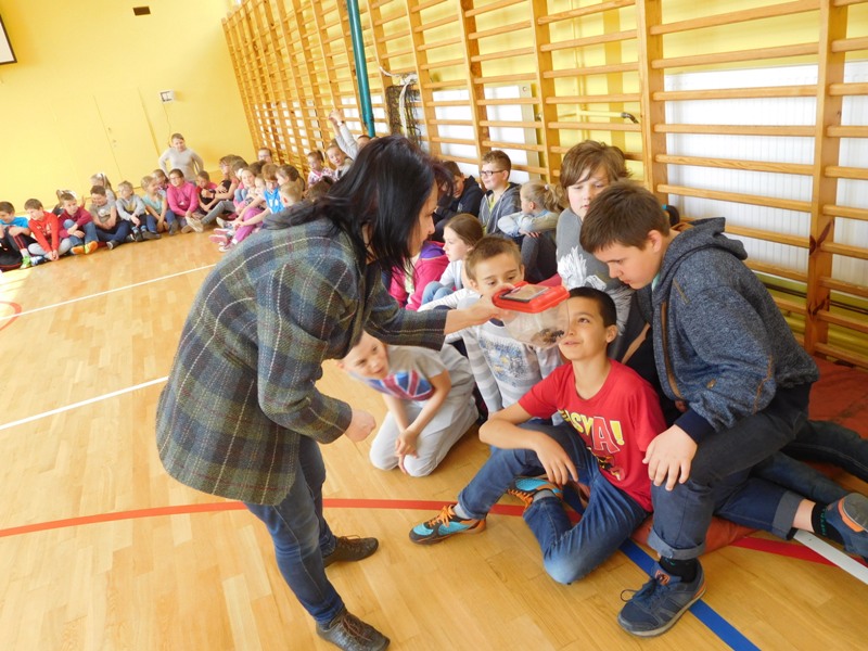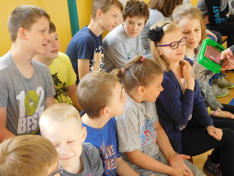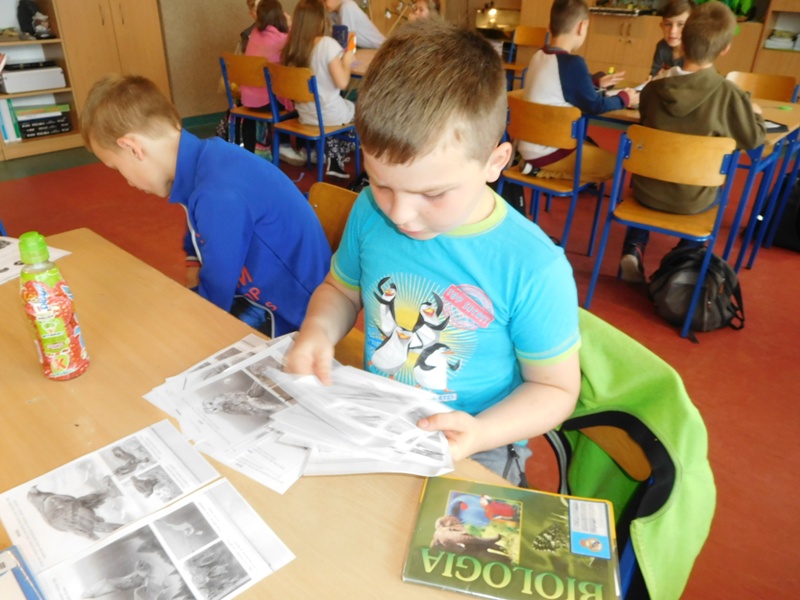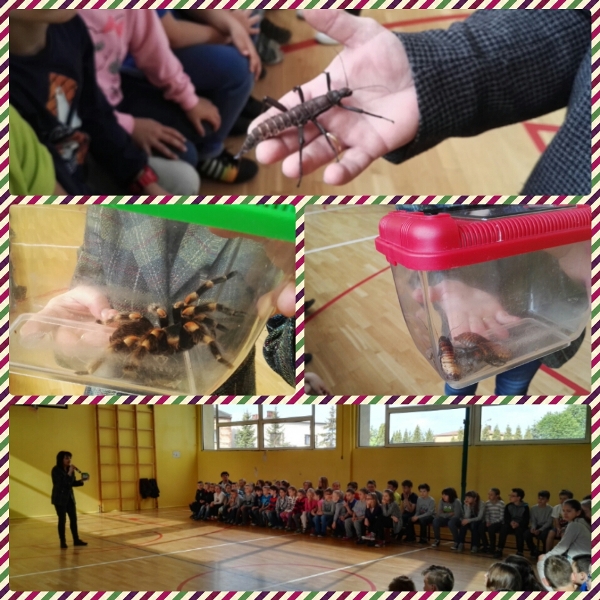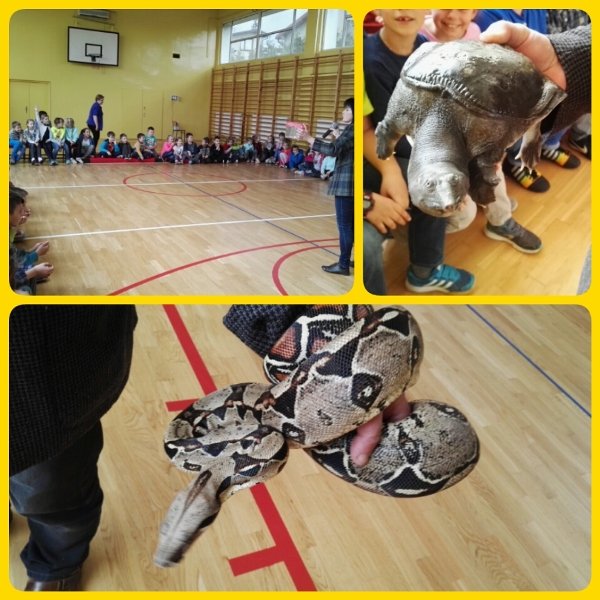Dnia 16 maja w naszej szkole odbyły się wyjątkowe lekcje z okazji Dnia Matematyki i Przyrody. Trzygodzinny projekt rozpoczął się od „żywej” lekcji przyrody, dzięki której uczniowie wszystkich klas mogli zobaczyć zwierzęta znane dotychczas jedynie ze szkolnych ilustracji. Podczas kolejnych zajęć dzieci realizowały zdania łączące oba przedmioty - pracując grupach układali tangramy, tworzyli plakaty pod hasłem „Człowiek w liczbach”, prezentowali układy w ciele ludzkim, łańcuchy pokarmowe w różnych środowiskach oraz klimatogram na tle krajobrazu, w którym występuje, sklejali różnego rodzaju bryły.