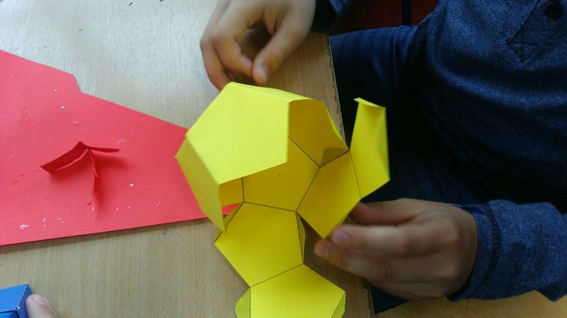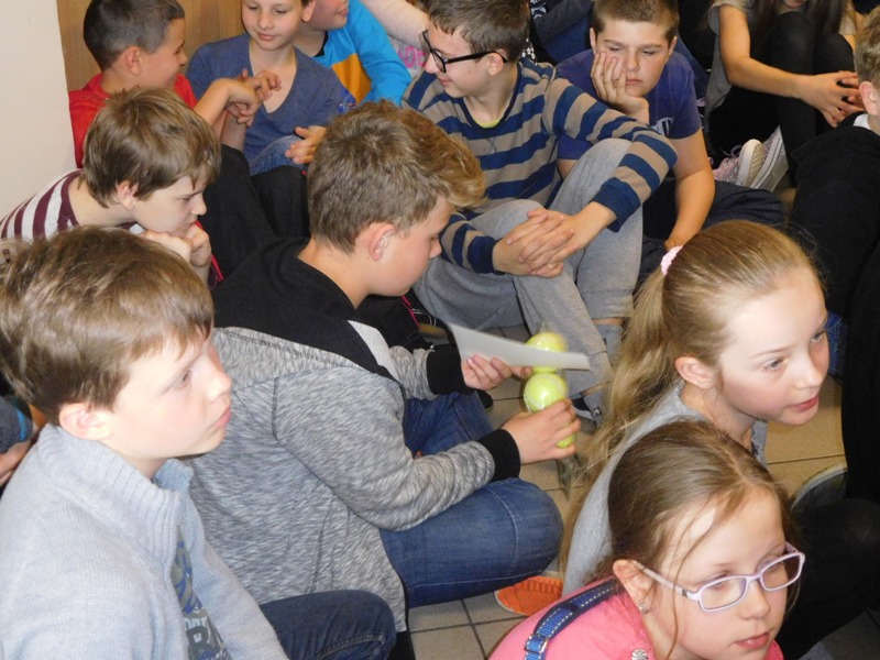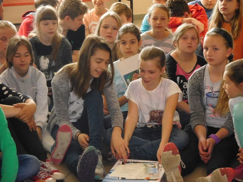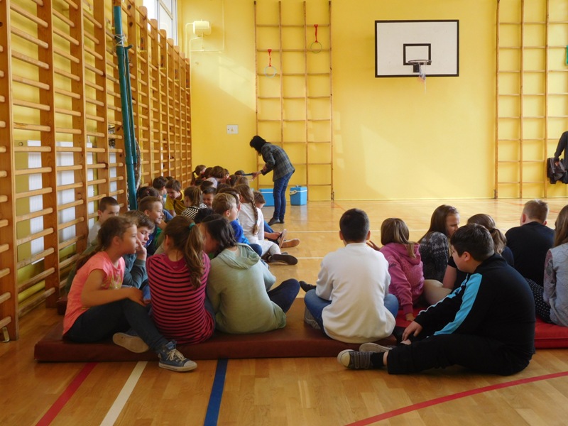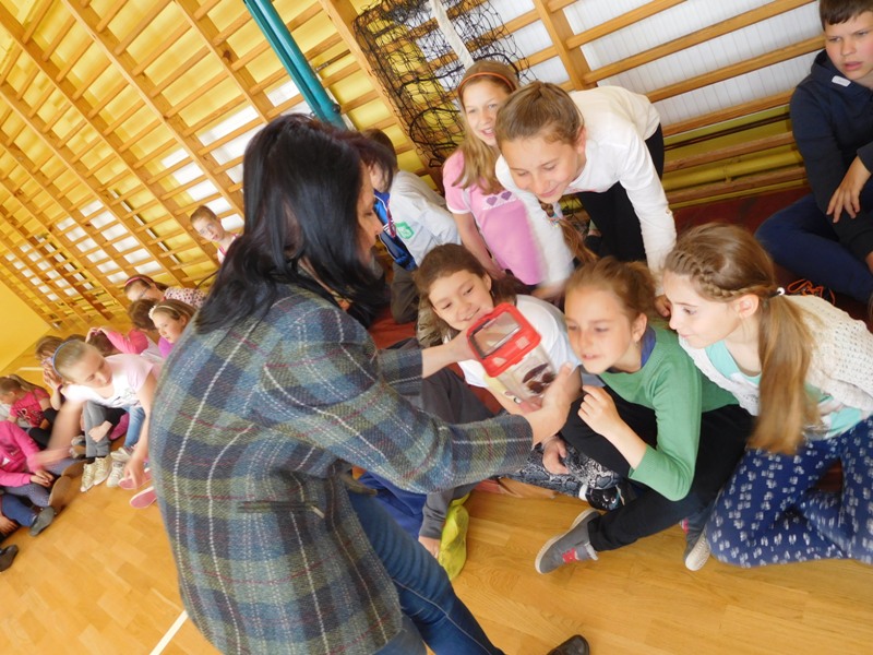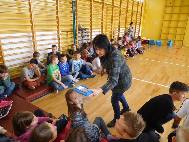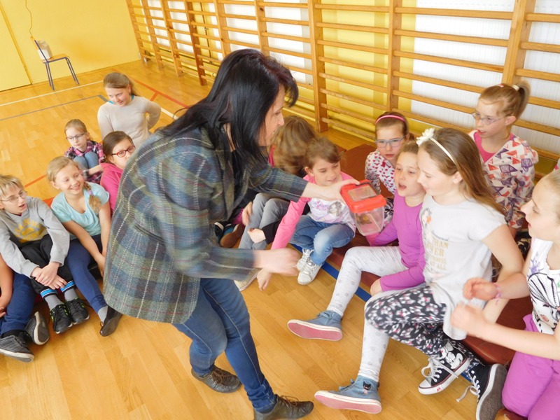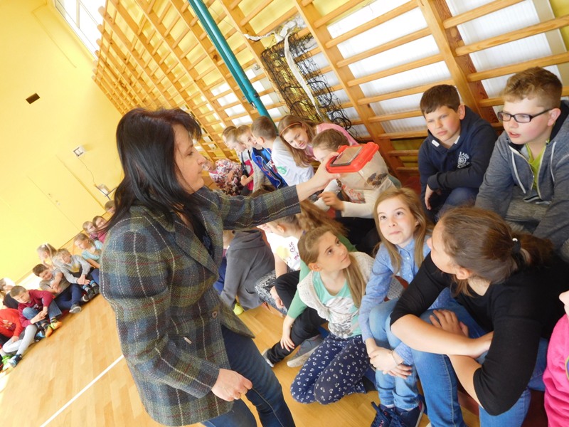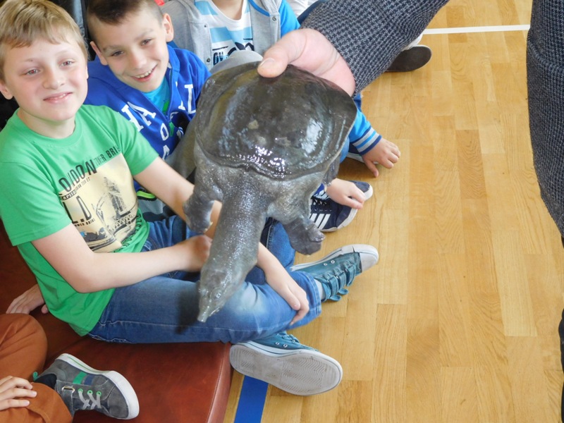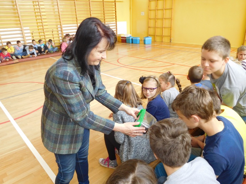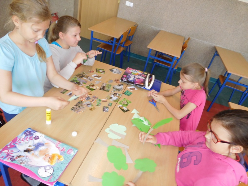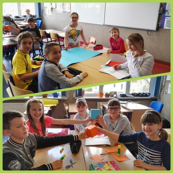 Dnia 16 maja w naszej szkole odbyły się wyjątkowe lekcje z okazji Dnia Matematyki i Przyrody. Trzygodzinny projekt rozpoczął się od „żywej” lekcji przyrody, dzięki której uczniowie wszystkich klas mogli zobaczyć zwierzęta znane dotychczas jedynie ze szkolnych ilustracji. Podczas kolejnych zajęć dzieci realizowały zdania łączące oba przedmioty - pracując grupach układali tangramy, tworzyli plakaty pod hasłem „Człowiek w liczbach”, prezentowali układy w ciele ludzkim, łańcuchy pokarmowe w różnych środowiskach oraz klimatogram na tle krajobrazu, w którym występuje, sklejali różnego rodzaju bryły.
