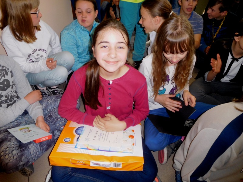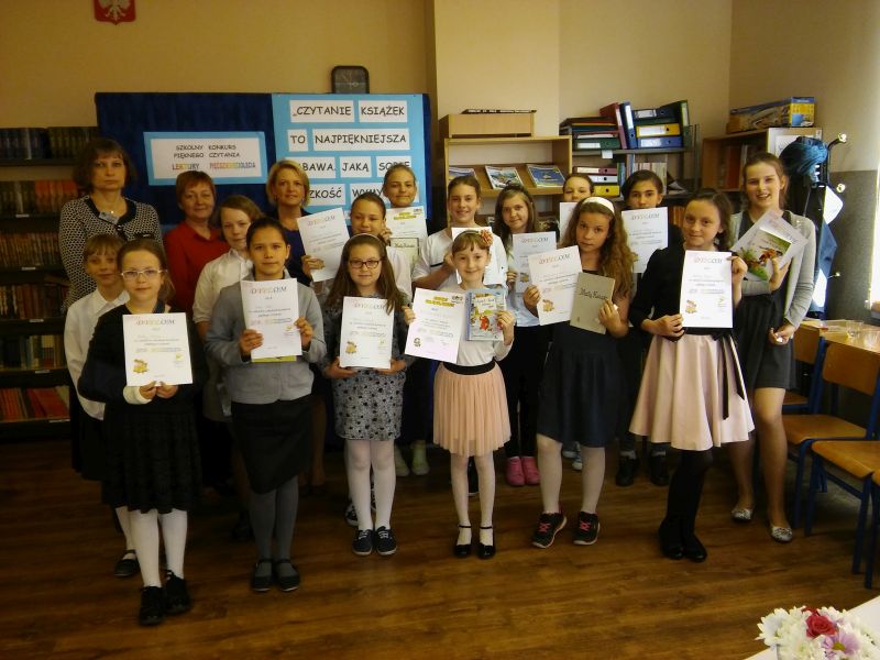 Wszystkie uczestniczki otrzymały pamiątkowe dyplomy i słodkie upominki, laureatki ponadto nagrody książkowe. Nagrodzone uczennice będzie można posłuchać na żywo 18 czerwca podczas Pikniku Rodzinnego z okazji Jubileuszu 50–lecia naszej szkoły, na który już dziś serdecznie zapraszamy całe rodziny.