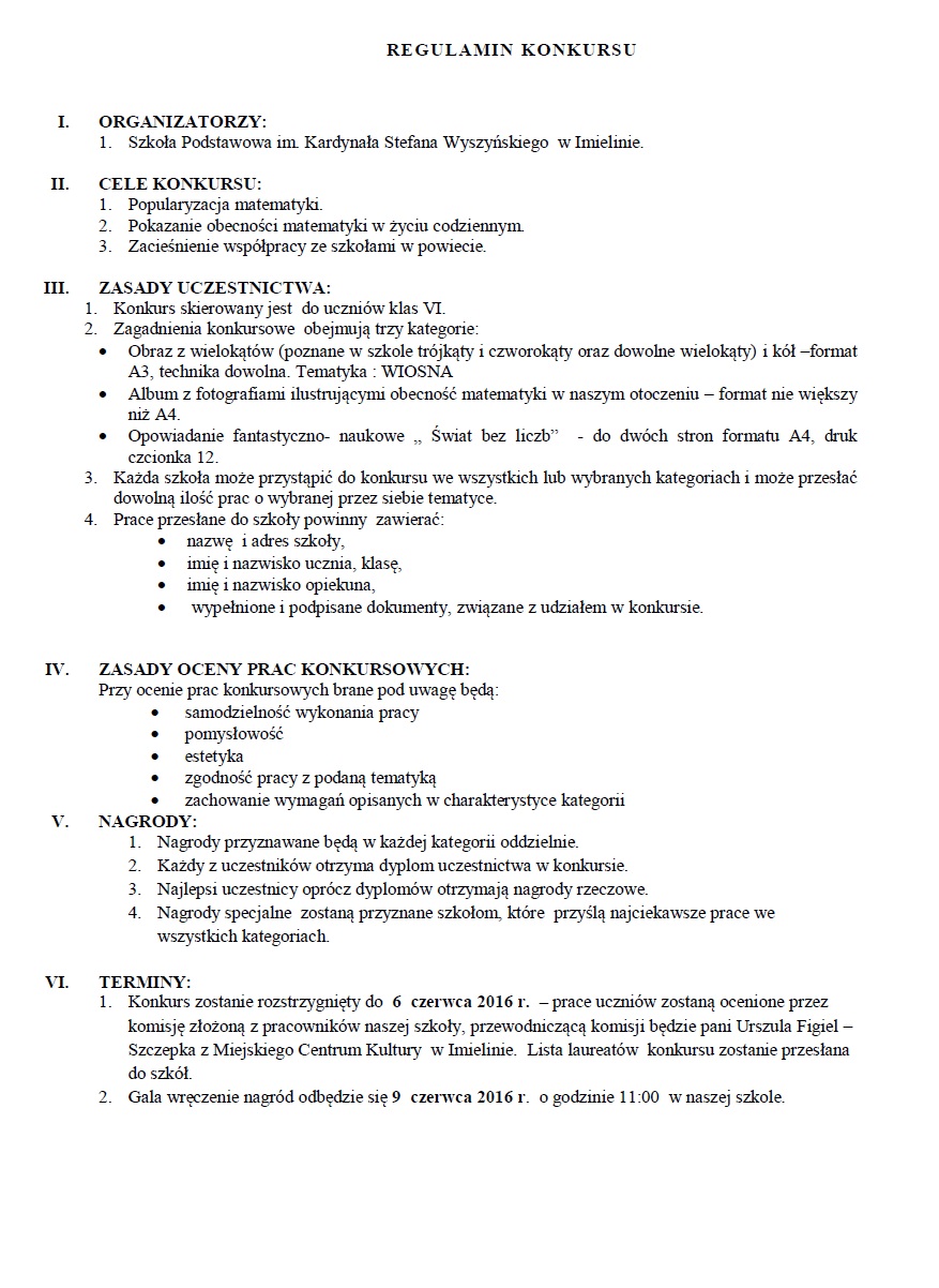 Regulamin konkursu do pobrania w zakładce: Dokumenty dla Rodziców