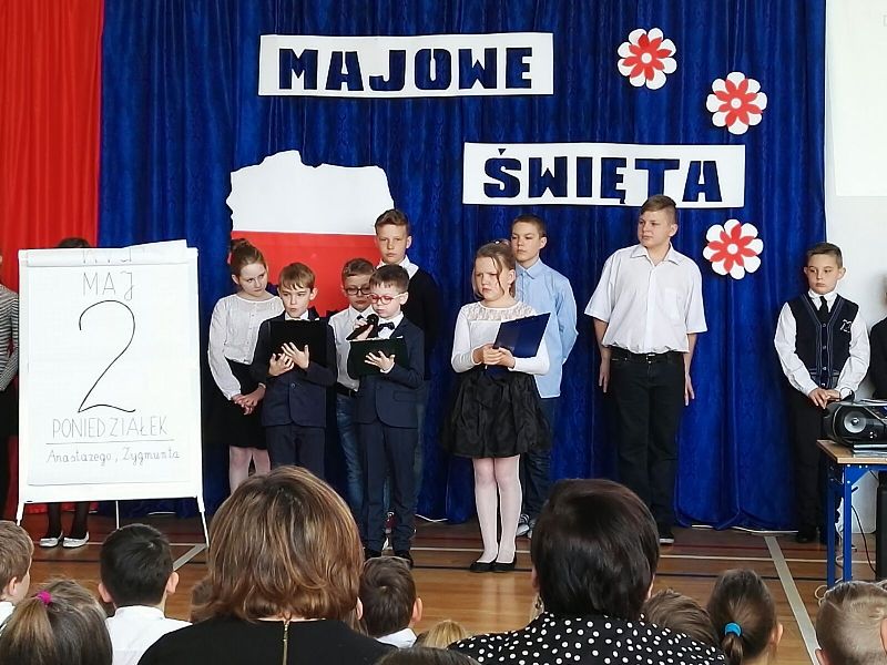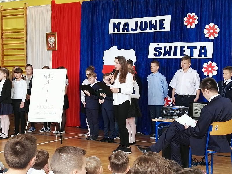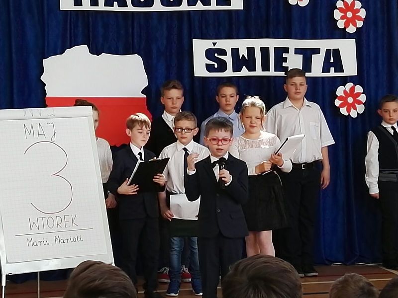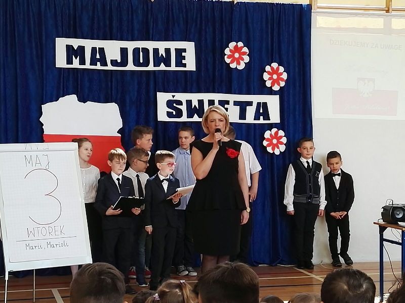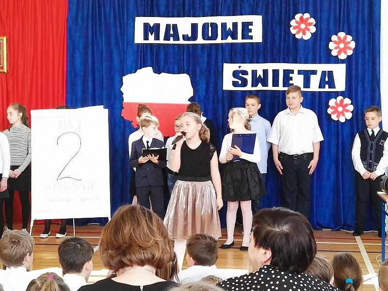 Dnia 29 maja odbyła się w naszej szkole akademia z okazji rocznicy uchwalenia Konstytucji Trzeciego Maja. Uroczystość rozpoczęła się od wprowadzenia pocztu sztandarowego oraz odśpiewania "Mazurka Dąbrowskiego". Następnie uczniowie przedstawili program artystyczny, będący montażem słowno-muzycznym, składającym się z krótkiej inscenizacji nawiązującej do historii uchwalenia Konstytucji Trzeciego Maja. Na zakończenie głos zabrała Pani Dyrektor Dagmara Kupczyk, która zachęciła do wywieszenia z okazji świąt majowych biało-czerwonej flagi. Zachęcamy do obejrzenia nagrań z akademii, które opublikowane zostaną na naszym szkolnym Facebooku.