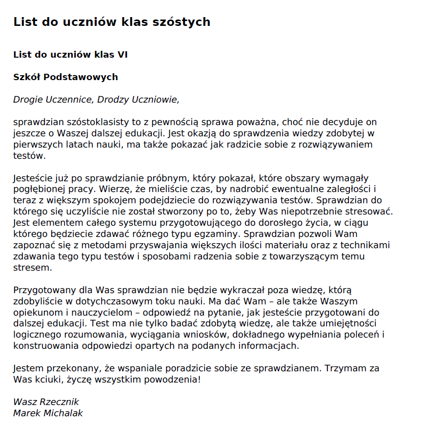 SPRAWDZIAN SZÓSTOKLASISTY 2016