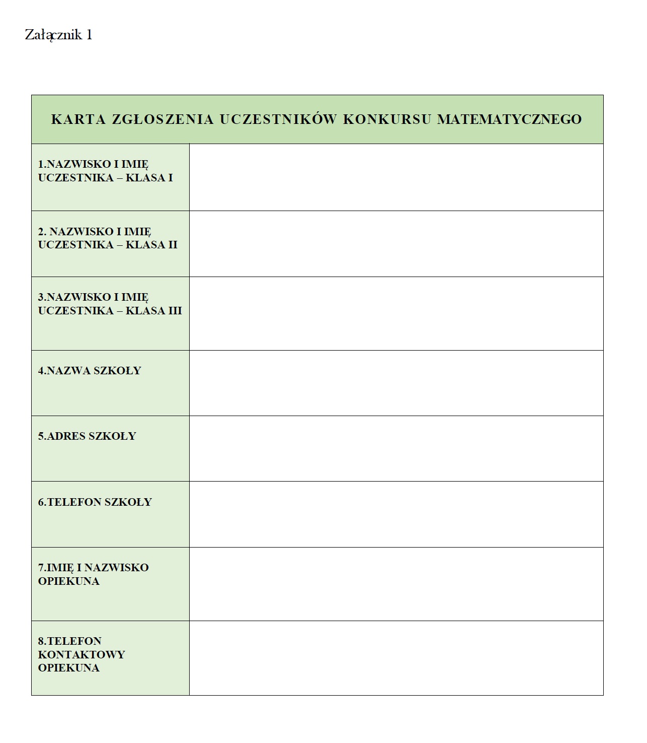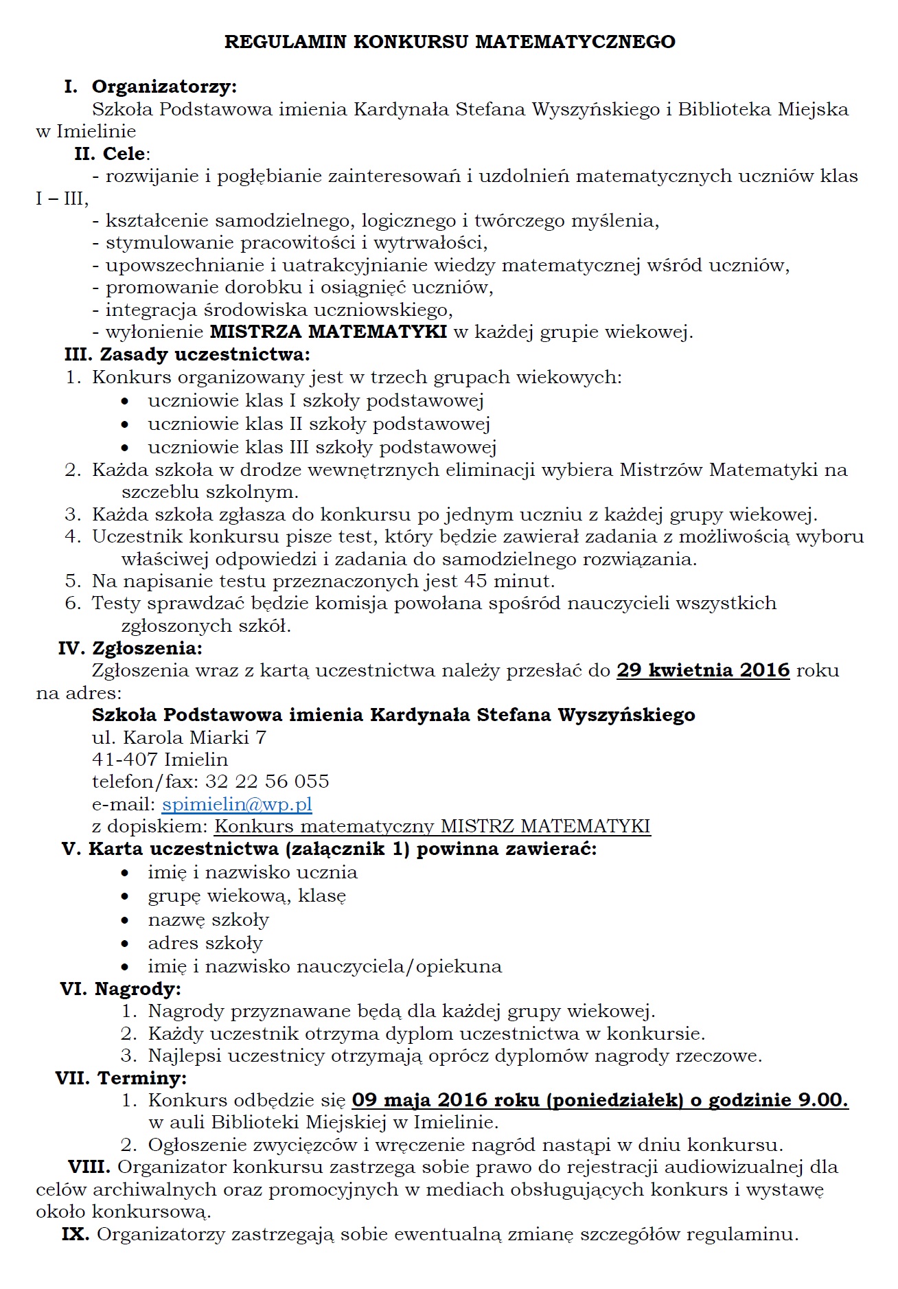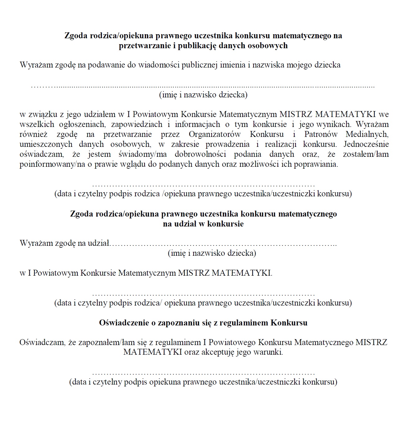 I POWIATOWY KONKURS MATEMATYCZNY MISTRZ MATEMATYKI
