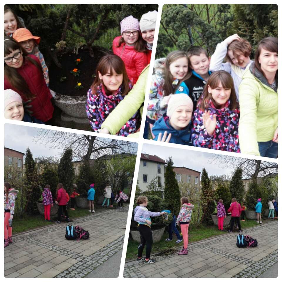 Członkowie szkolnego koła przyrodniczego z klas IV "a" i IV "b" upiększyli otoczenie naszej szkoły, sadząc samodzielnie wyhodowane kwiaty. Bardzo nas cieszą takie akcje!
