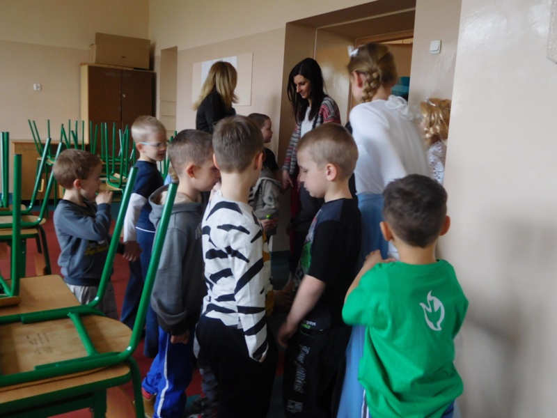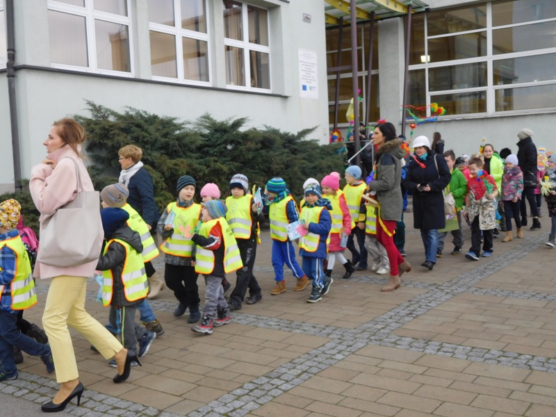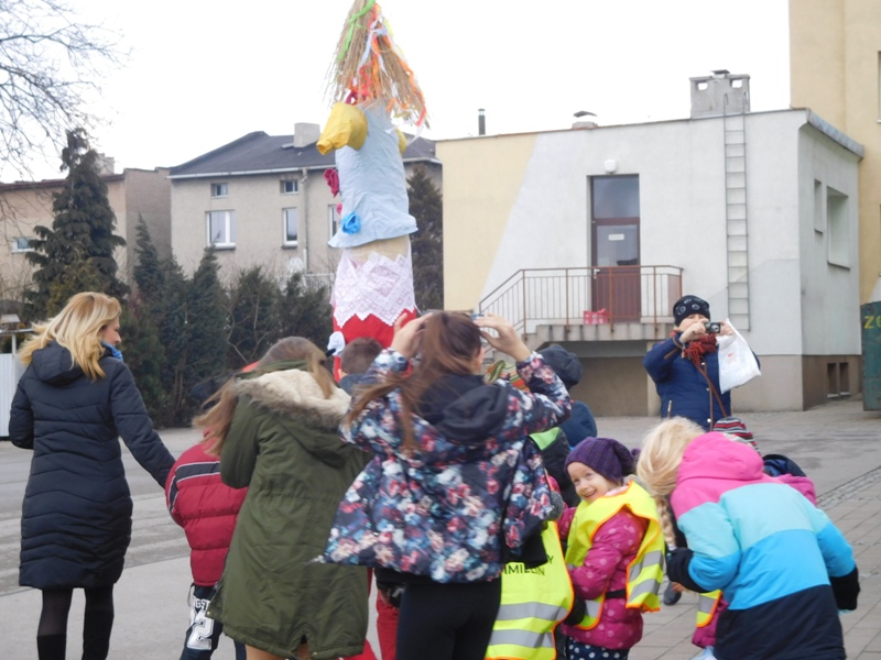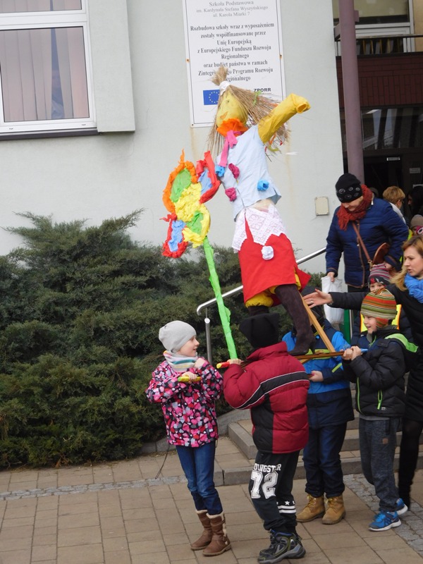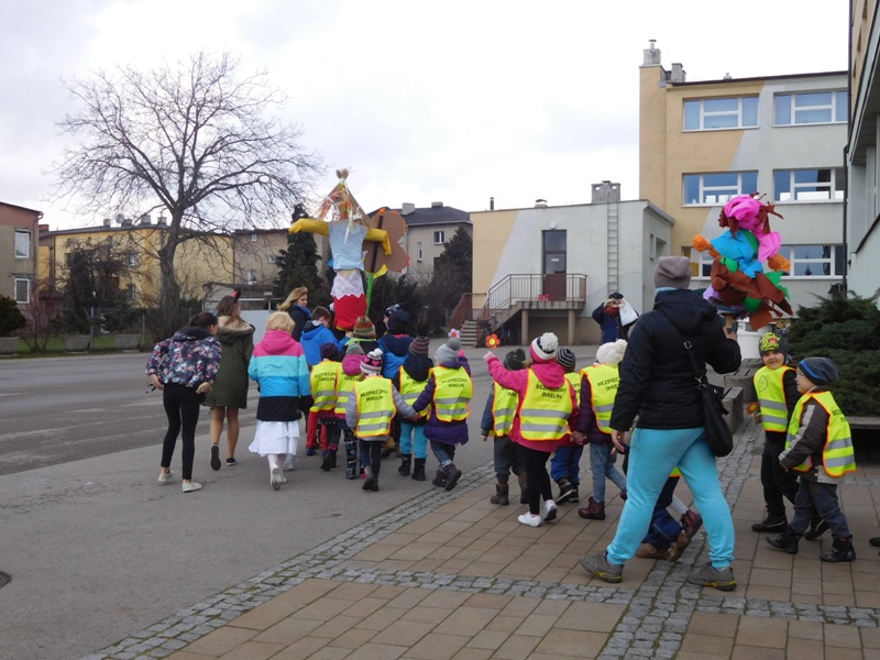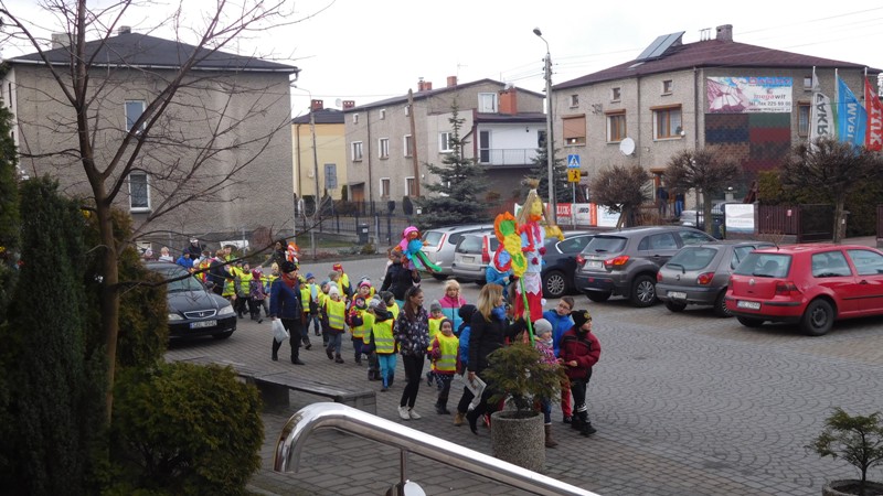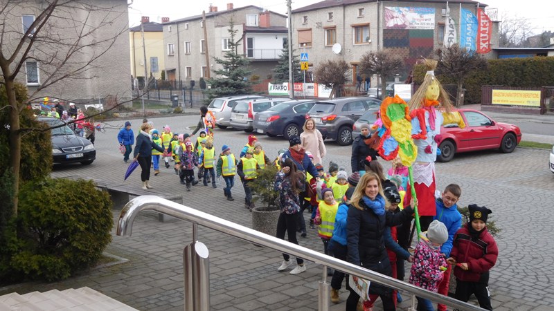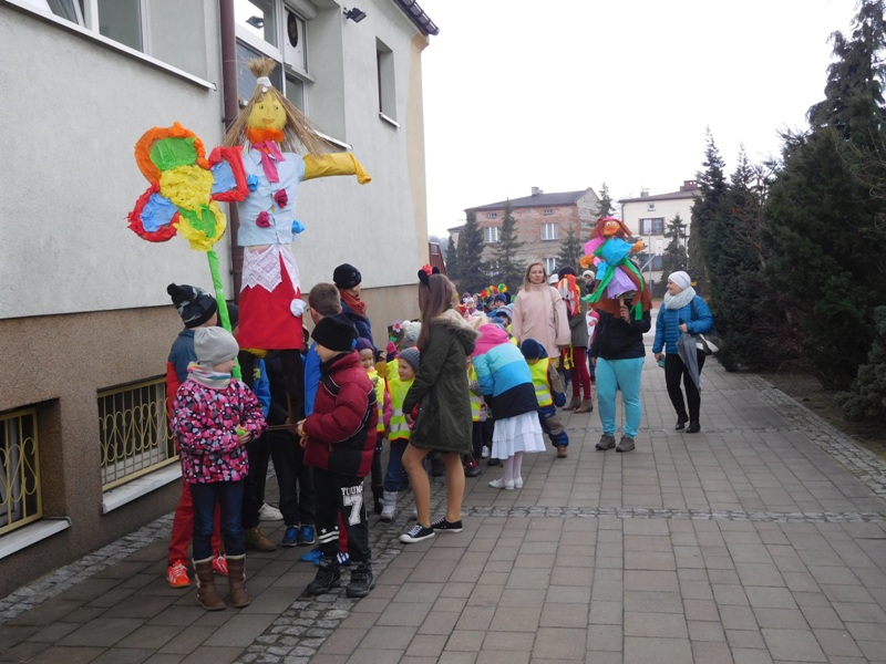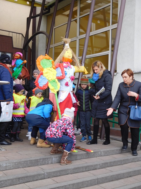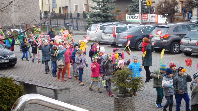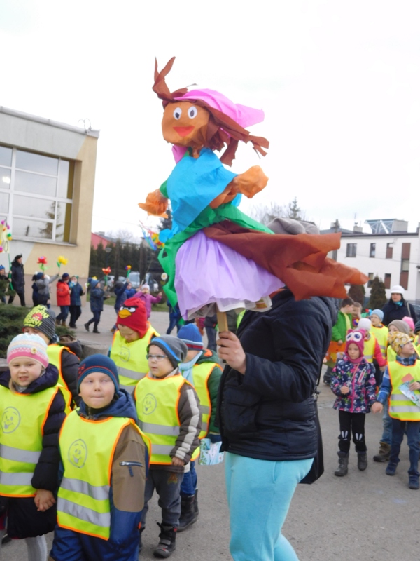 Można by rzec, iż klasy I-III celebrowały ten dzień trochę huczniej niż inni. Jednym za to nie odbiegały od starszaków- także w ich stroju zagościł żółty lub zielony kolor. Każdy z maluchów przyniósł (zrobionego przez siebie) kwiatka. Nasi kochani nauczyciele zadbali także o marzannę, która nieodłącznie kojarzy się z pożegnaniem zimy. Jak co roku nasi milusińscy wyruszyli w korowód wiosenny którego celem było powitanie długo wyczekiwanej wiosny. Po takiej paradzie zima na pewno do nas nie wróci.
