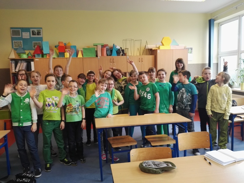 Nie można zapominać także o naszych trochę starszych uczniach. Może i nie obchodzili tego wydarzenia aż tak gromko (wiadomo - nauka przede wszystkim), za to także nie zapomnieli o wiosennym akcencie. Uczniowie zaopatrzyli się w żółte lub zielone koszulki, spodnie lub inne dodatki. Dzięki takiej akcji nasza szkoła w ten dzień wyglądała bardzo wiosennie.