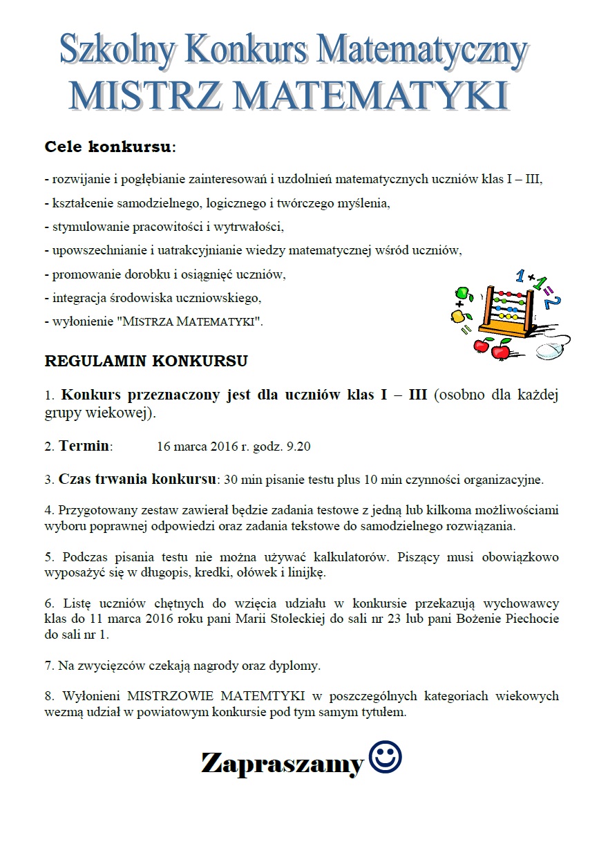 ZOSTAŃ SZKOLNYM MISTRZEM MATEMATYKI!