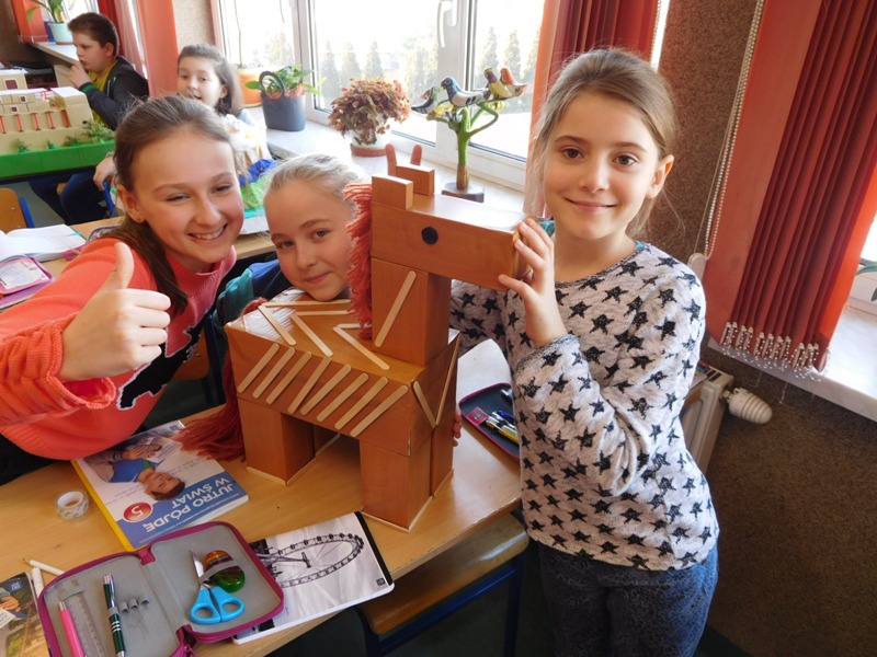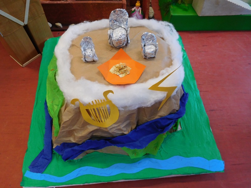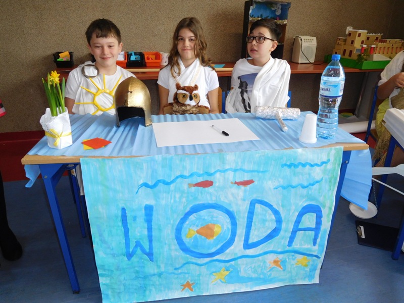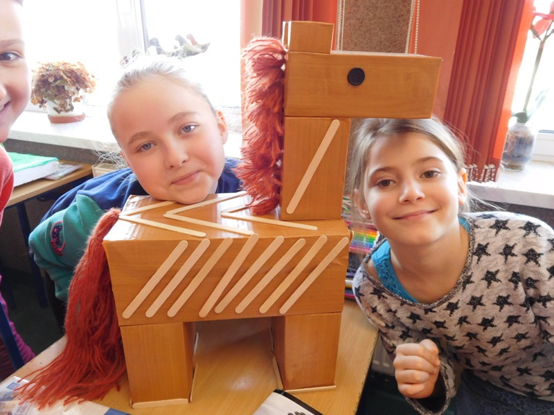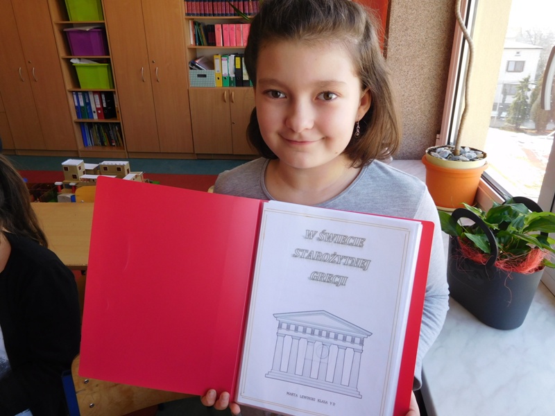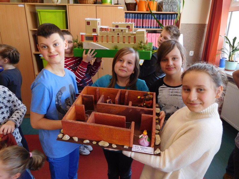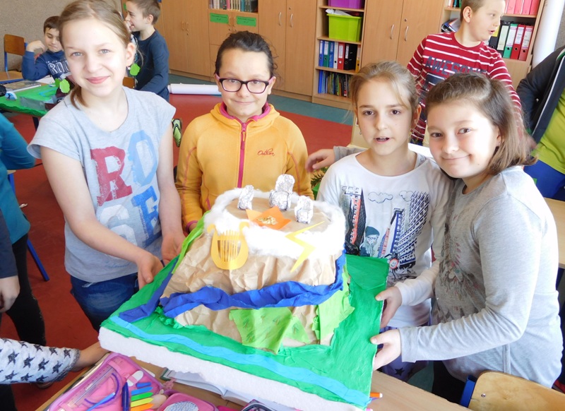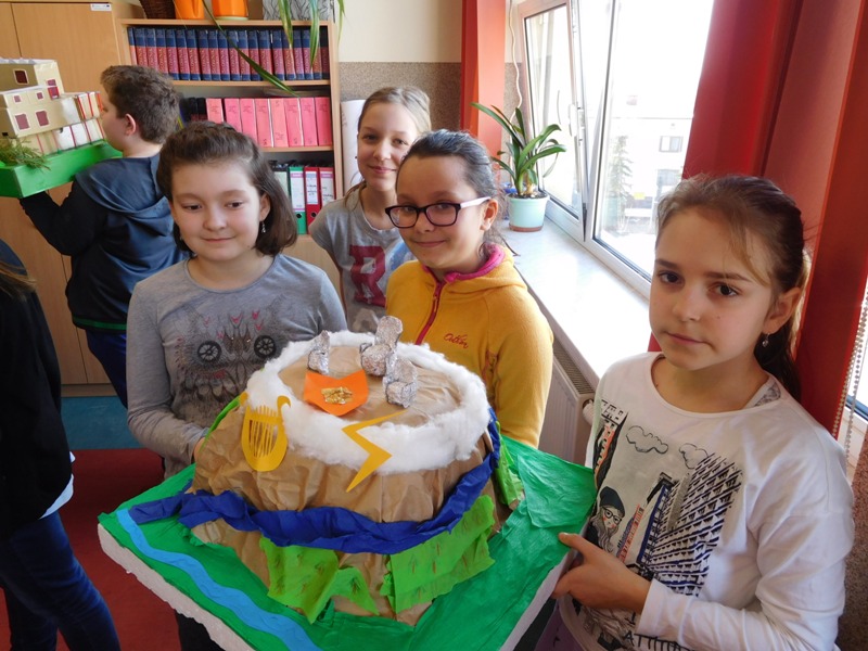 W lutym klasa V "d" była zaangażowana w realizację projektu międzyprzedmiotowego "Mity ożywają dzięki wyobraźni". Pracując indywidualnie i zespołowo, uczniowie wykonali albumy mitologiczne, plakaty ilustrujące cztery żywioły, a także makiety: góry Olimp, Hadesu, labiryntu Minotaura, pałacu Minosa, królestwa Posejdona, stajnię Augiasza oraz konia trojańskiego. Piątoklasiści angażując się w projekt, nie tylko wzbogacili swoją wiedzę na temat wierzeń starożytnych Greków, greckiej kultury, literatury, sztuki i historii, ale również zmierzyli się wyzwaniem jakie stanowi praca w grupie. Podsumowanie projektu i prezentacja artefaktów odbędzie się dnia 8 marca br. (wtorek) podczas szkolnego turnieju wiedzy mitologicznej "Wciąż o Ikarach głoszą".