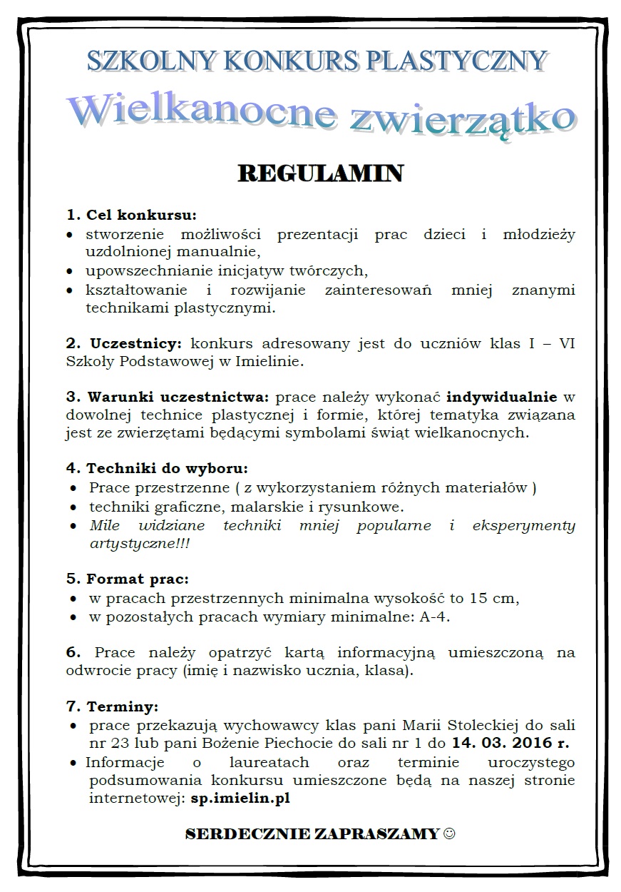 WIELKANOCNE ZWIERZĄTKO - KONKURS PLASTYCZNY