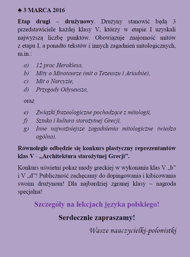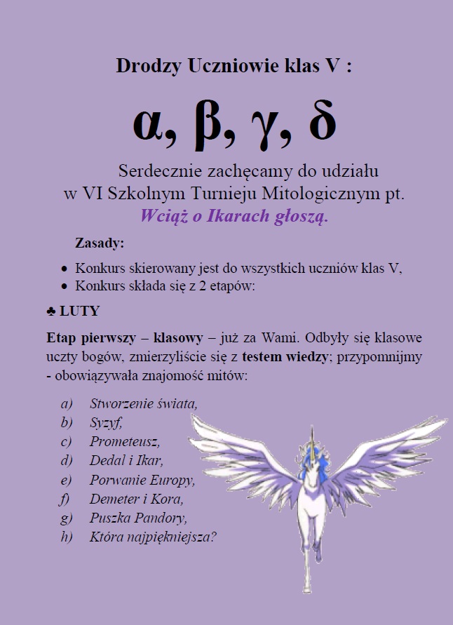 SZKOLNY TURNIEJ MITOLOGICZNY KLAS V